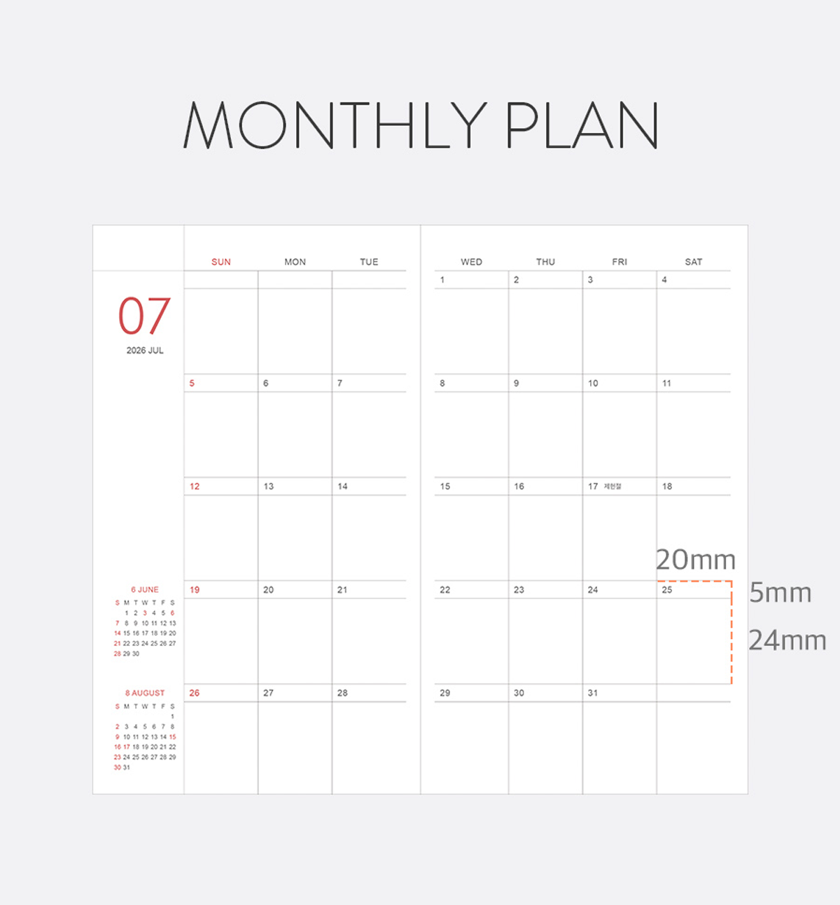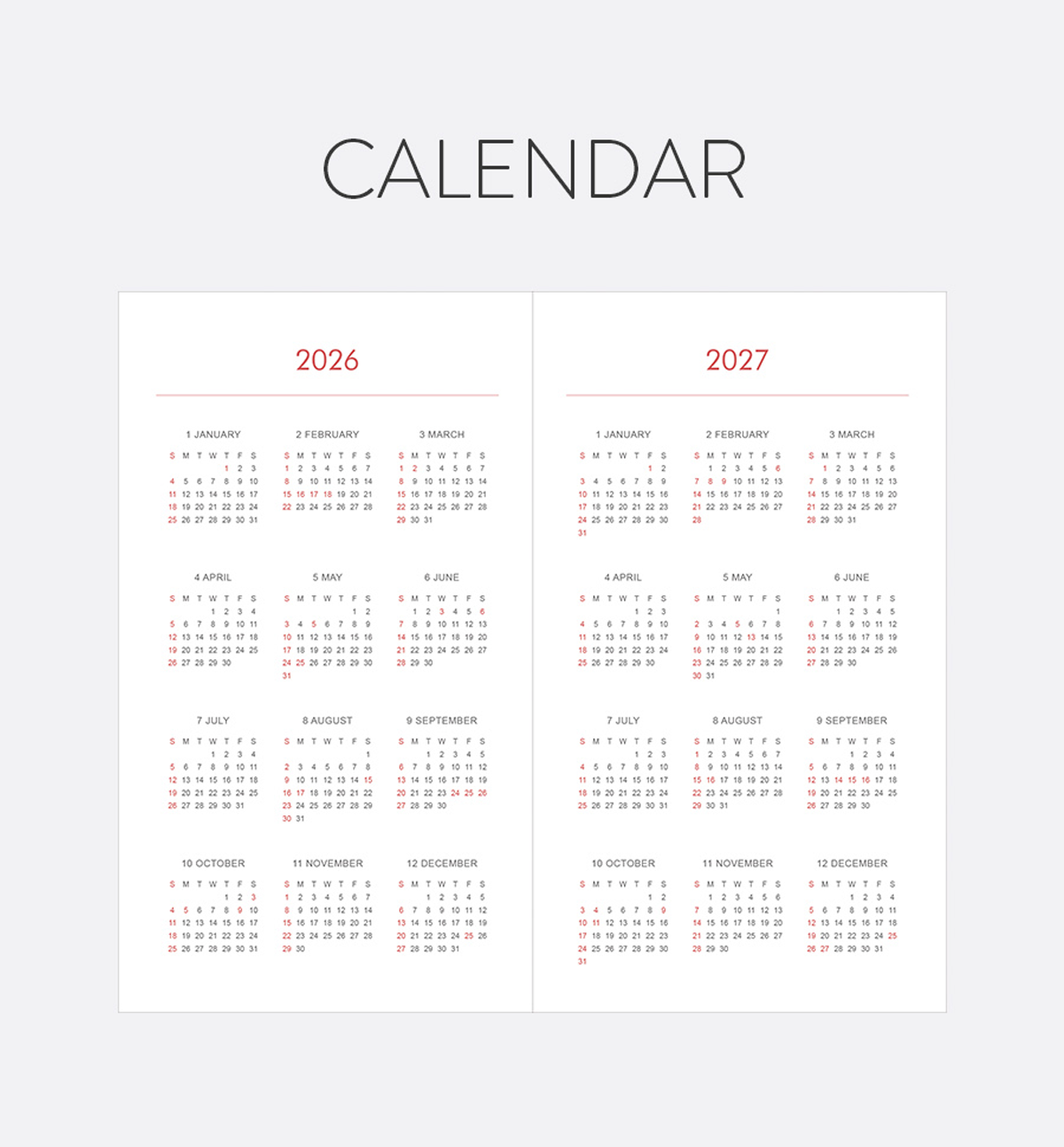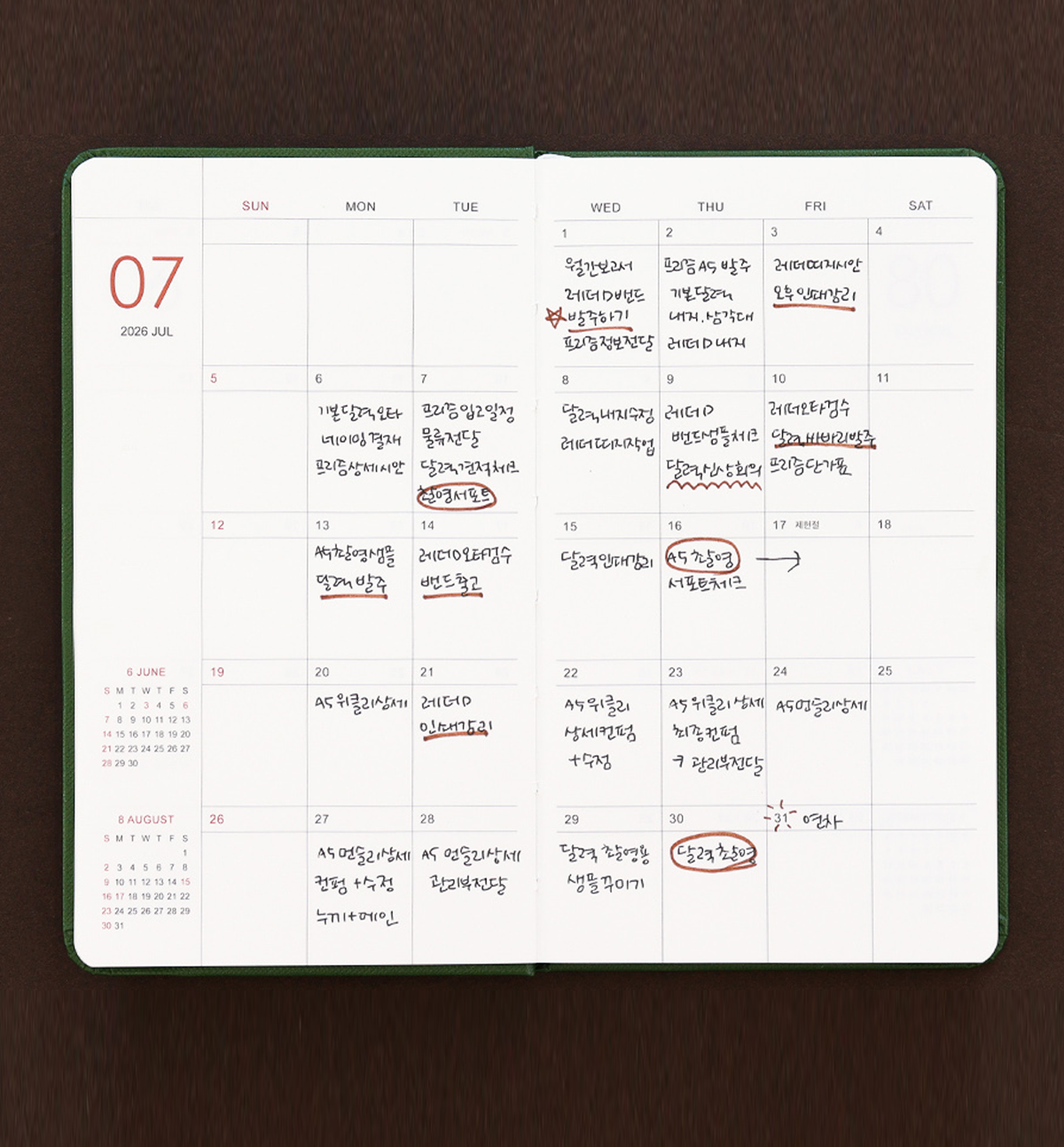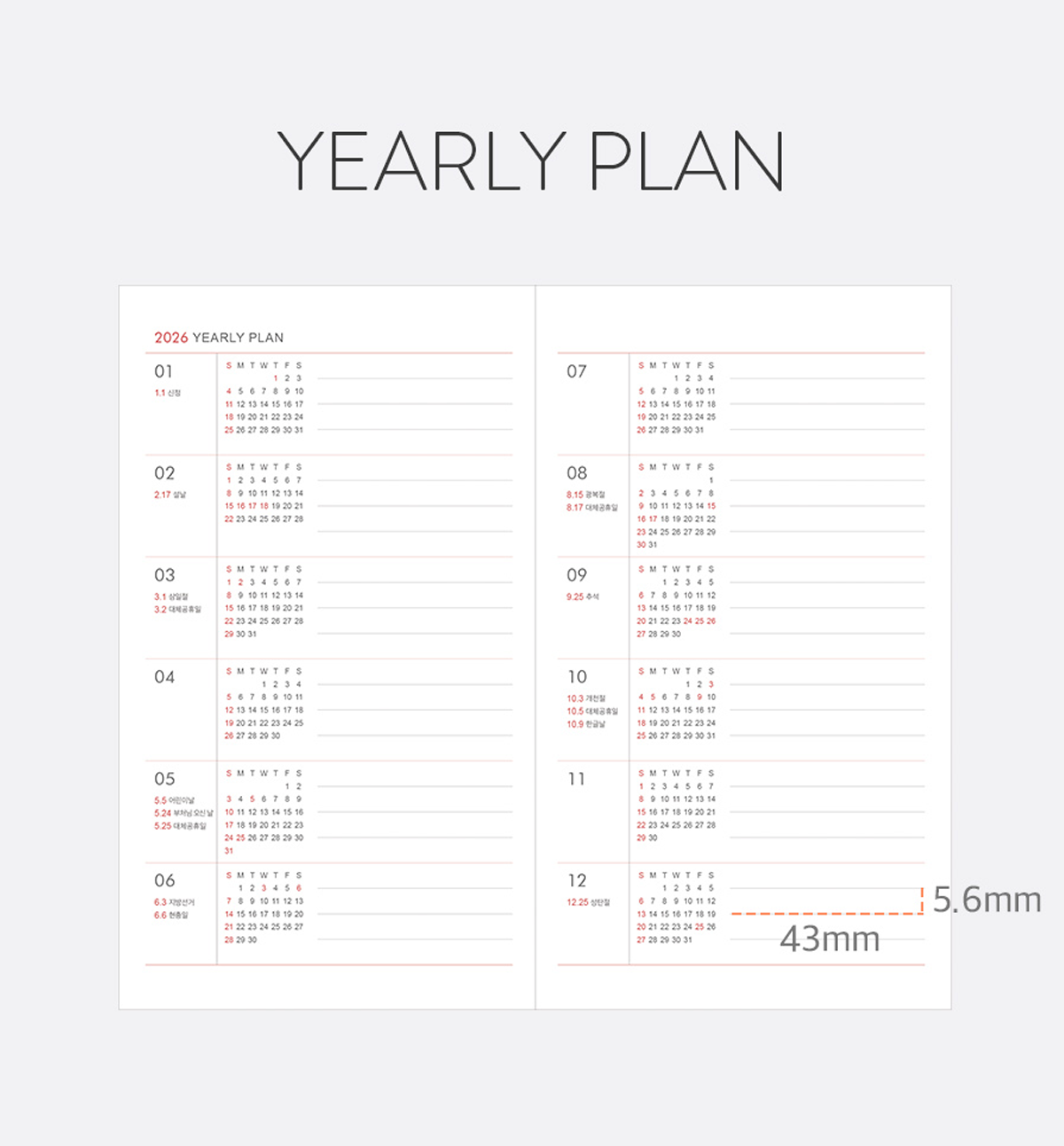 *Korean holidays are pre-marked throughout the calendar’s dated pages. But you can always add your personal holidays.