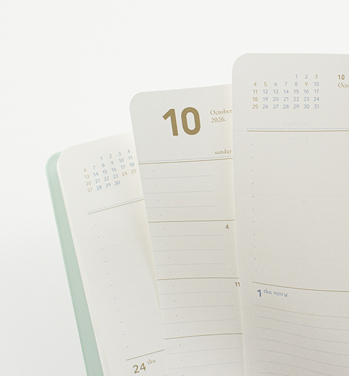 *Korean holidays are pre-marked throughout the calendar’s dated pages. But you can always add your personal holidays.