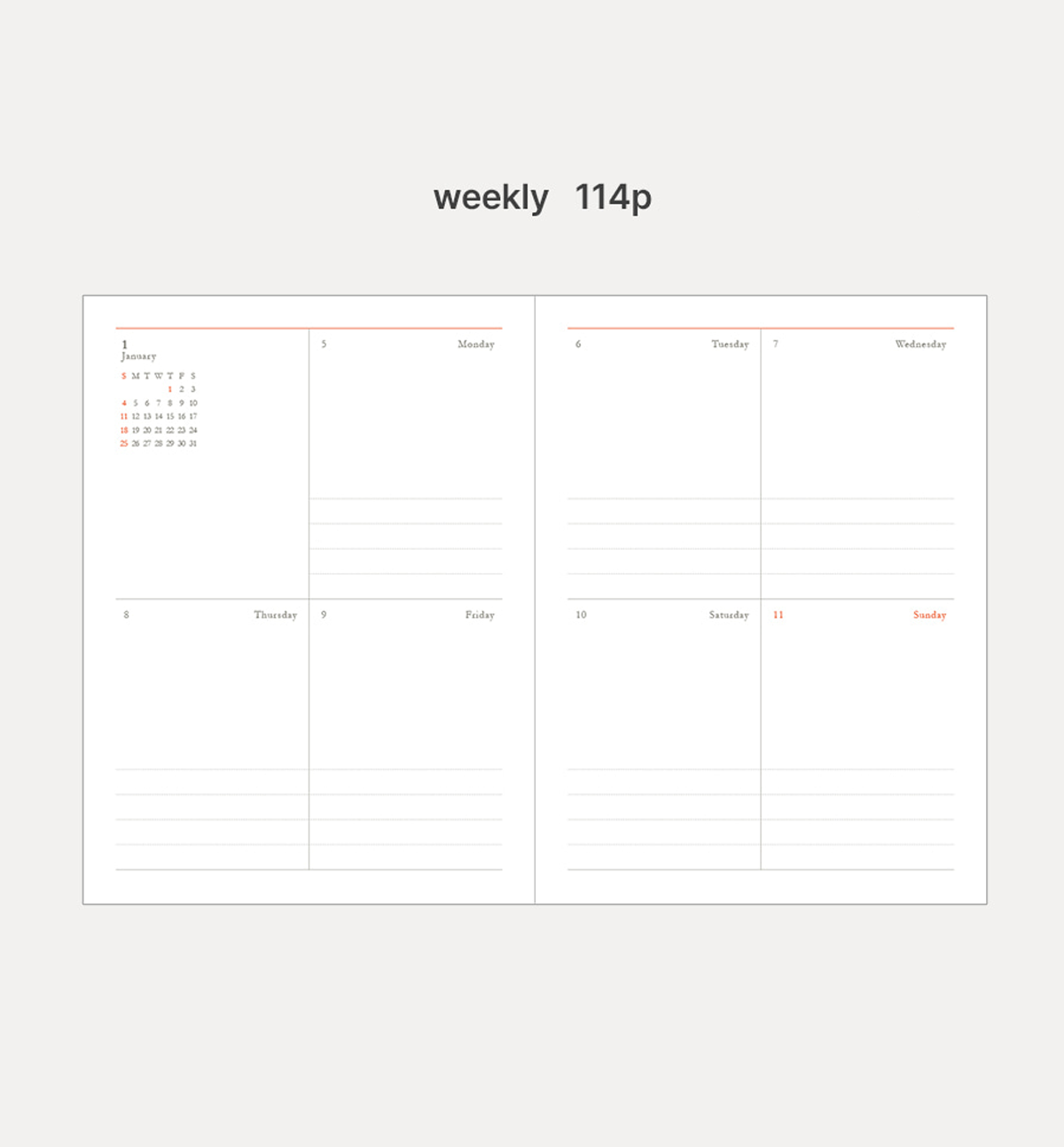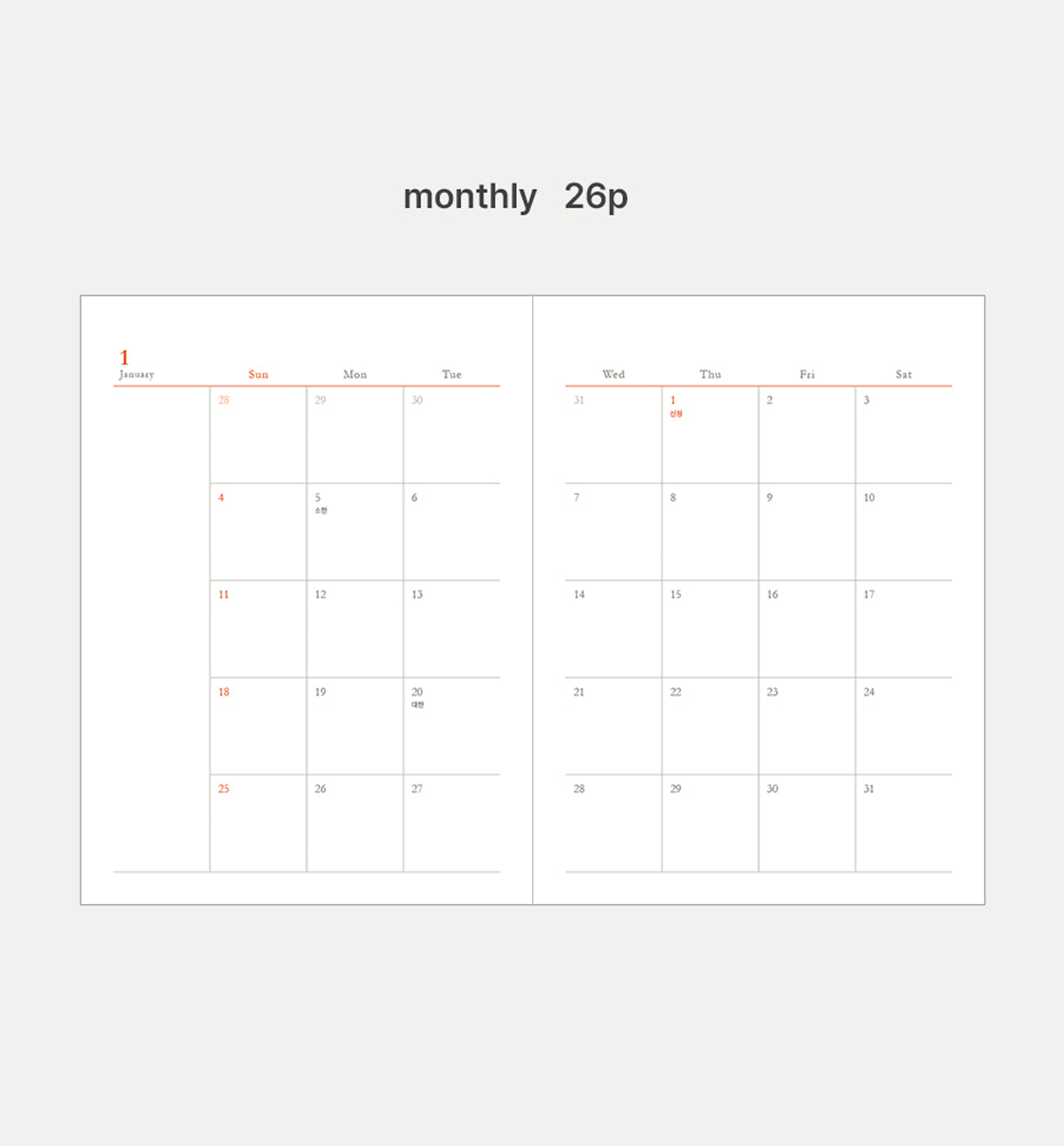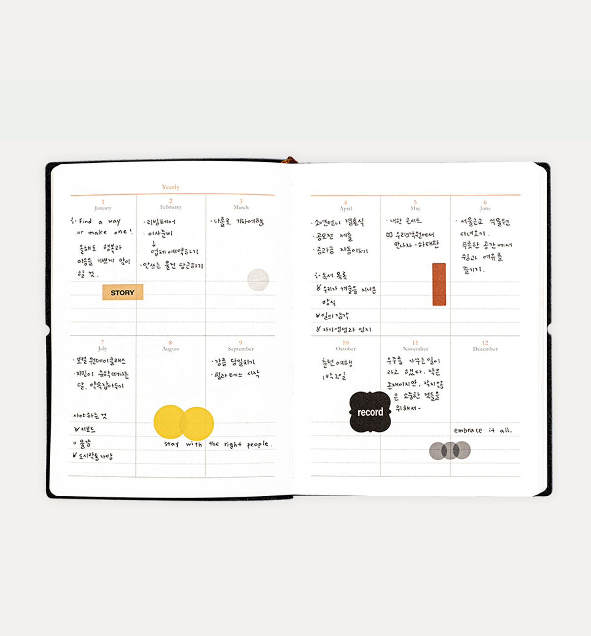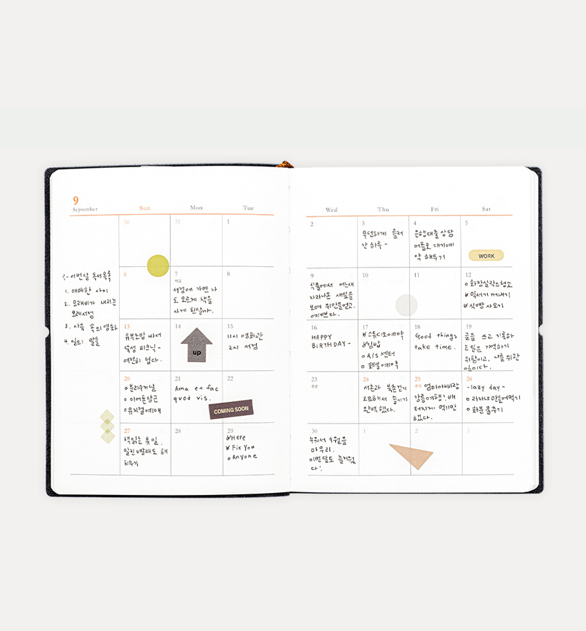 *Korean holidays are pre-marked throughout the calendar’s dated pages. But you can always add your personal holidays.