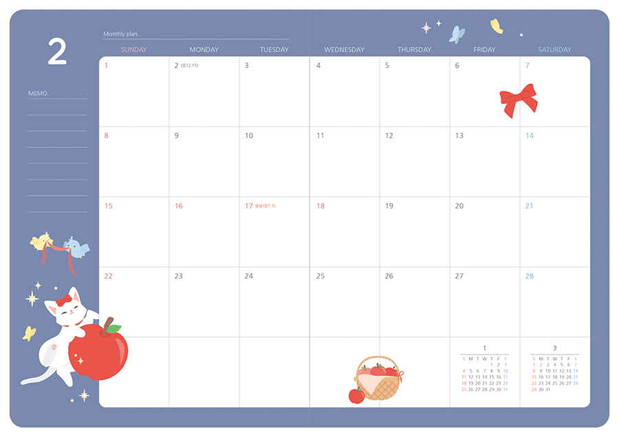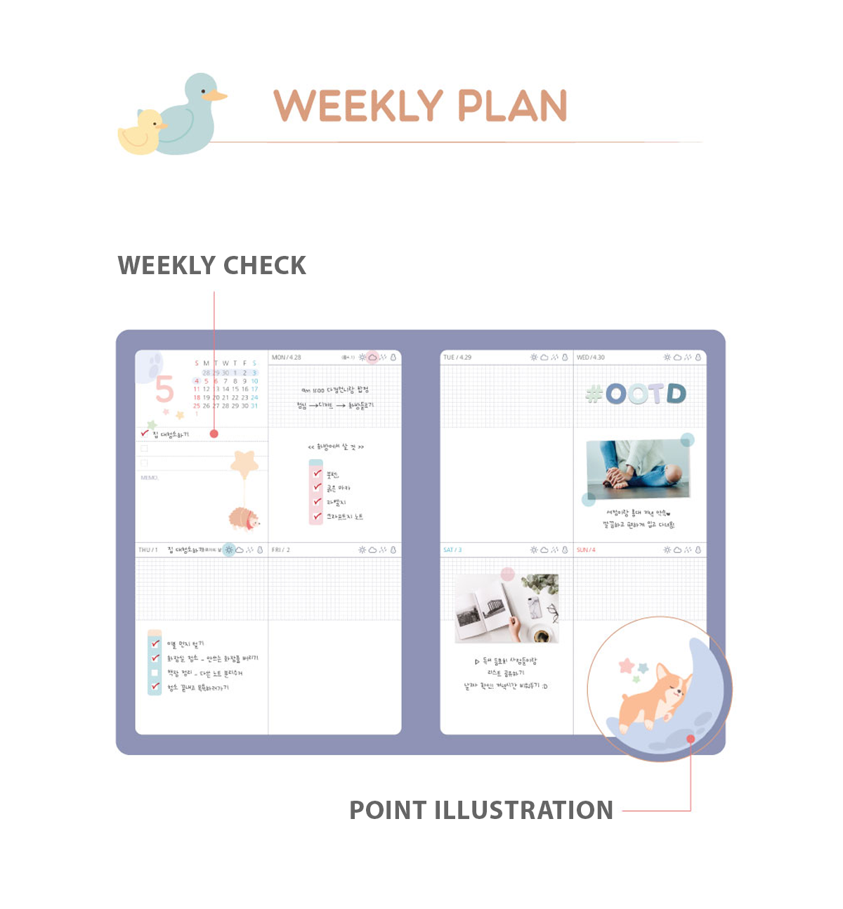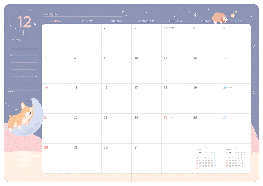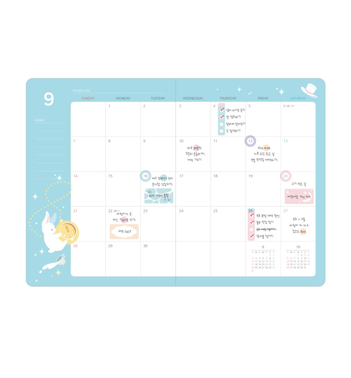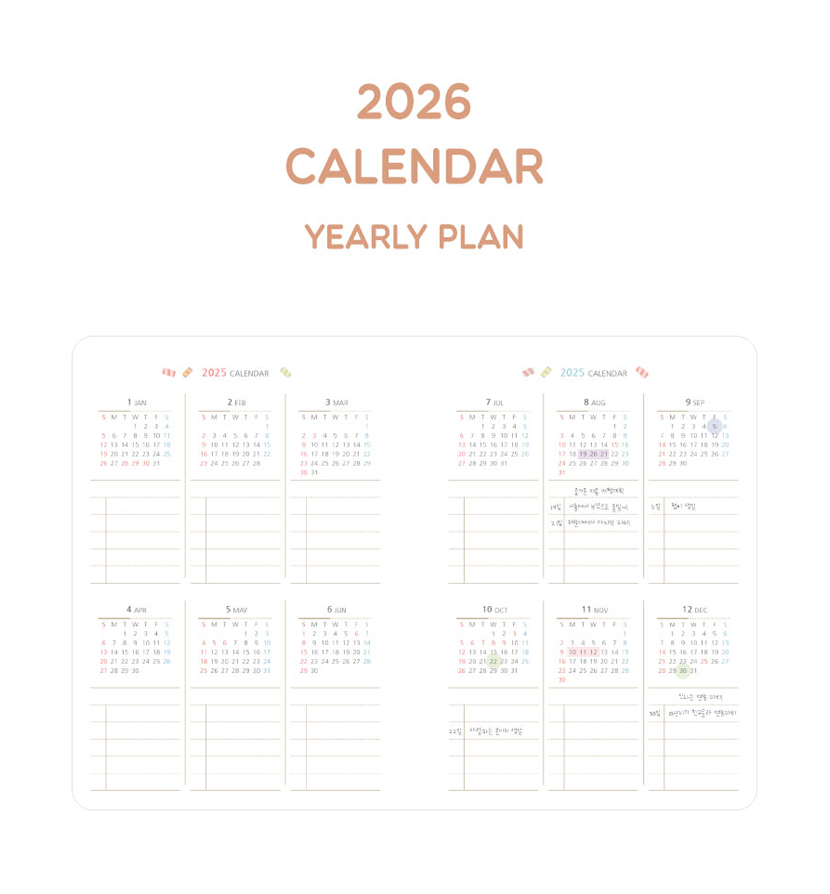 *Korean holidays are pre-marked throughout the calendar’s dated pages. But you can always add your personal holidays.