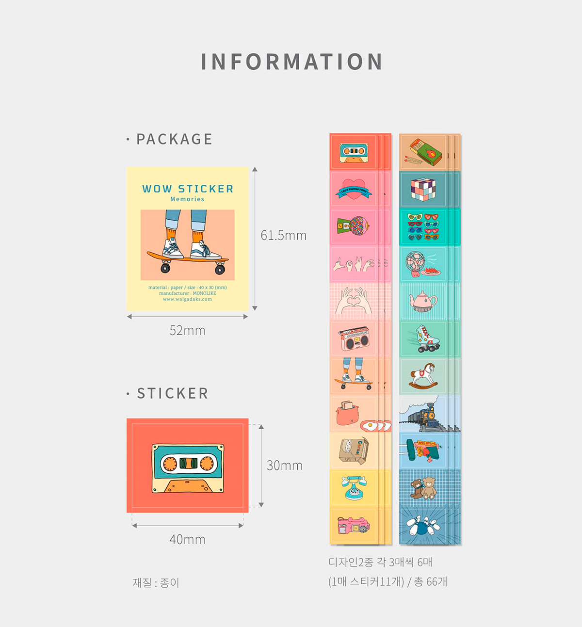 • Quantity: 66 Sticker ( 22 unique designs x 3 same sheets)