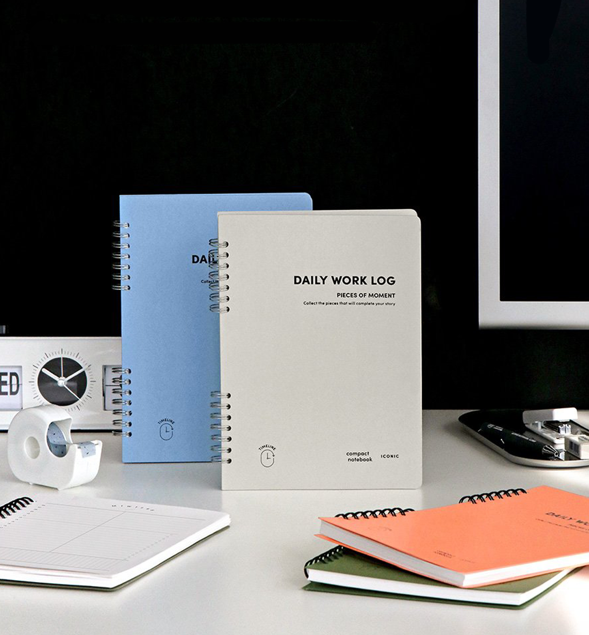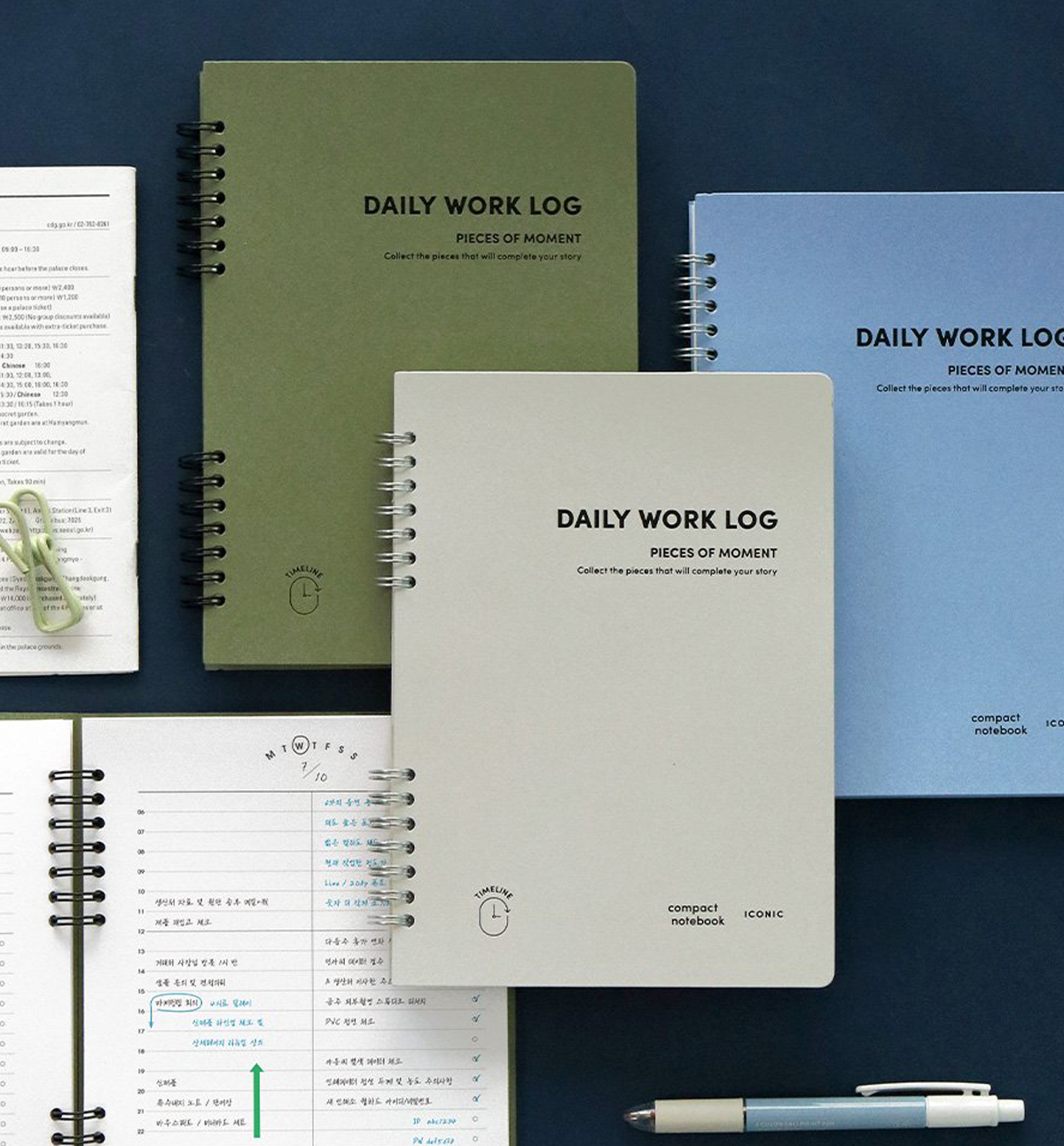 This A5 Compact Daily Work Log Notebook [4 Colors] comes in 4 different colors: 05. Light Gray, 06. Orange Coral, 07. Placid Blue and 08. Olive Green and it has ring binding type.