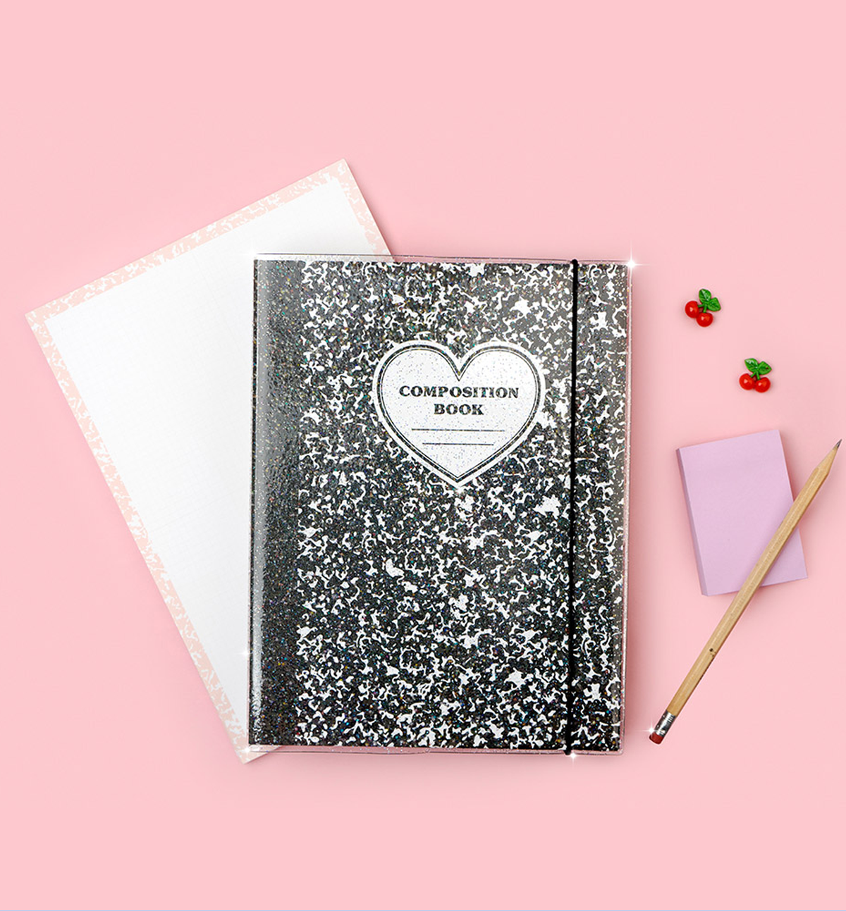 This listing is only for the PVC Cover (Glitter). It will fit only A5 Composition Hard Cover showing in the picture.