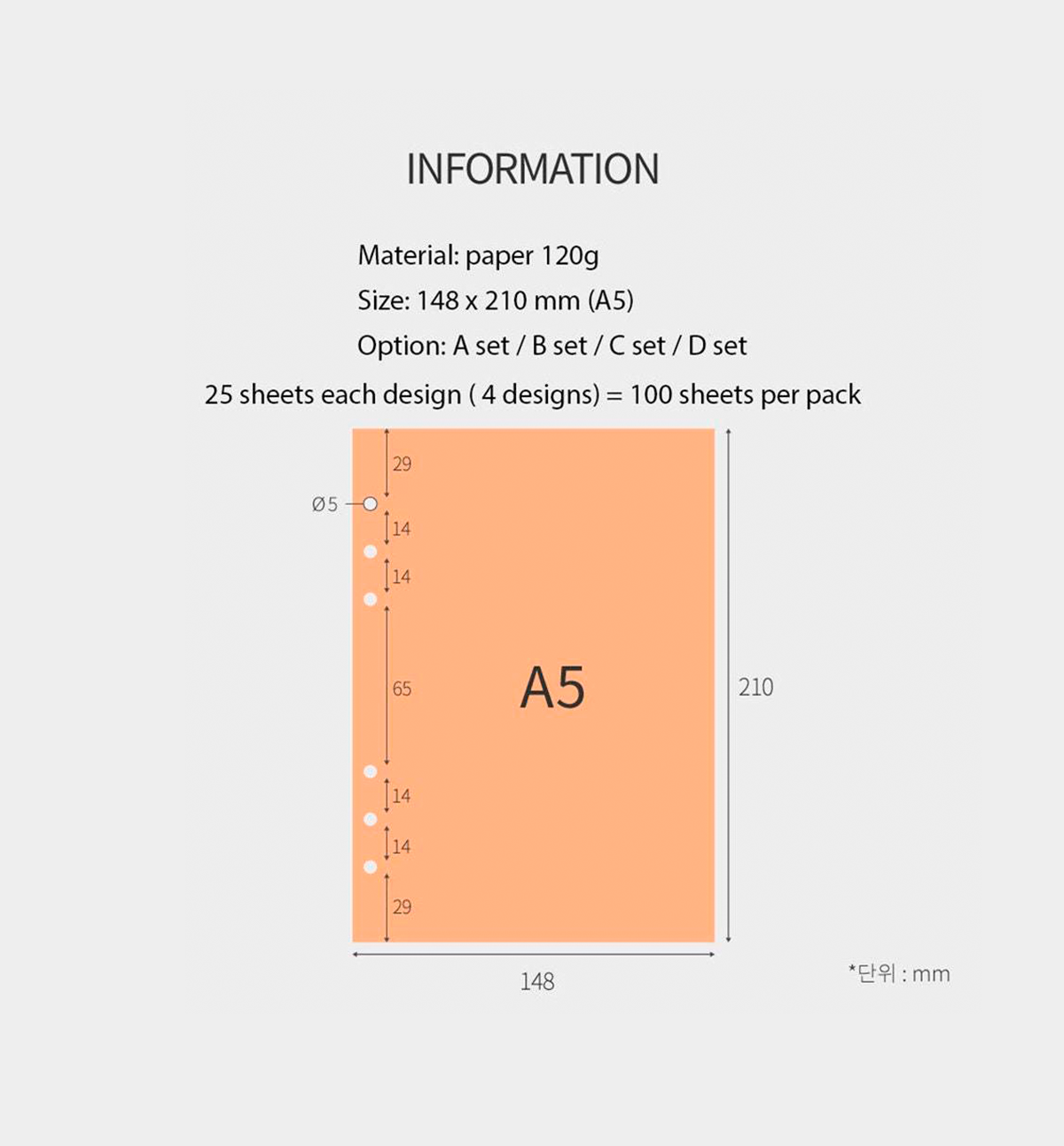 This beautiful A5 Planner Refill comes in 4 different Set: A set, B set, C set & D set. Please, see pictures for reference.