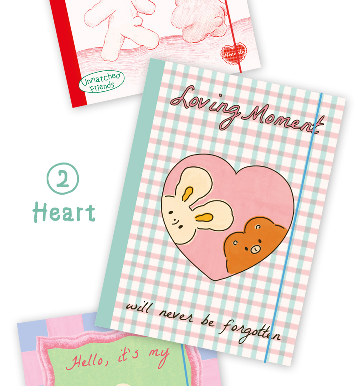 This beautiful A5 Unmatched Friends Cover Binder [Series 2] comes in 4 different designs: 1. Red, 2. Heart, 3. Frame and 4. Beige.