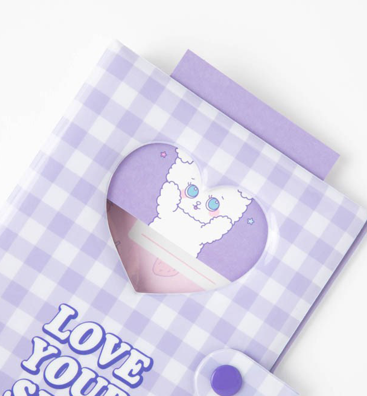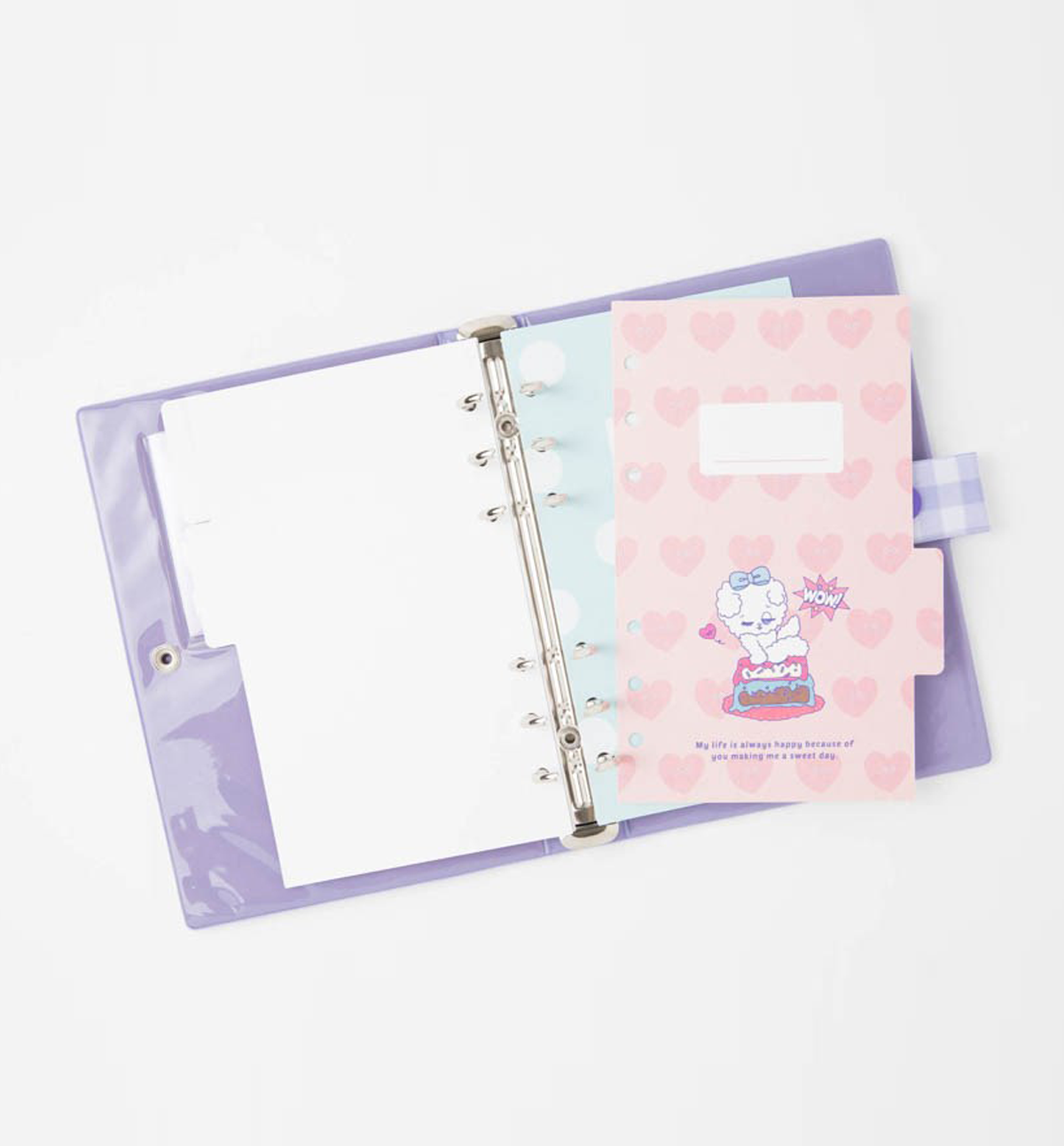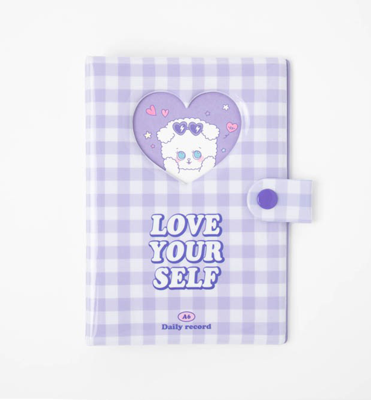 This is a soft lavender colored enamel 6-hole diary cover with a cute Bichon design. You can create your own diary by inserting a photo or cover into the cover with a heart window! Feel free to DIY by inserting A6 size paper!