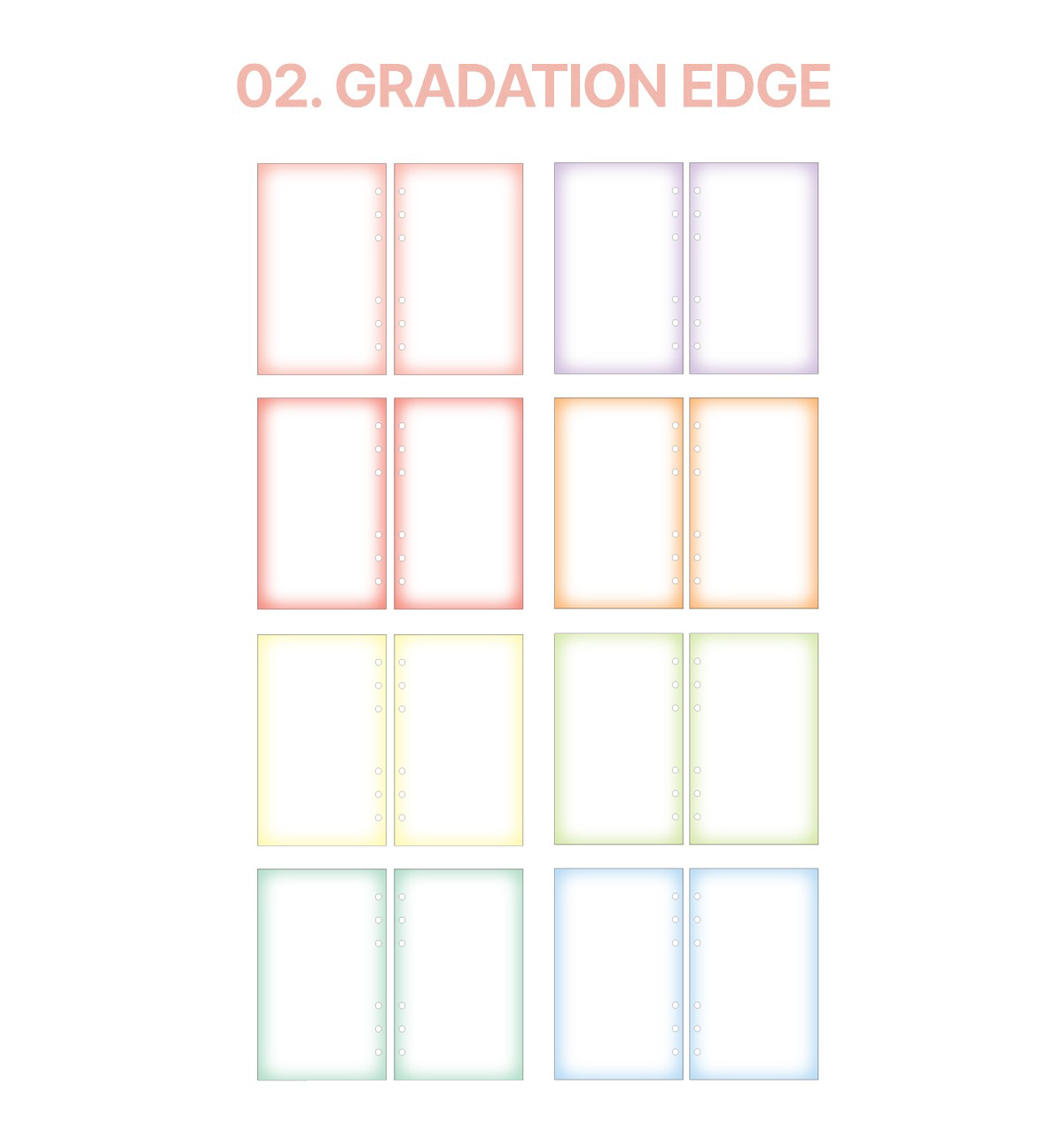 This beautiful A6 Jumbo Refill Paper [Gradation] comes in 2 different color shades: 01. Gradation Two Tone and 02. Gradation Edge. Please, see pictures for reference.