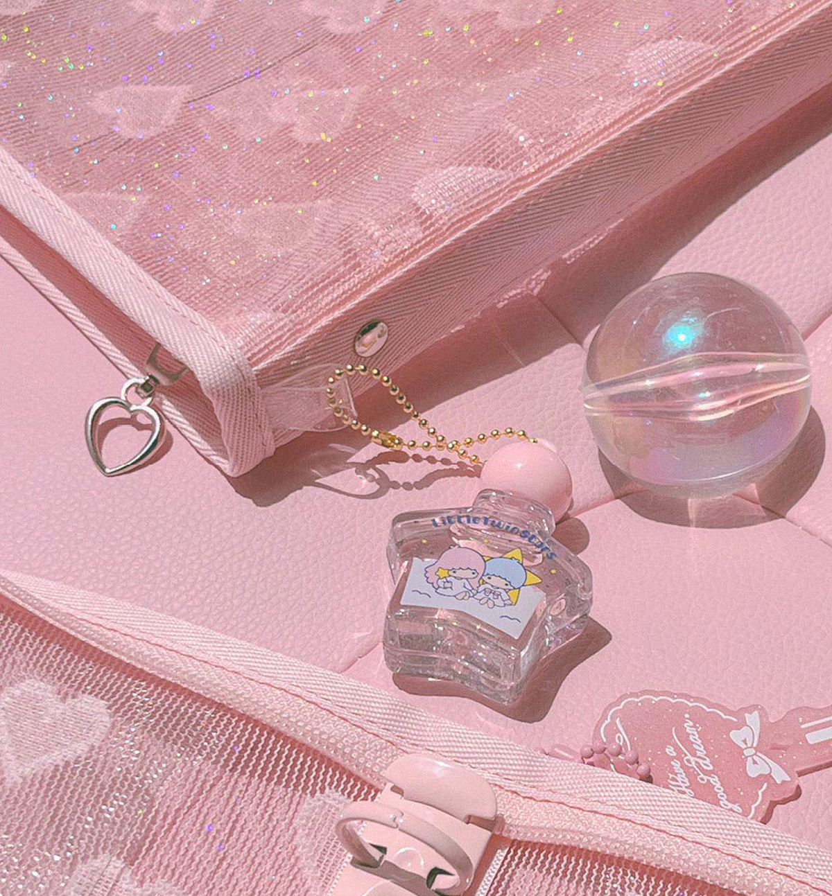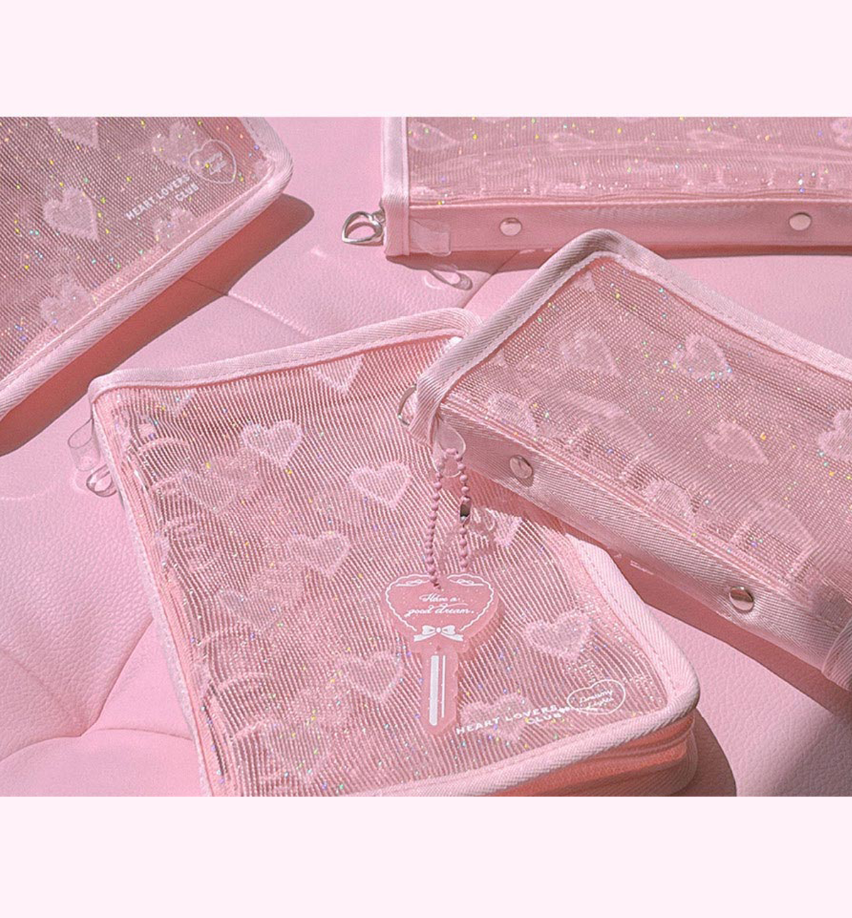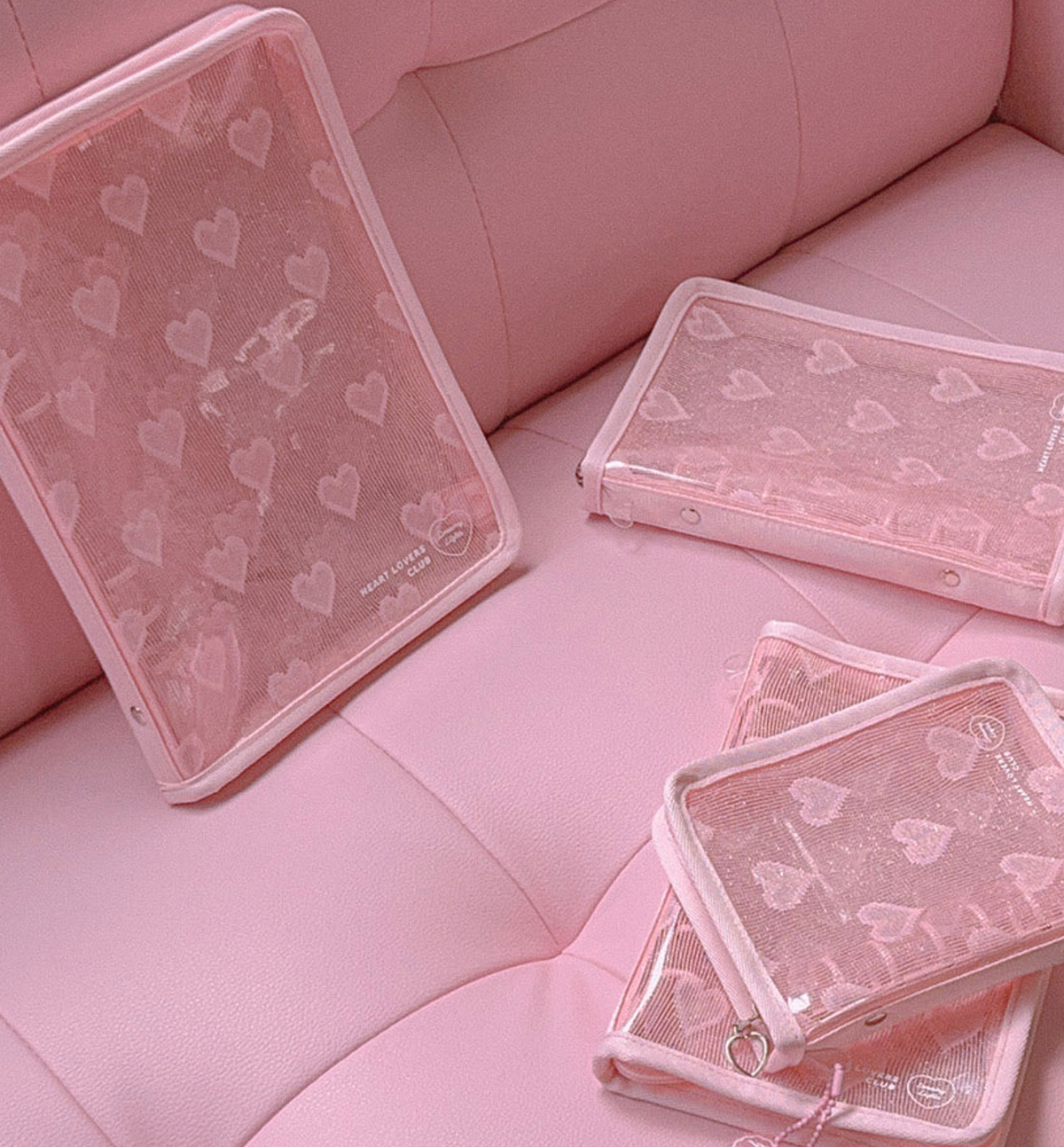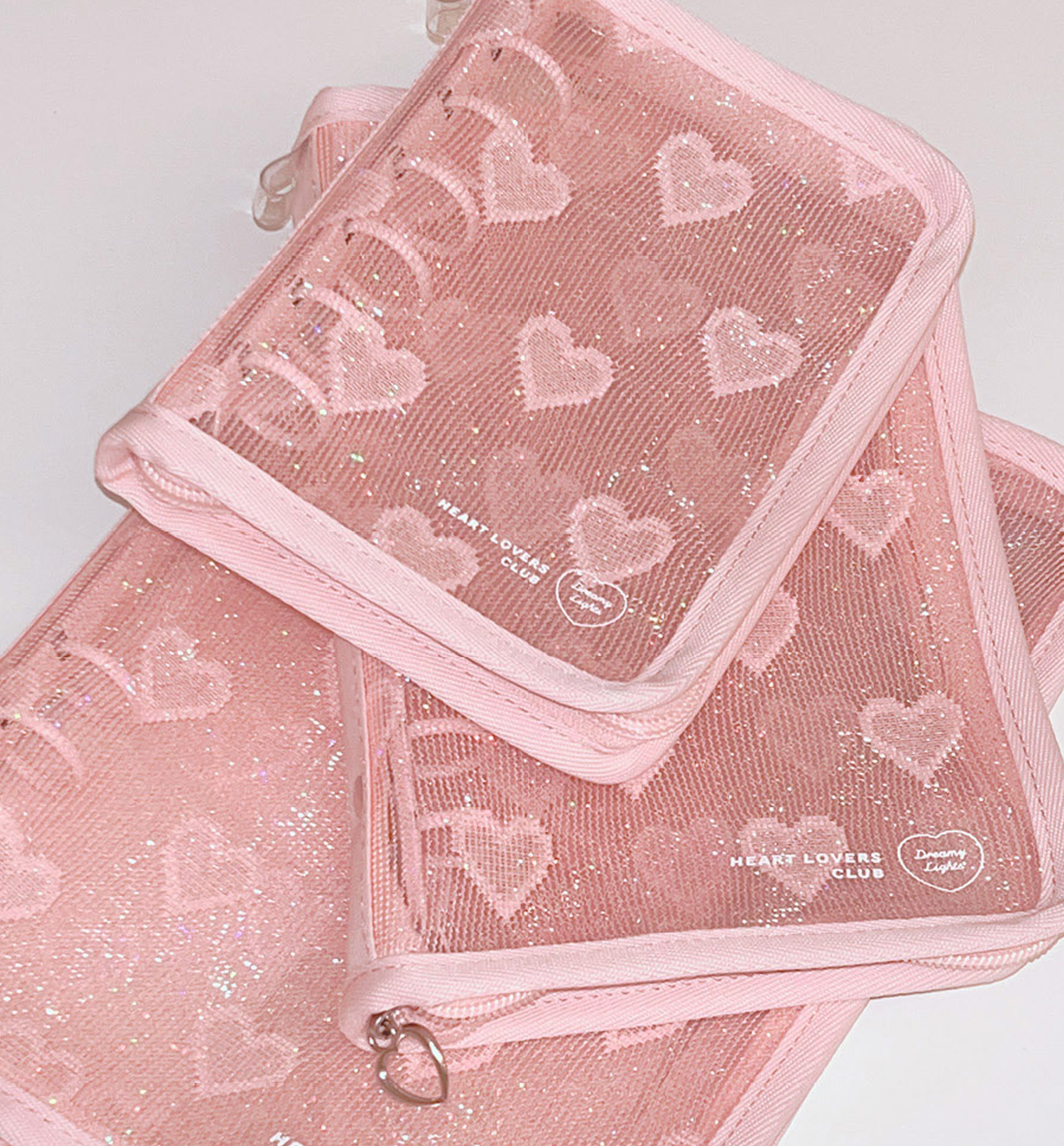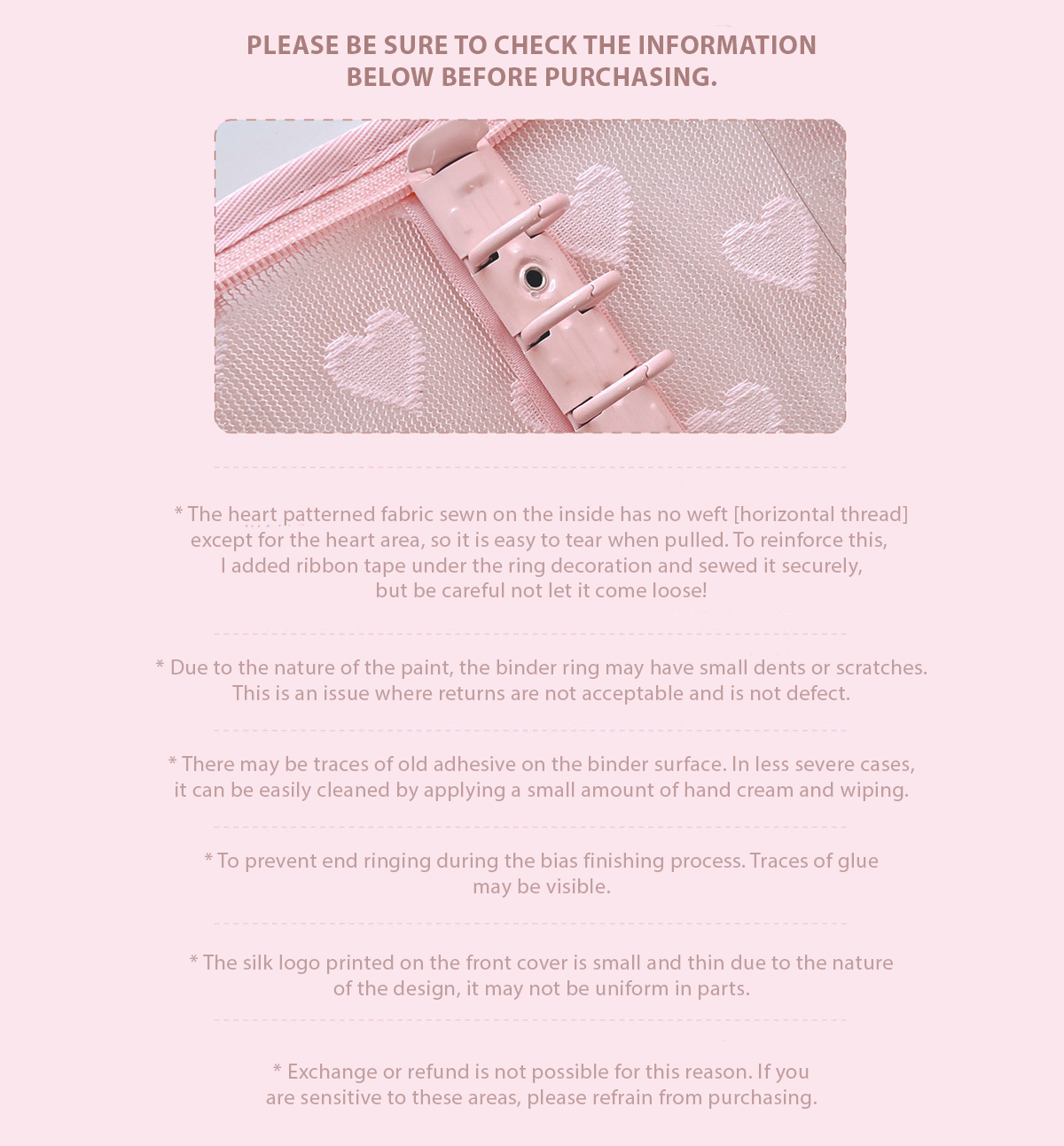 A cute heart patch fabric is sewn on the inside of the cover, giving it a lovely and unique feel. To prevent this delicate fabric from tearing easily, we added a riboon tape to the inside and sewn it to increase durability.
