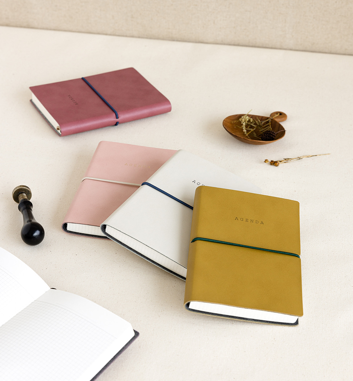 This Agenda Small Notebook Ver. 4 comes in 12 colors: Wine, Khaki, Red, Indi Yellow, Dry Rose, Rust, Lake, Lavender, Fig, Ivory, Blush and Auric.