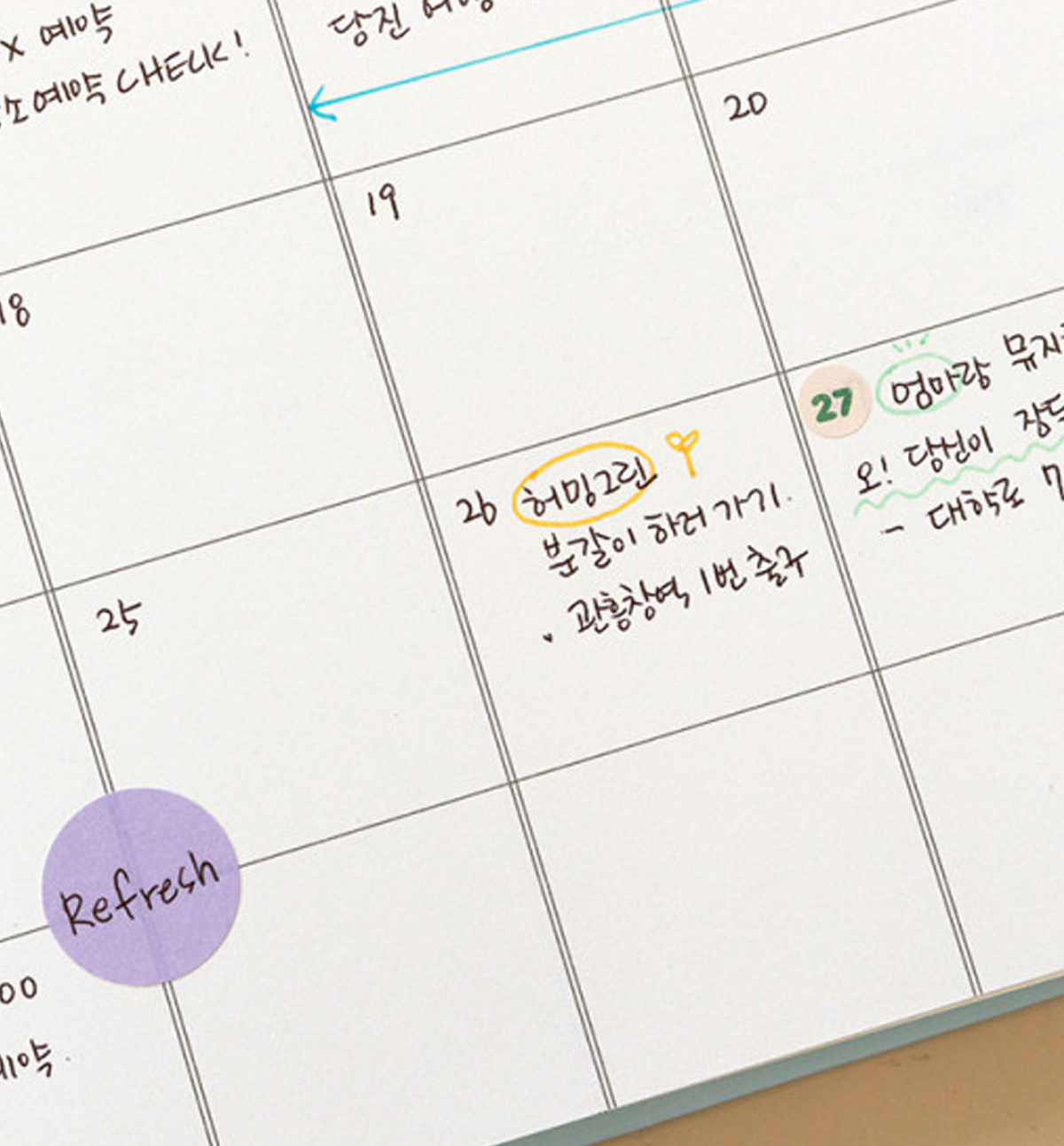 *Korean holidays are pre-marked throughout the calendar’s dated pages. But you can always add your personal holidays.