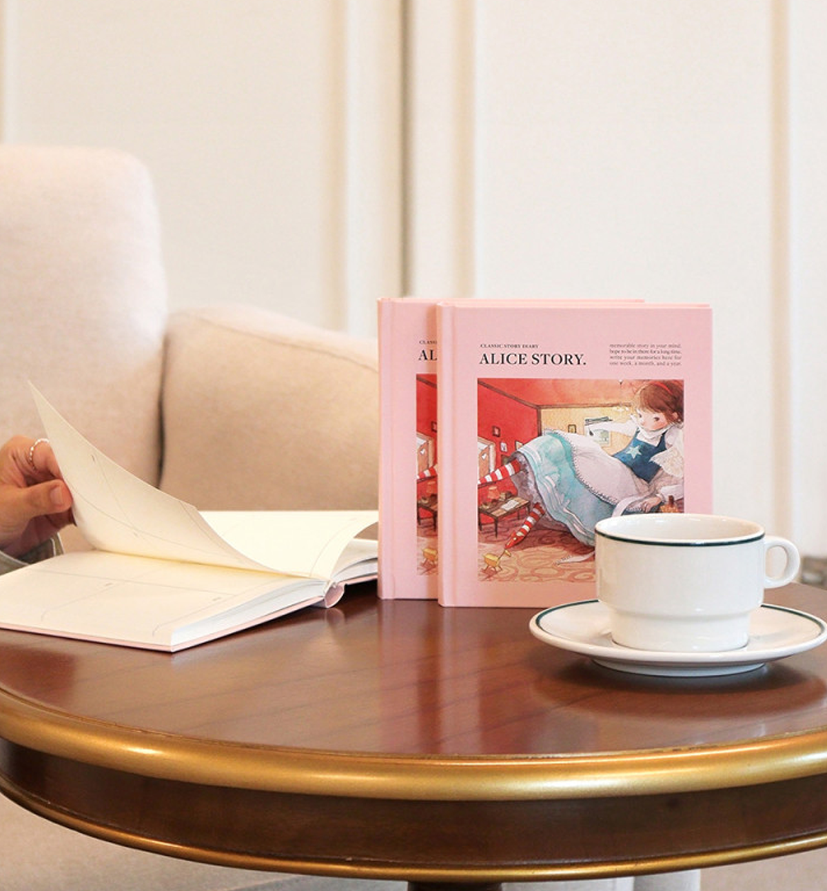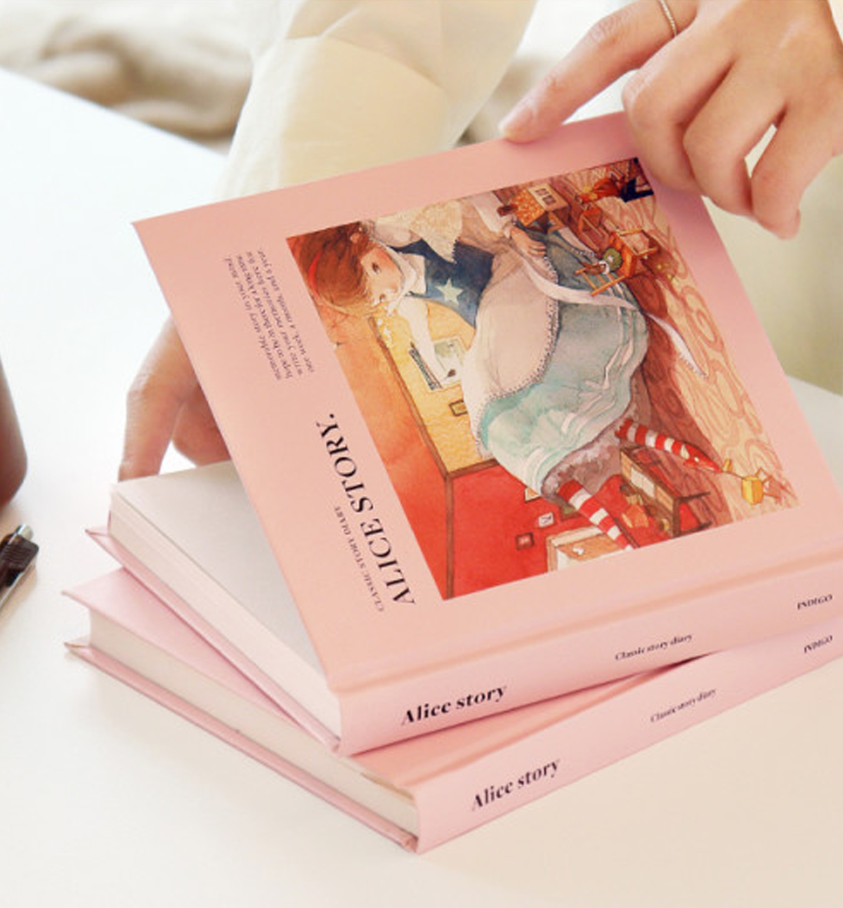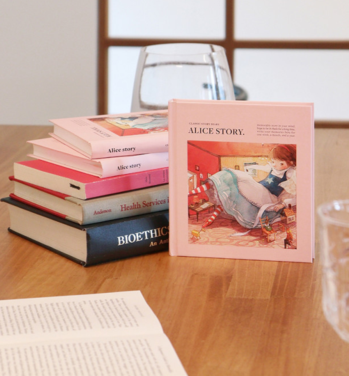 This Alice Weekly Planner opens flat, hard cover and has beautiful illustrations in each pages.