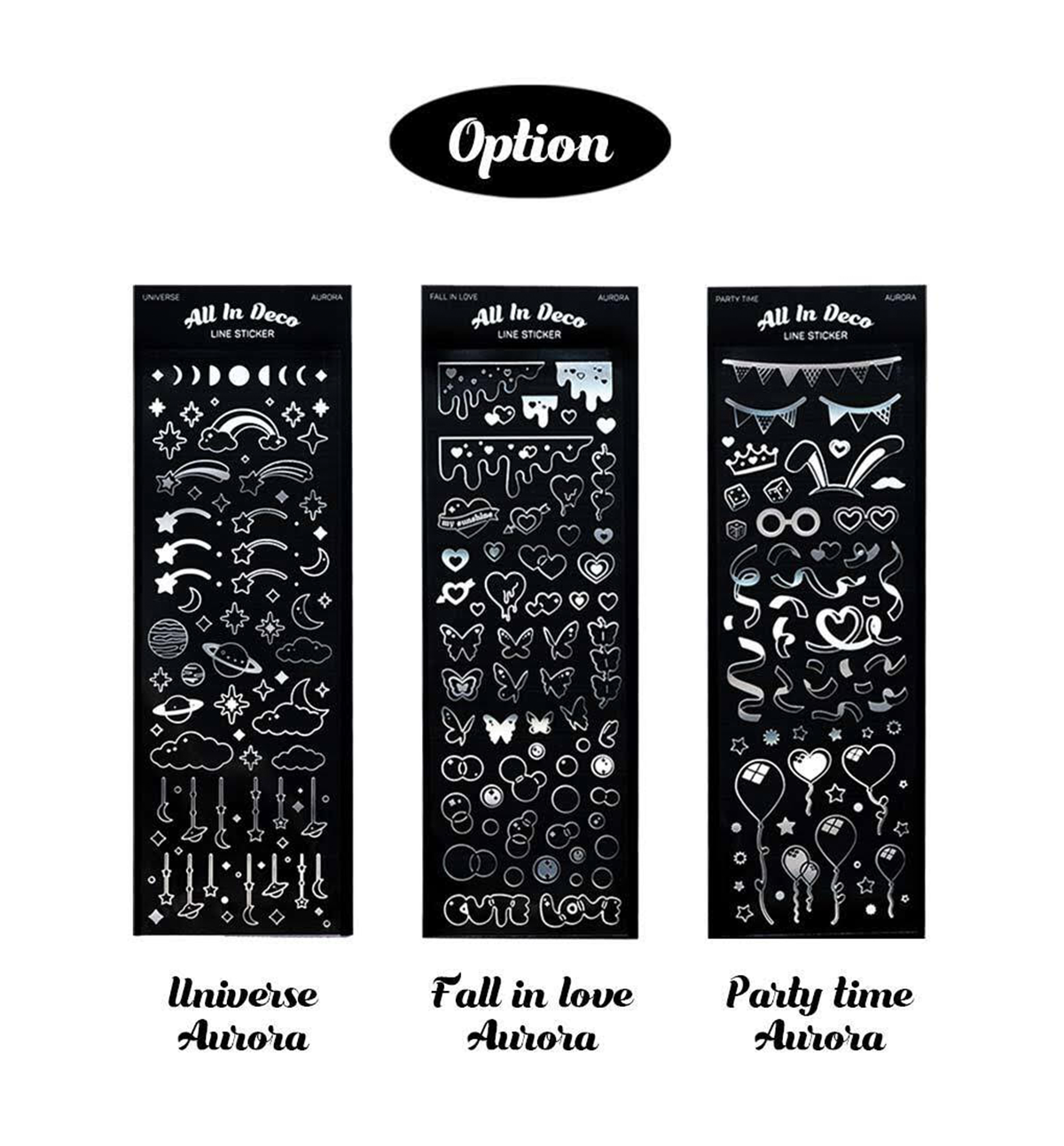 This beautiful Seal Stickers Deco comes in 6 different designs: Universe Aurora, Fall In Love Aurora, Party Time Aurora, Universe Pink, Fall In Love Pink and Party Time Pink.