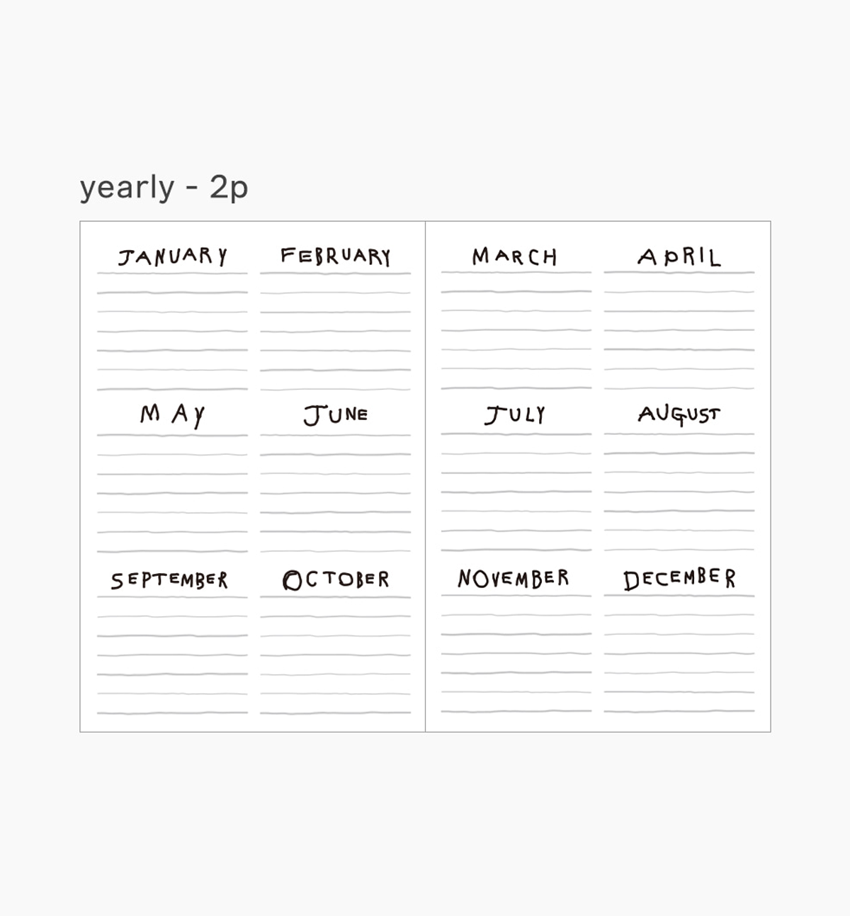 - Yearly: 2 pages