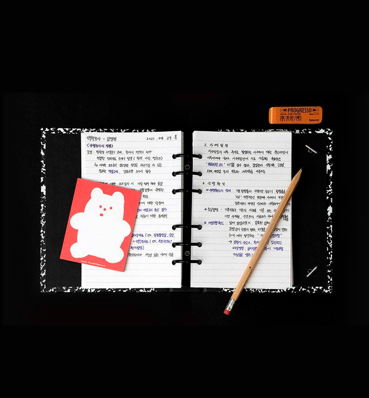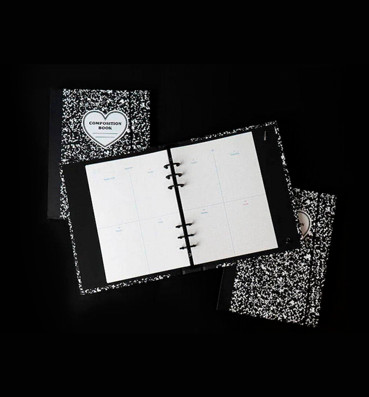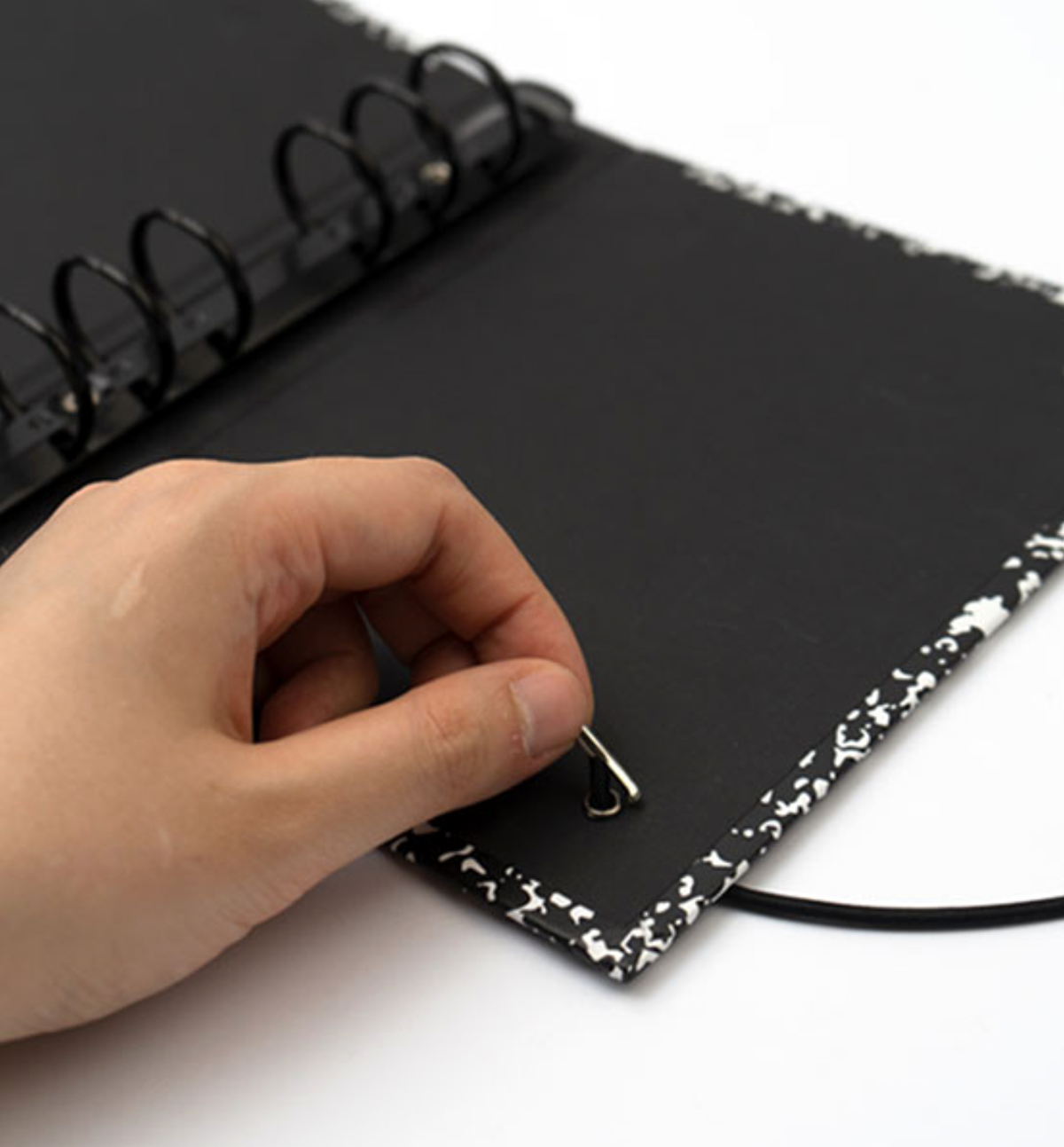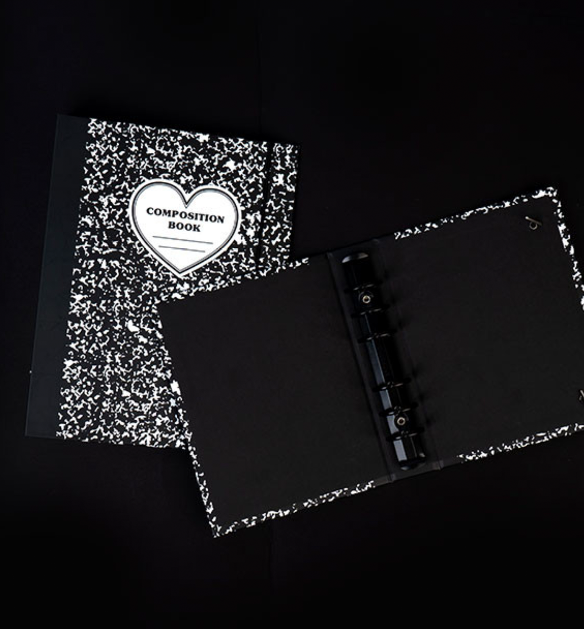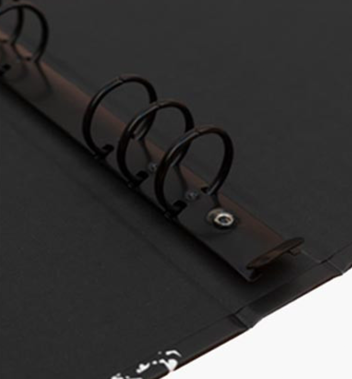 The black binder's elastic/ring may vary to "white" or "black" elastic/ring. As well as the inside cover, it may be black instead of black color.