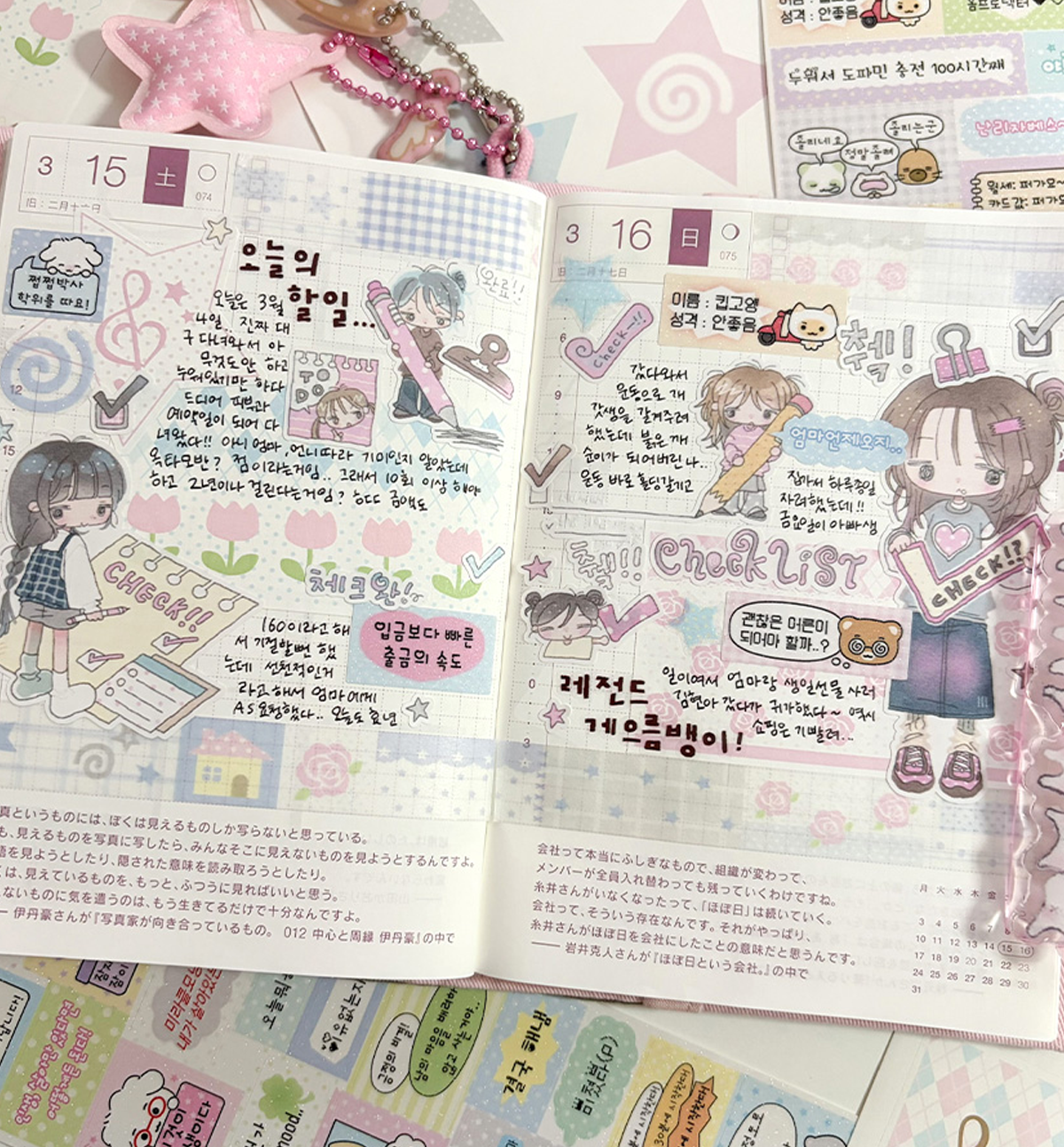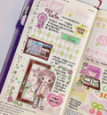 A versatile sticker set featuring layout elements and patterned designs with cute graphics. Perfect for diaries, scrapbooks, and DIY projects. Easy to write on, they add depth and charm to any page.