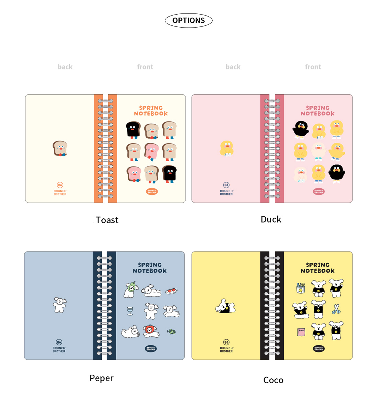 This B6 Brunch Brother Line & Blank Ring Notebook comes in 4 different designs: Toast, Duck, Peper and Coco
