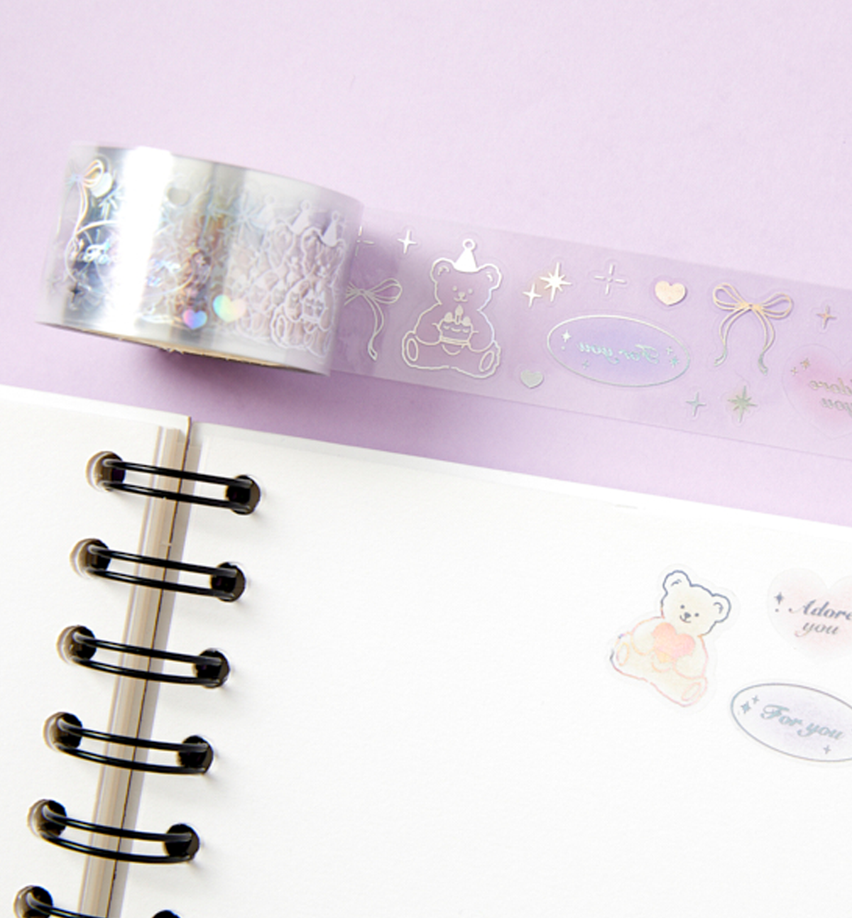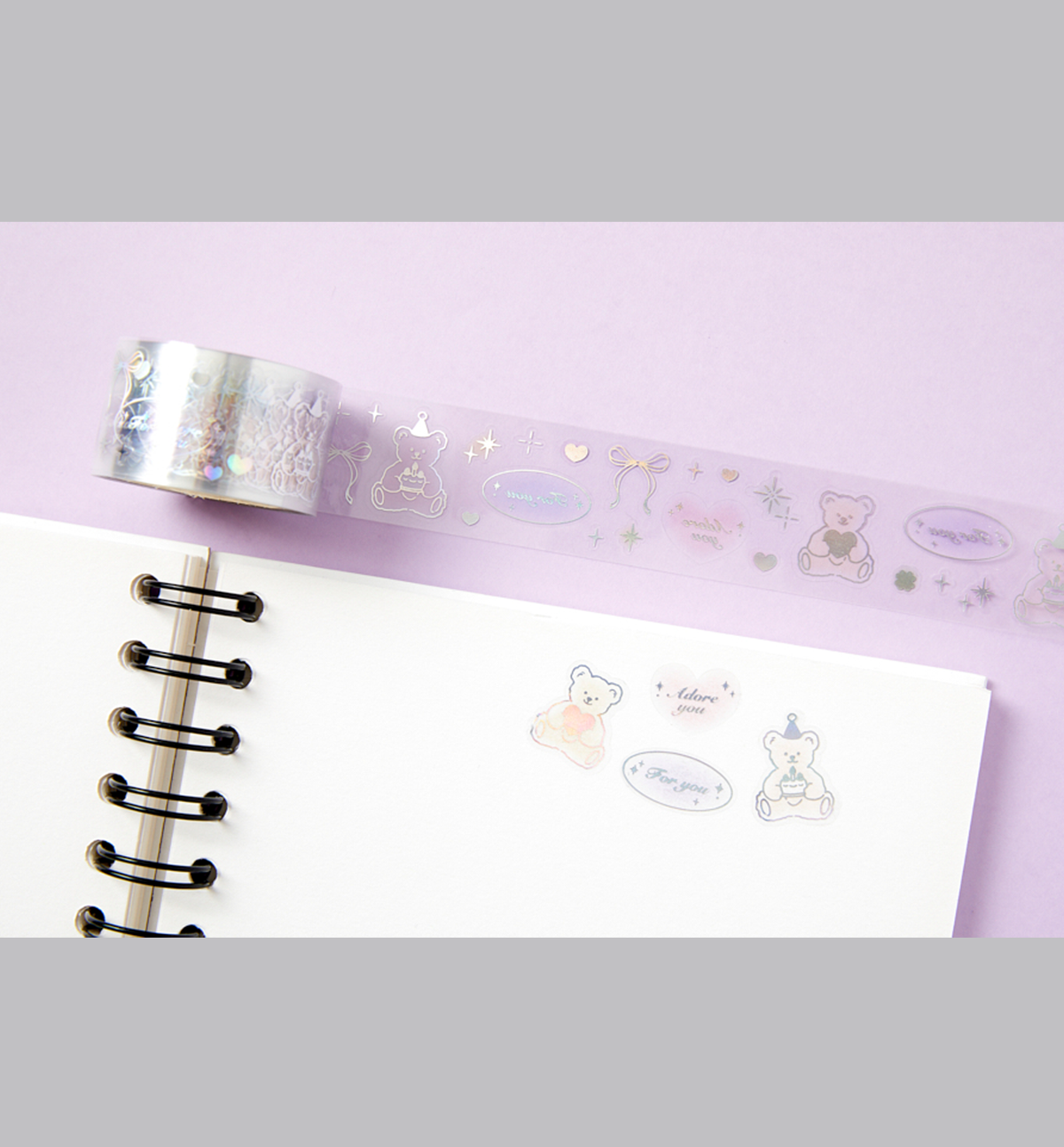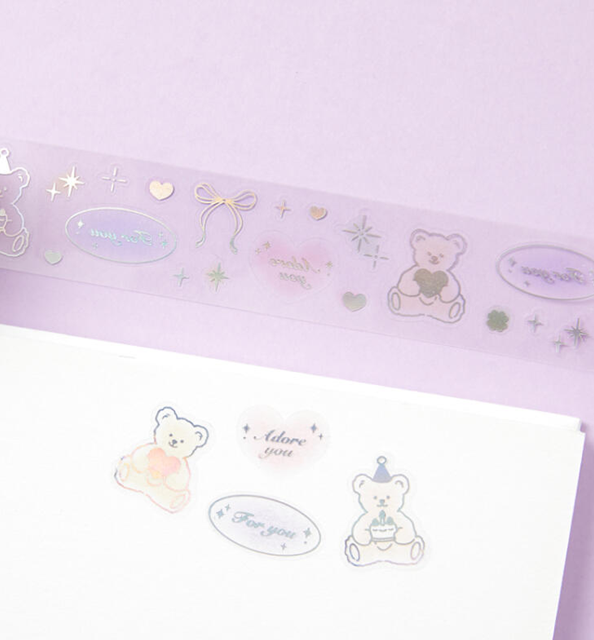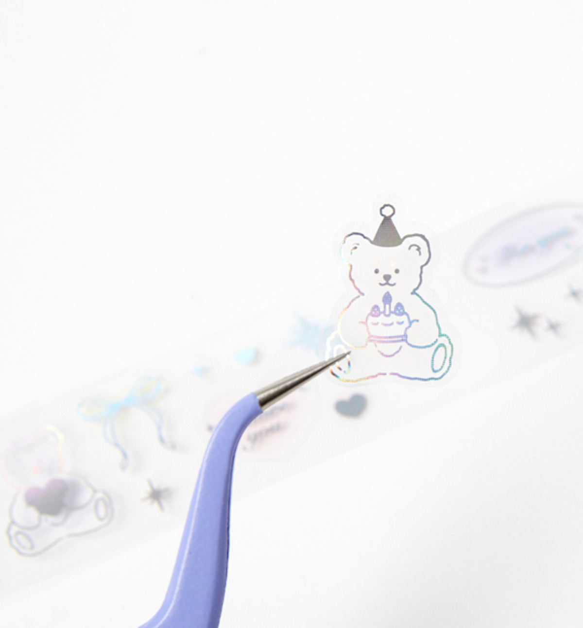 - Quantity: 1 Bear Hologram Kiss Cut Washi Tape