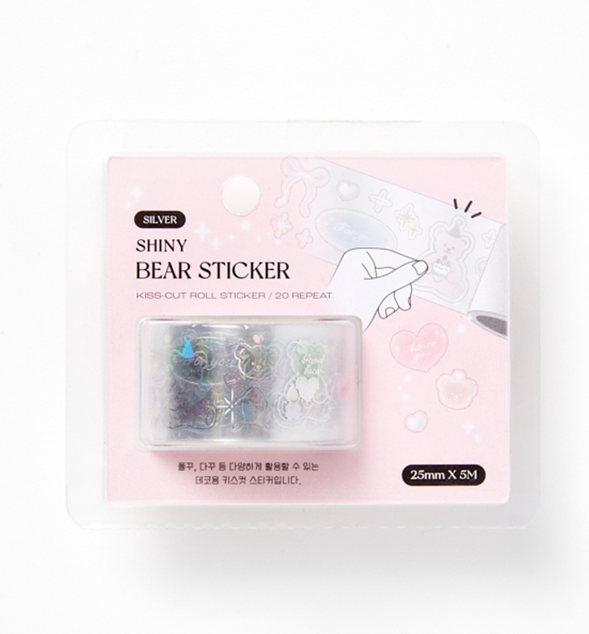The enchanting hologram-shaped bear kiss cut washi tape has been released! It's a roll sticker with a 25cm section that repeats a total of 20 times. Use the hologram shaped kiss cut washi tape in various ways such as decoration for your planner or homework.