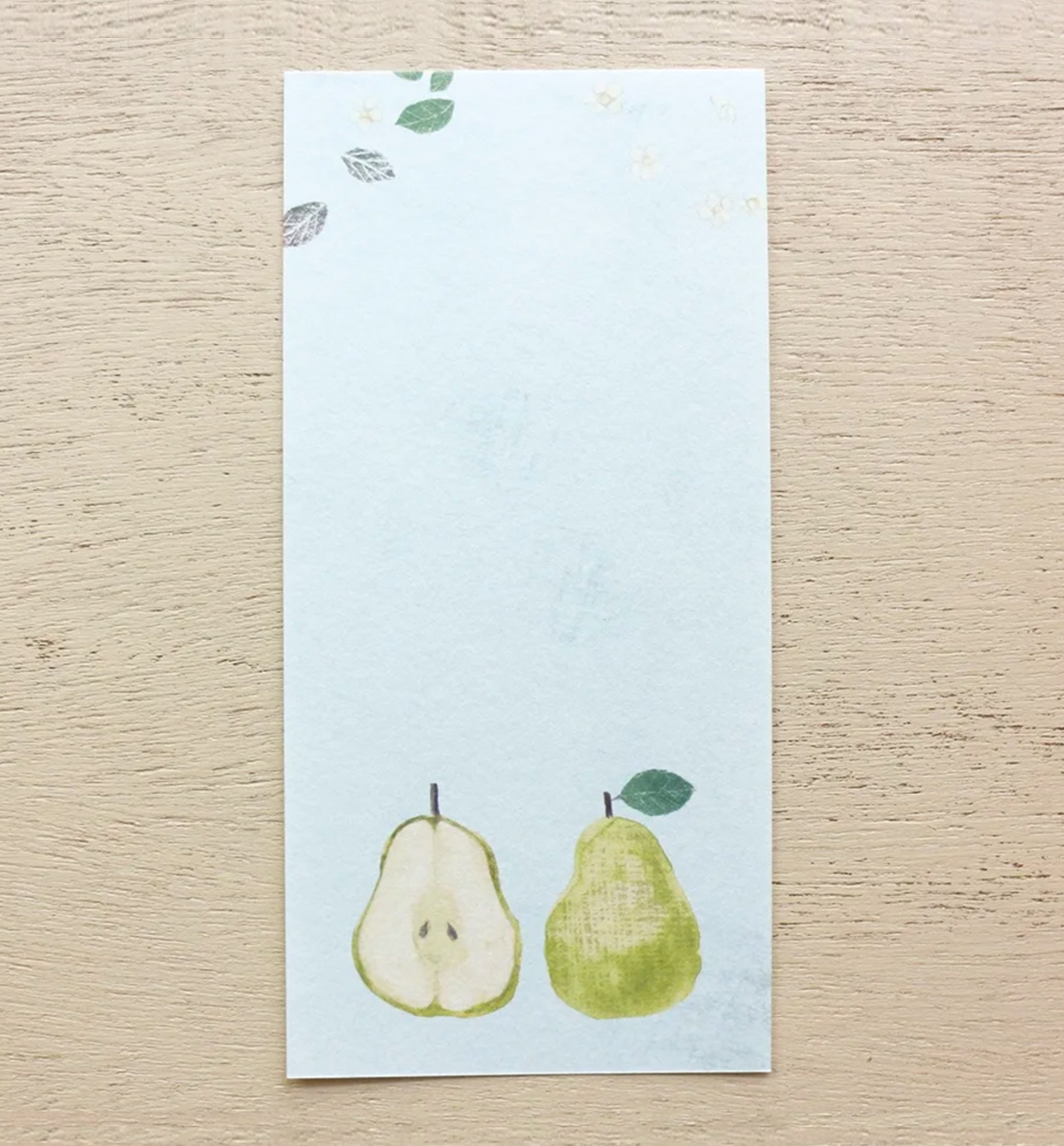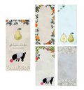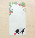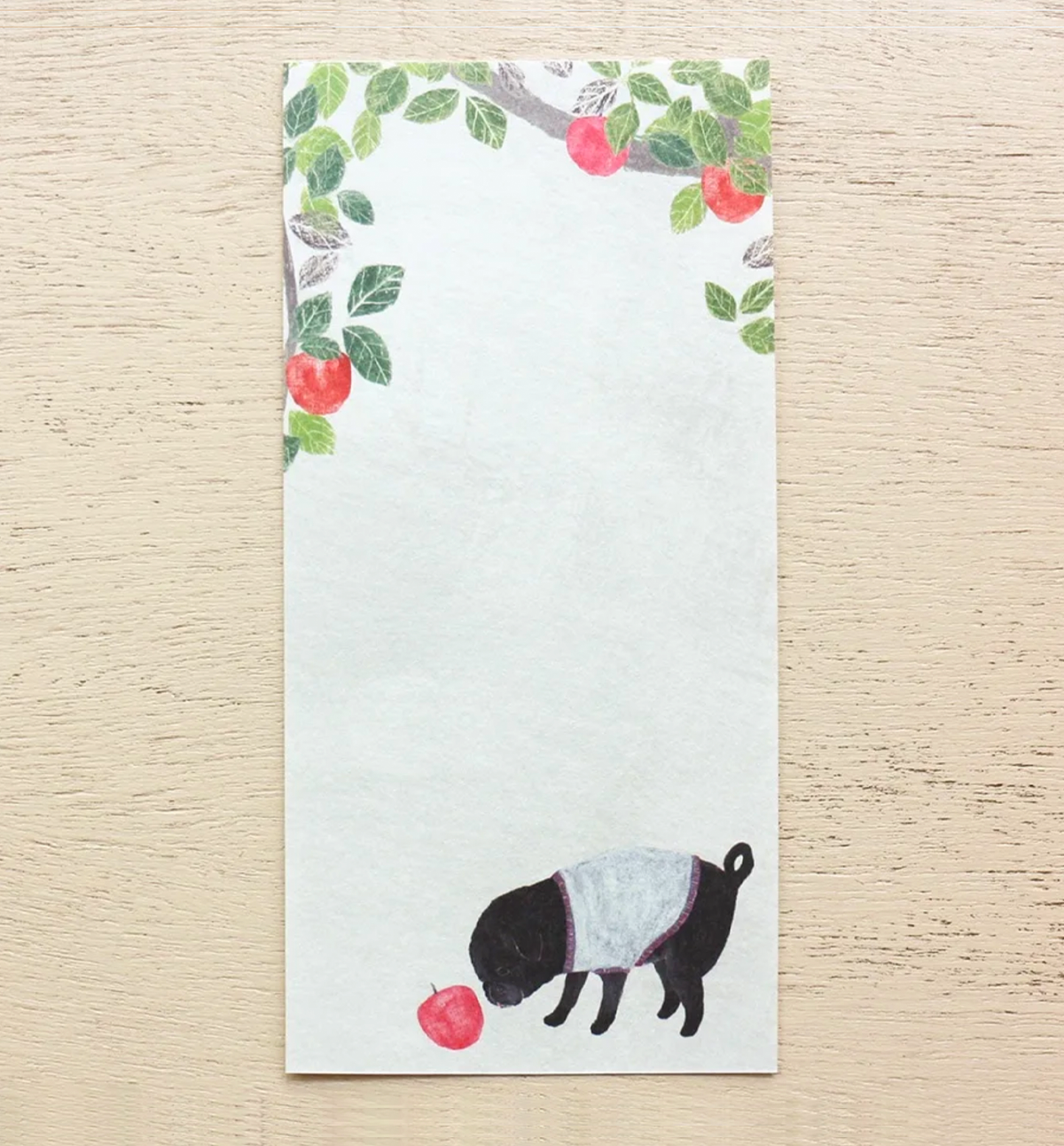 Stylish and one-stroke paper by Omori Yuko with fresh fruits and plants drawn on it. The dog was attracted to the brightly colored orange, pears, and the pleasant scent of apples. A stylish and cute one-stroke note that makes you feel the slow and comfortable flow of time. Perfect for writing small letters or thank you notes, It comes in 4 patterns, so you can use it to suit your mood or the person you are sending it to. This memopad has been made with Mino washi paper [Luxury Japanese paper], which has a pleasant rough texture, so you can enjo the unique writing experience of washi paper.