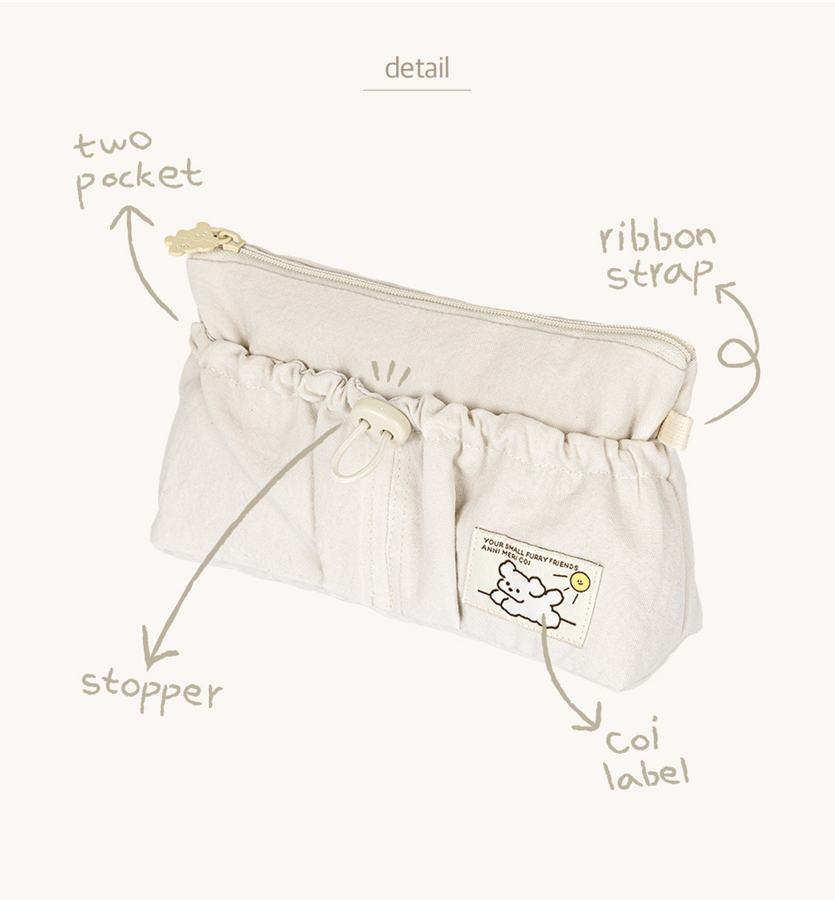 This beautiful Coi String Pocket Pencil Pouch [4 Colors] comes in 4 different colors: Ivory, Yellow, Pink and Navy
