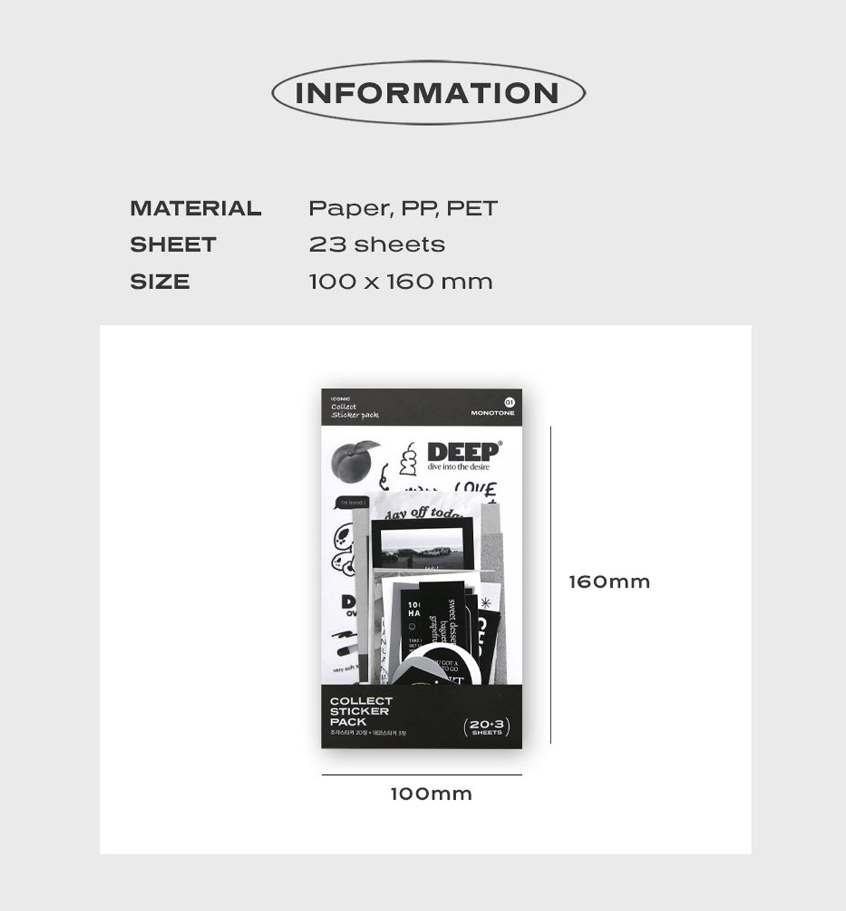 This Collect Sticker Pack comes in 2 different designs: 01. Monotone and 02. Colorful. The pack of sticker comes with 23 stickers.
