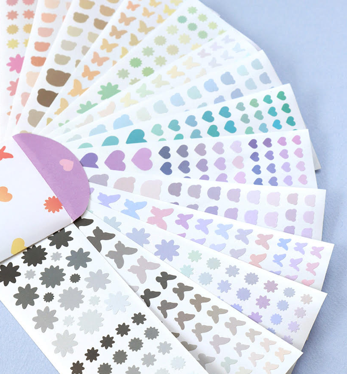 This beautiful Seal Stickers Deco comes in 8 different designs: 01. Teddy Bear A, 02. Teddy Bear B, 03. Heart A, 04. Heart B, 05. Butterfly A, 06. Butterfly B, 07. Flower A and 08. Flower B.