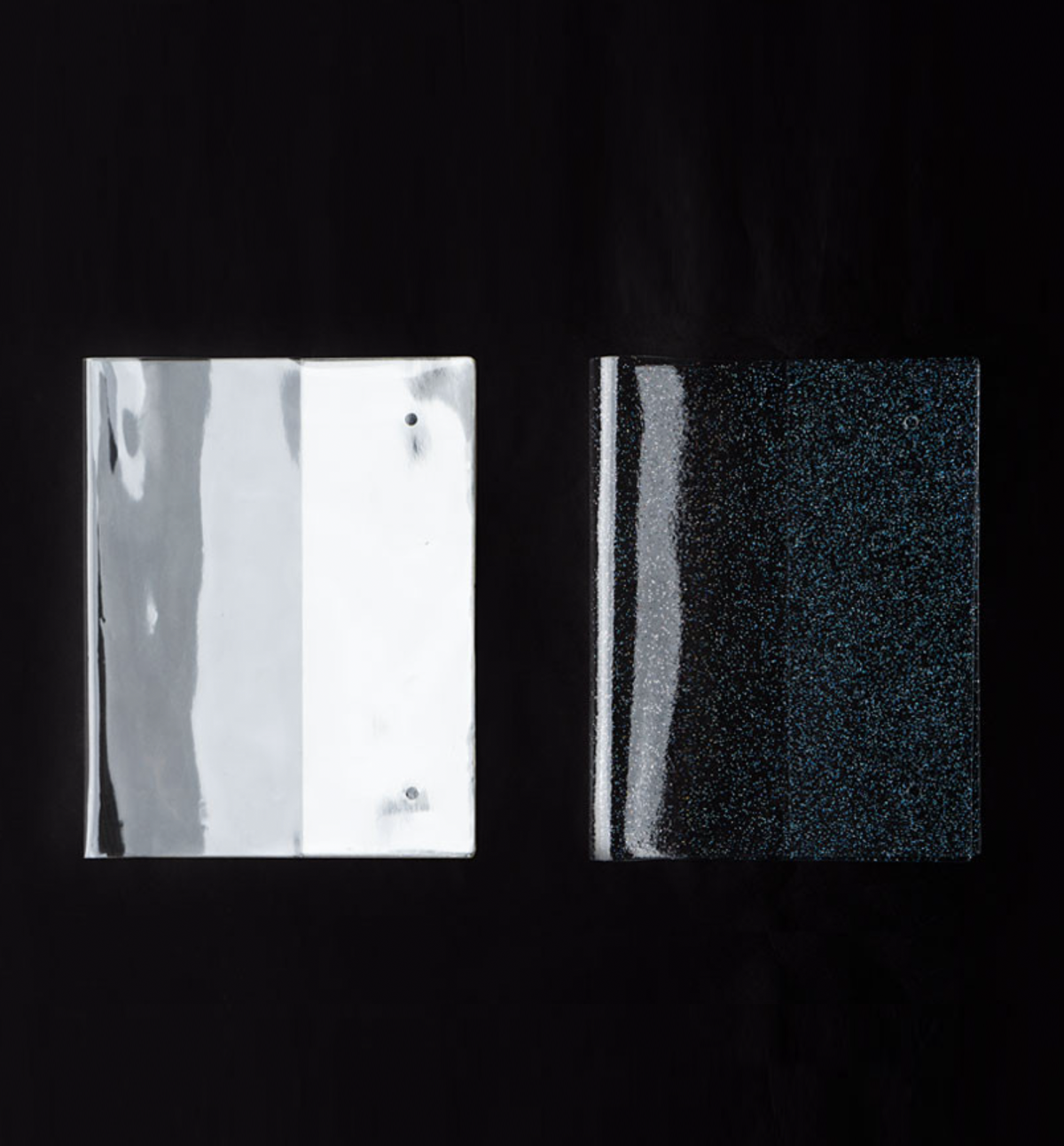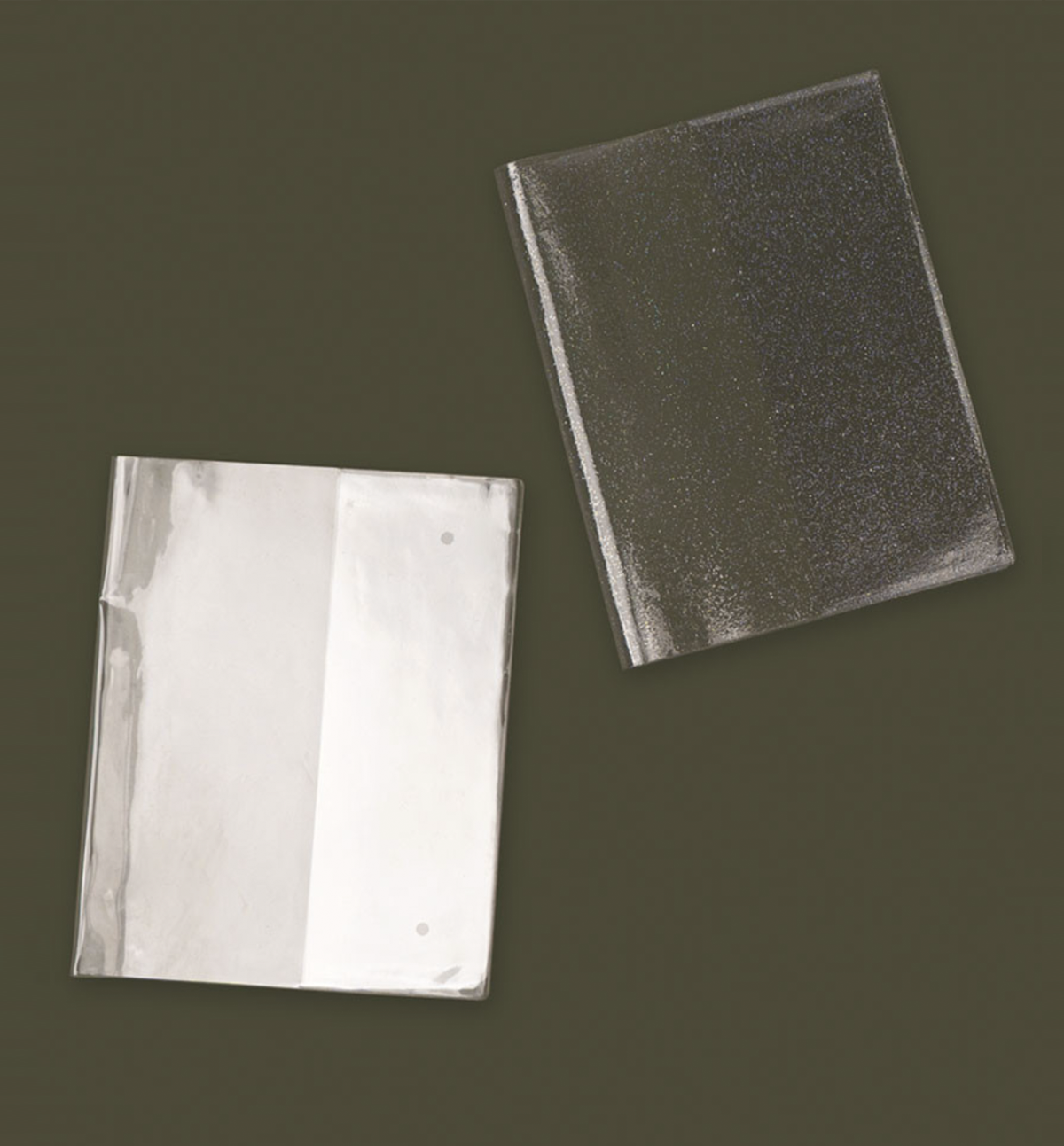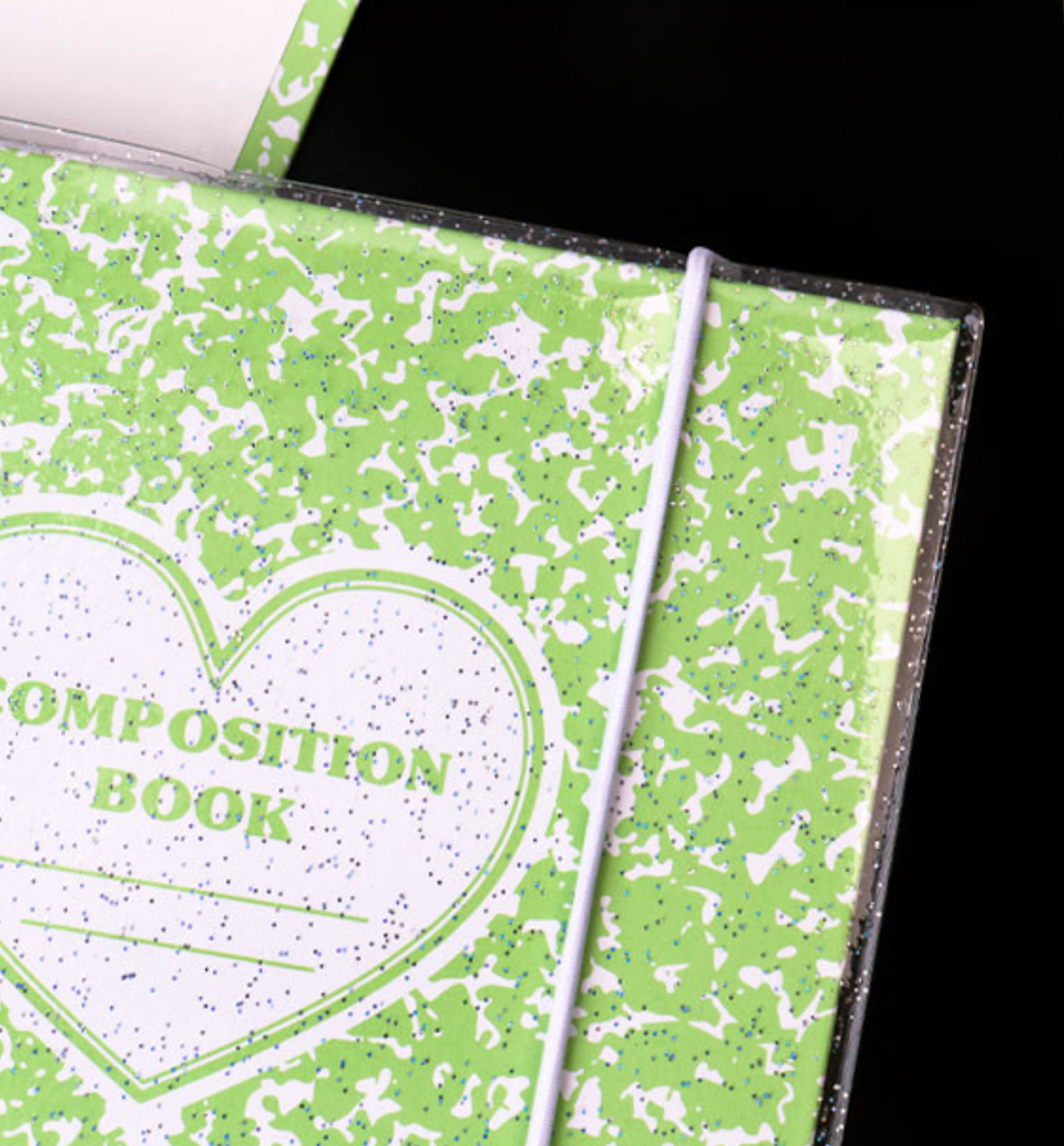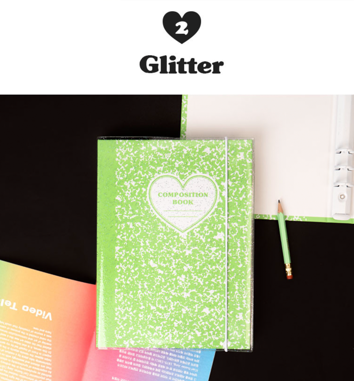 A5 Composition PVC cover comes in 2 different finished: 1. Clear and 2. Glitter.