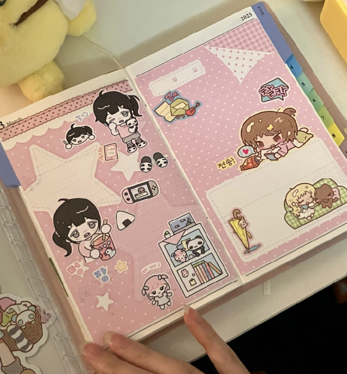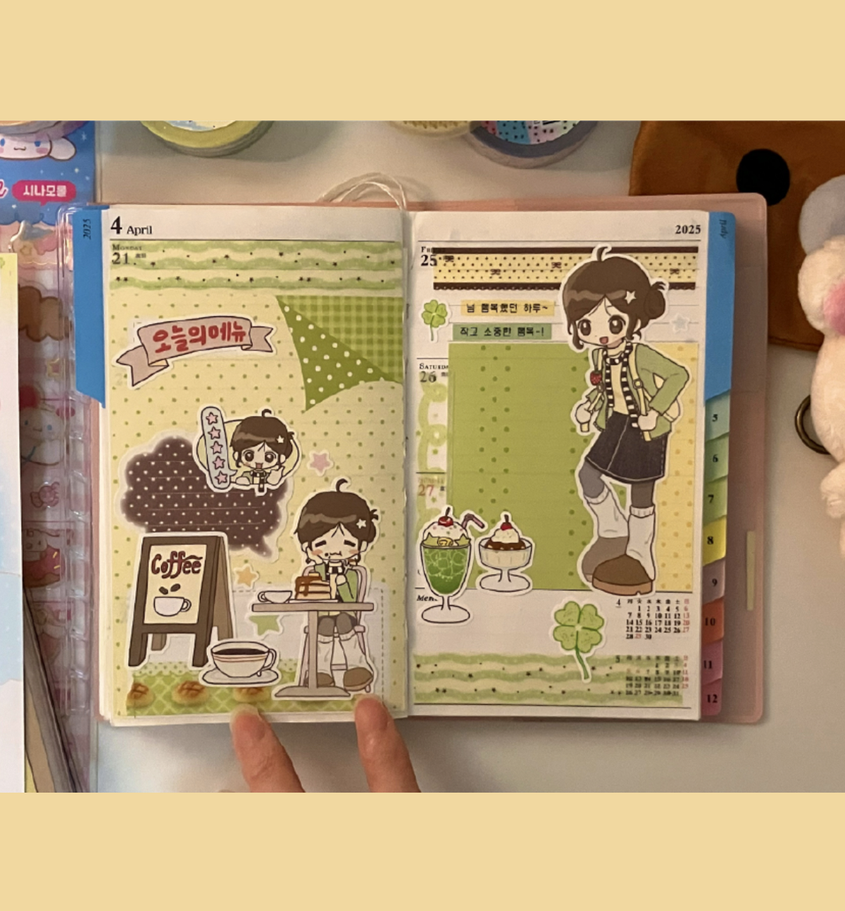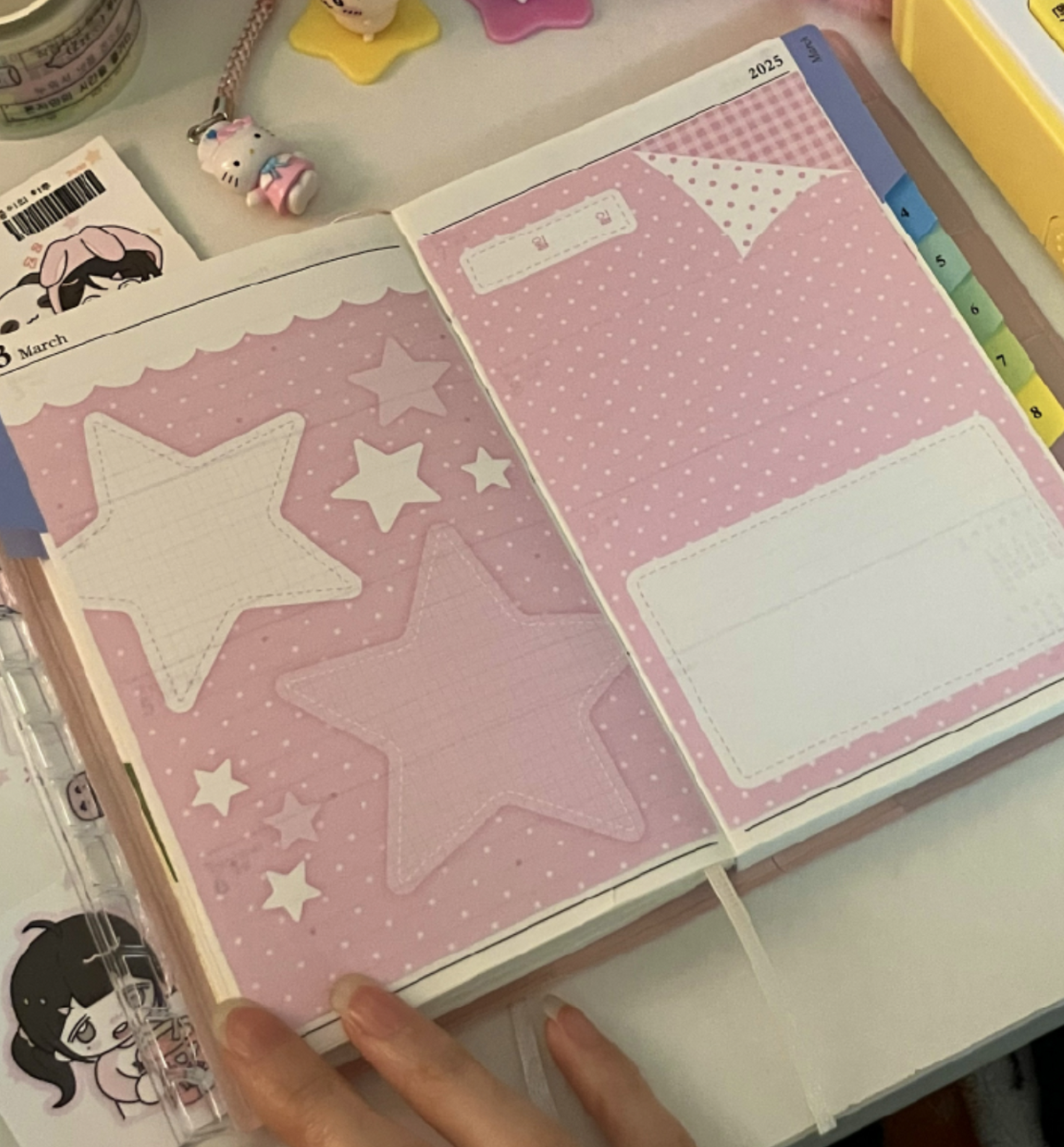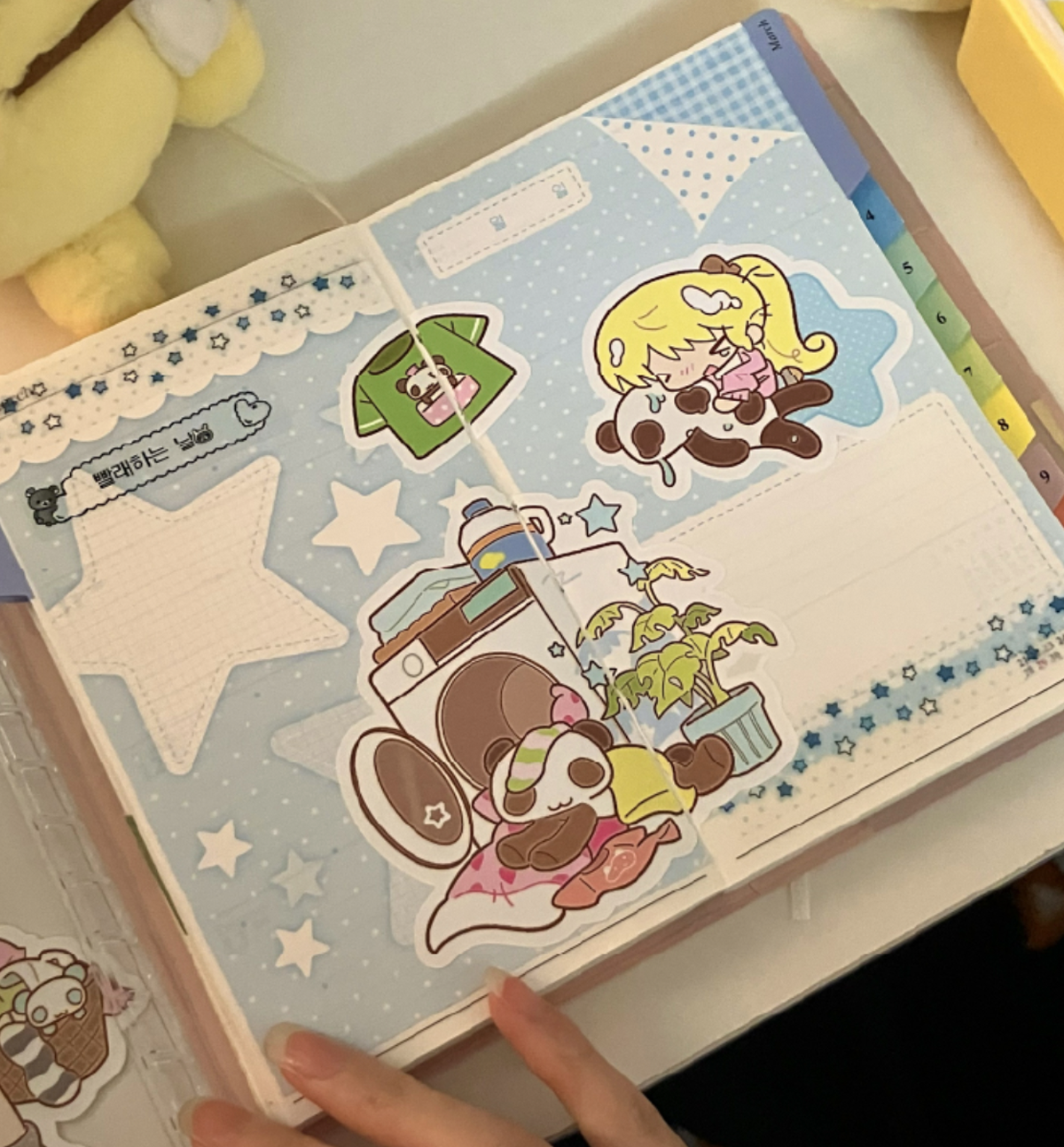 A versatile sticker set featuring layout elements and patterned designs with cute graphics. Perfect for diaries, scrapbooks, and DIY projects. Easy to write on, they add depth and charm to any page.