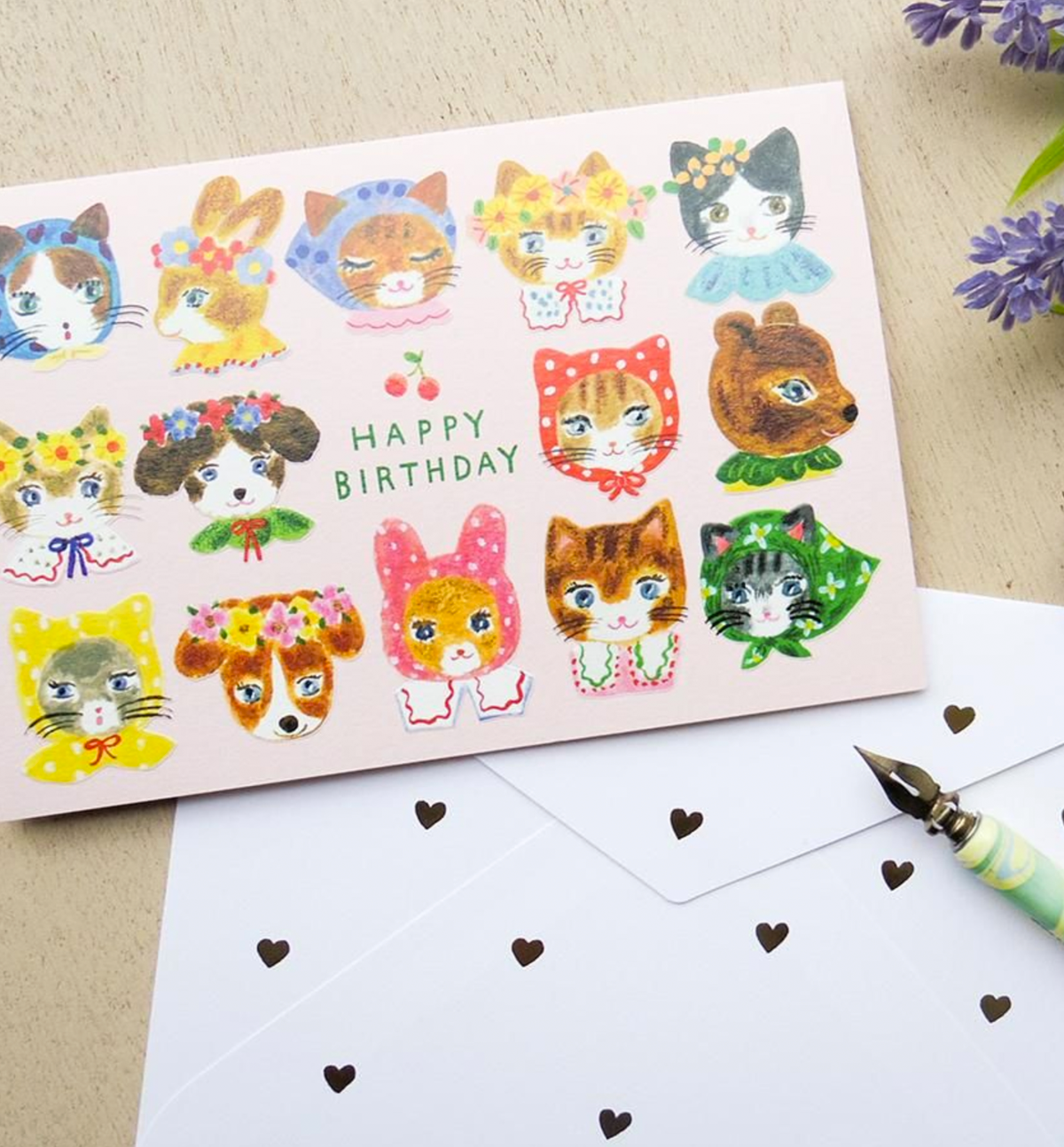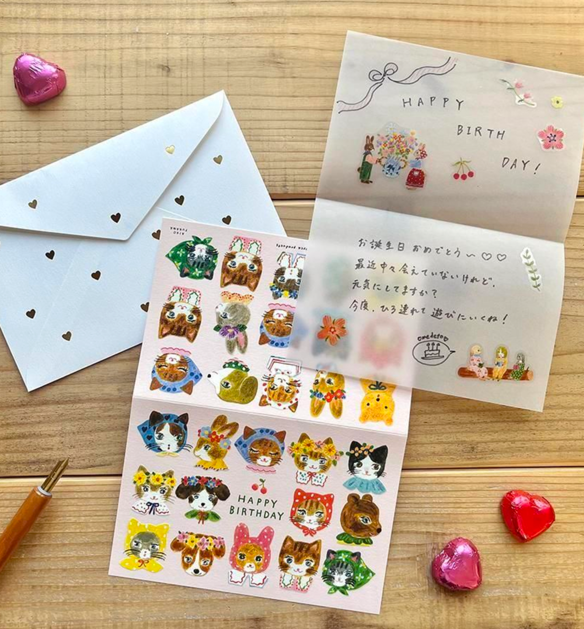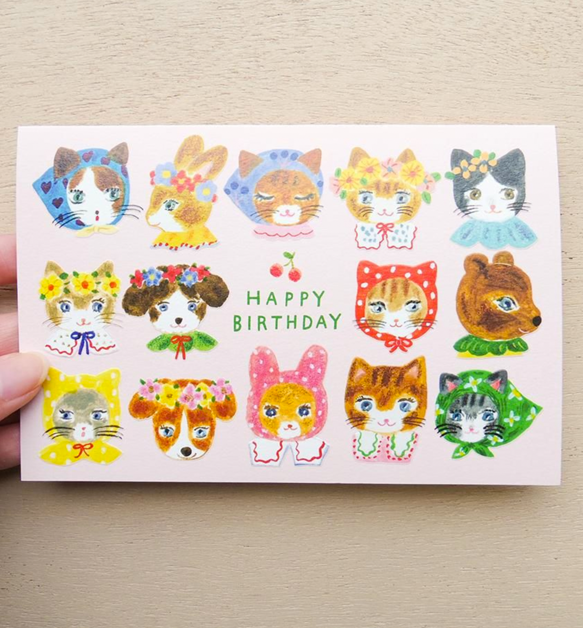 Celebrate a special birthday with this charming card designed by illustrator Aiko Fukukawa. Featuring stylish animals with adorable, cheerful smiles, this design brings warmth and happiness at first glance. The entire card is beautifully embossed, adding texture and making it feel even more special.