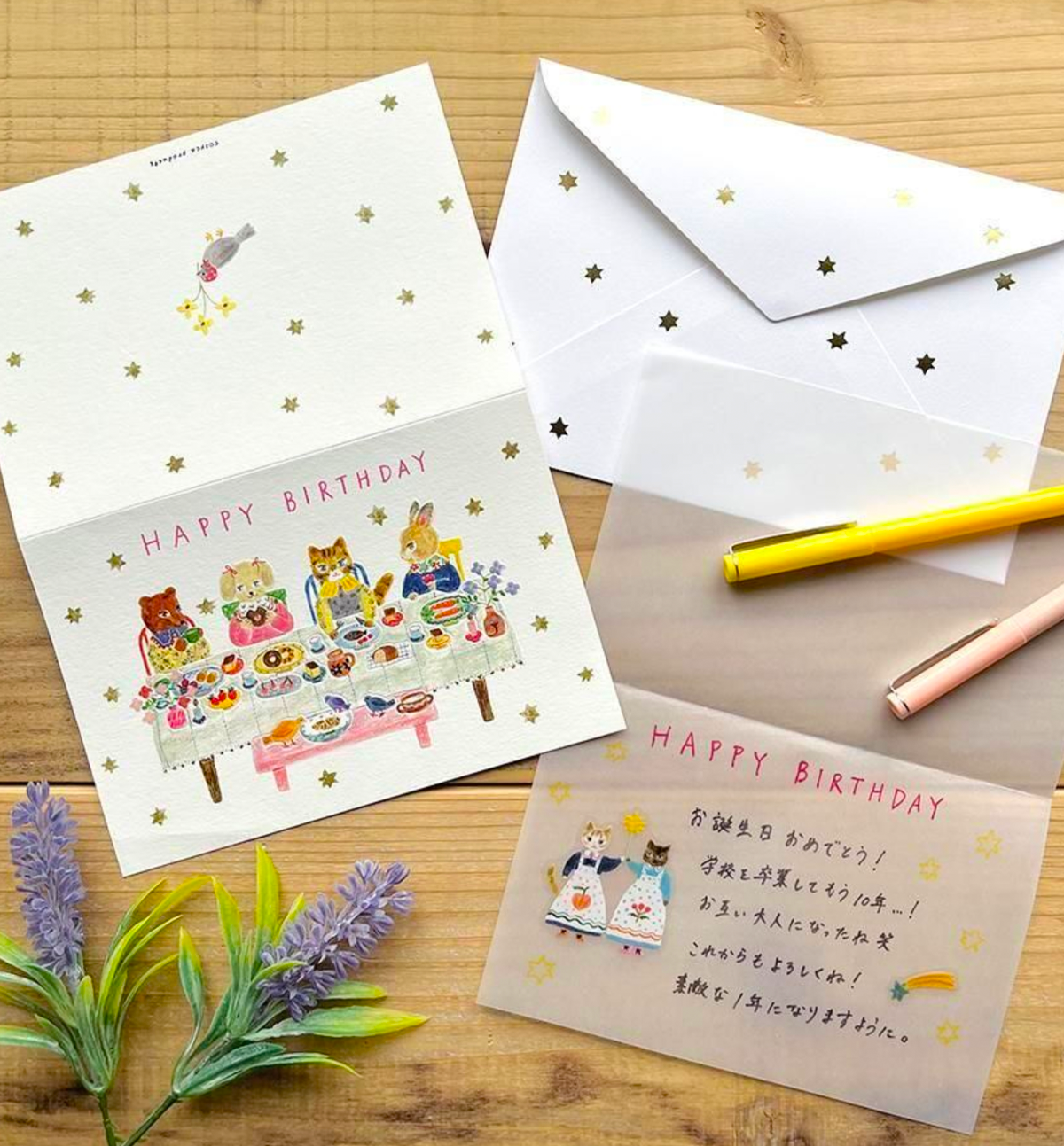 Each card comes with a sparkling gold-foil stamped envelope and a sheet of tracing paper for writing your personal message.