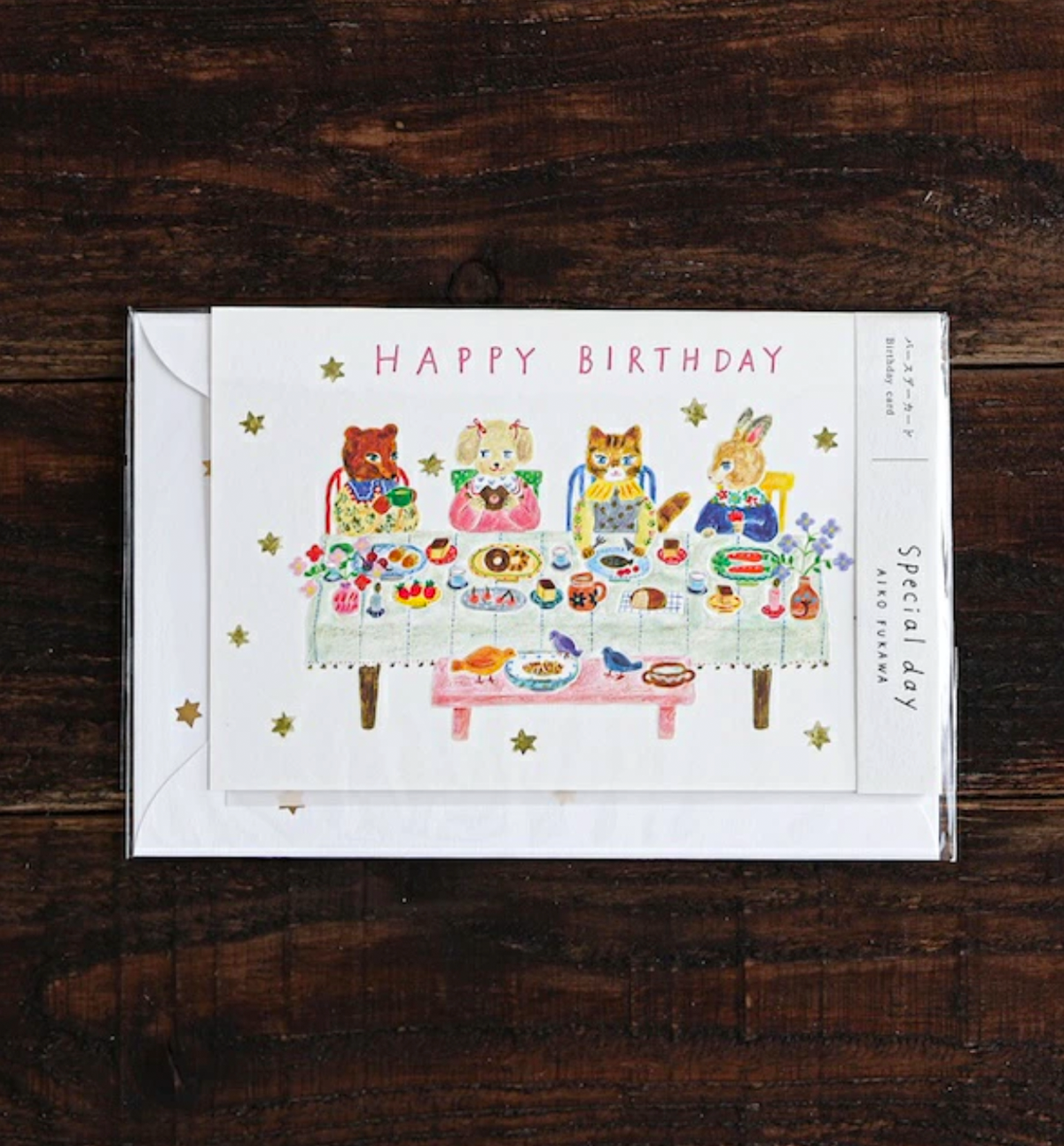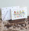 Celebrate someone special with this charming birthday card designed by illustrator Aiko Fukukawa. Featuring a lively and cheerful party scene, it captures the joy and excitement of a festive celebration. The entire card is embossed, adding a delightful textured finish.
