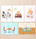 Adorable rabbits, squirrels, and other animals are shown enjoying their snacks in charming, cozy scenes. You can write messages in the blank spaces. They also make a lovely decoration when framed or displayed in your room.