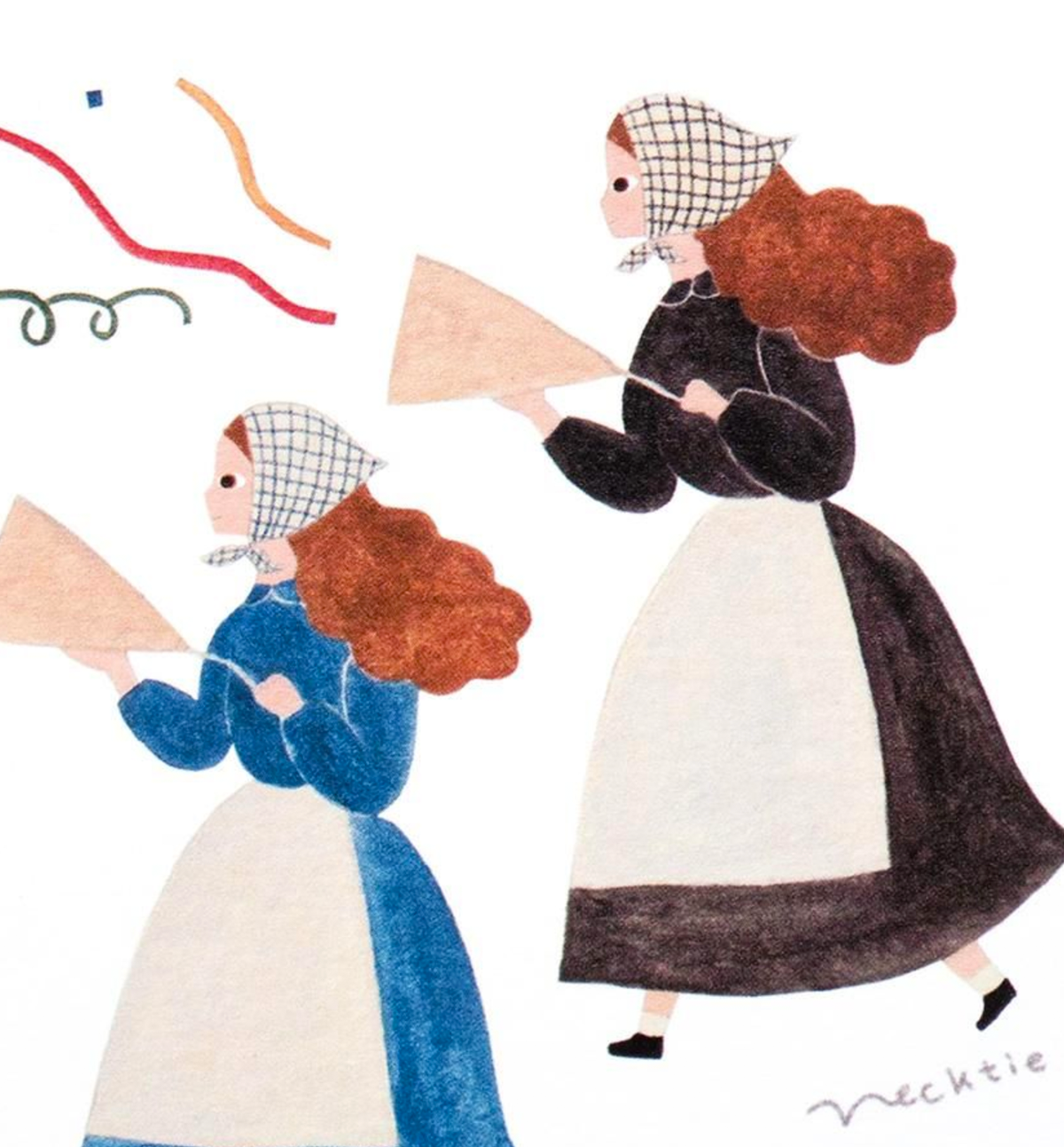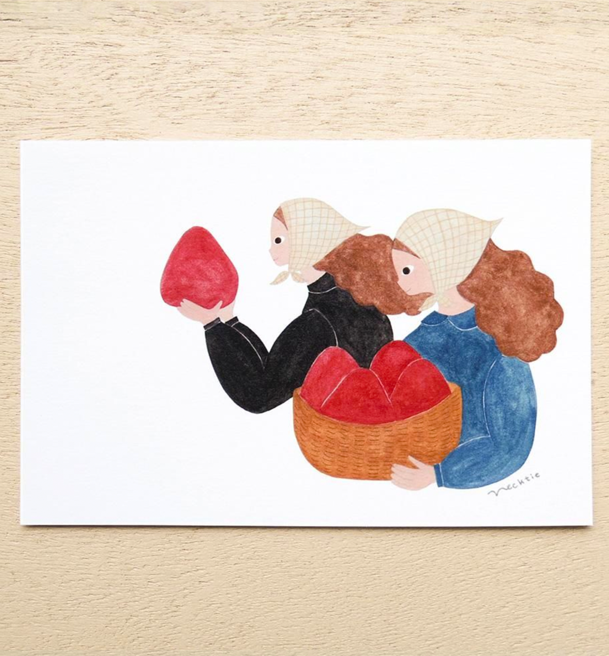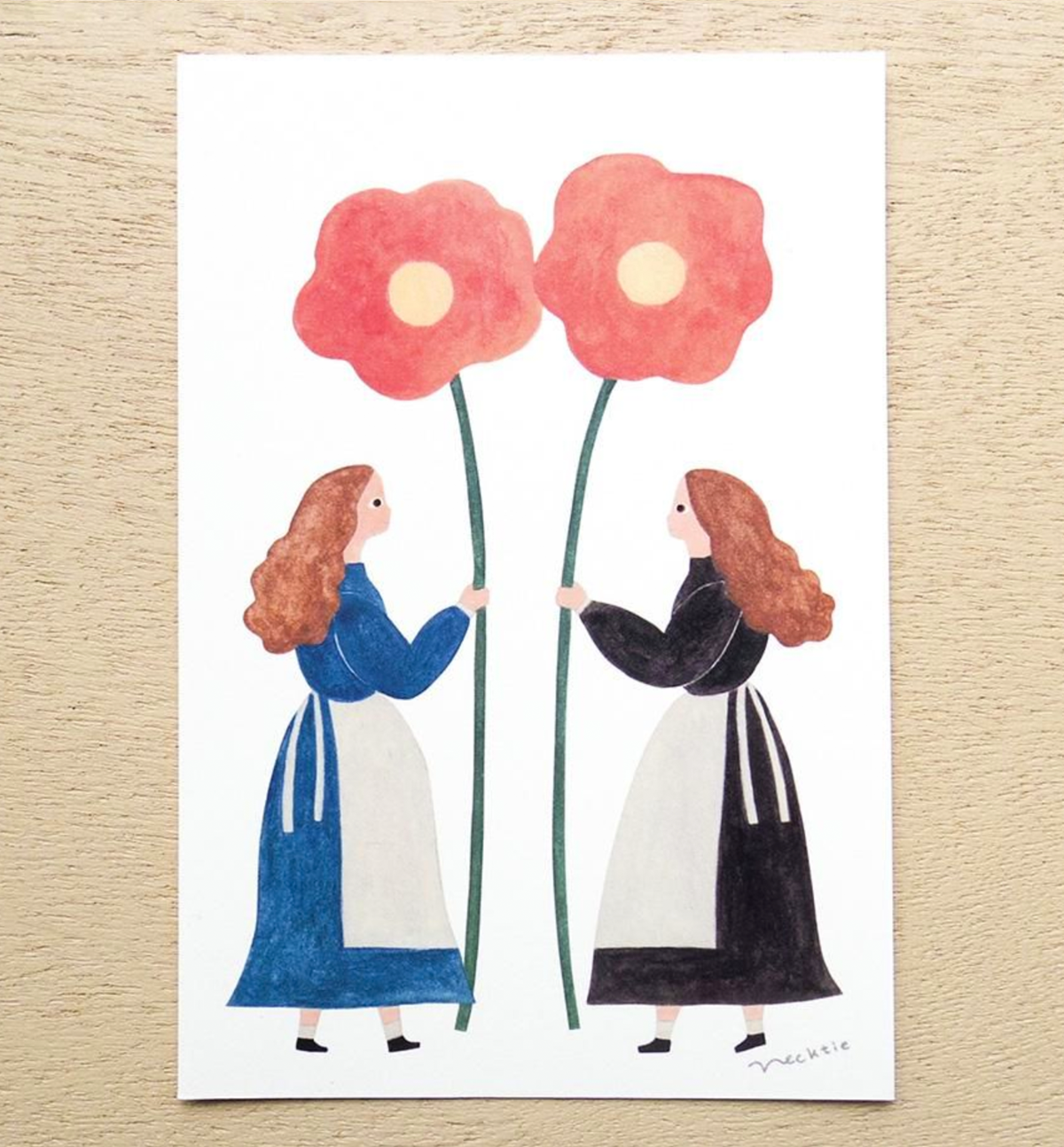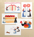 This adorable postcard letter set by the illustrator duo Necktie features two cute characters preparing for a cheerful birthday party.