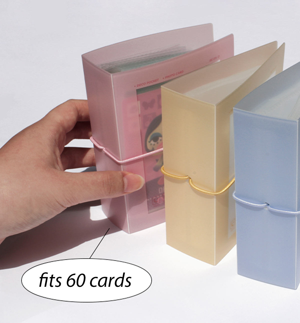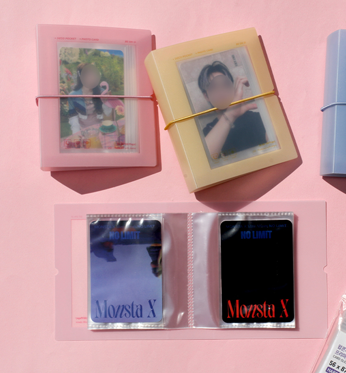 This beautiful Deco Pocket Sleeve Photocard File comes in 4 different colors: Pink, Yellow, Blue, and Original.