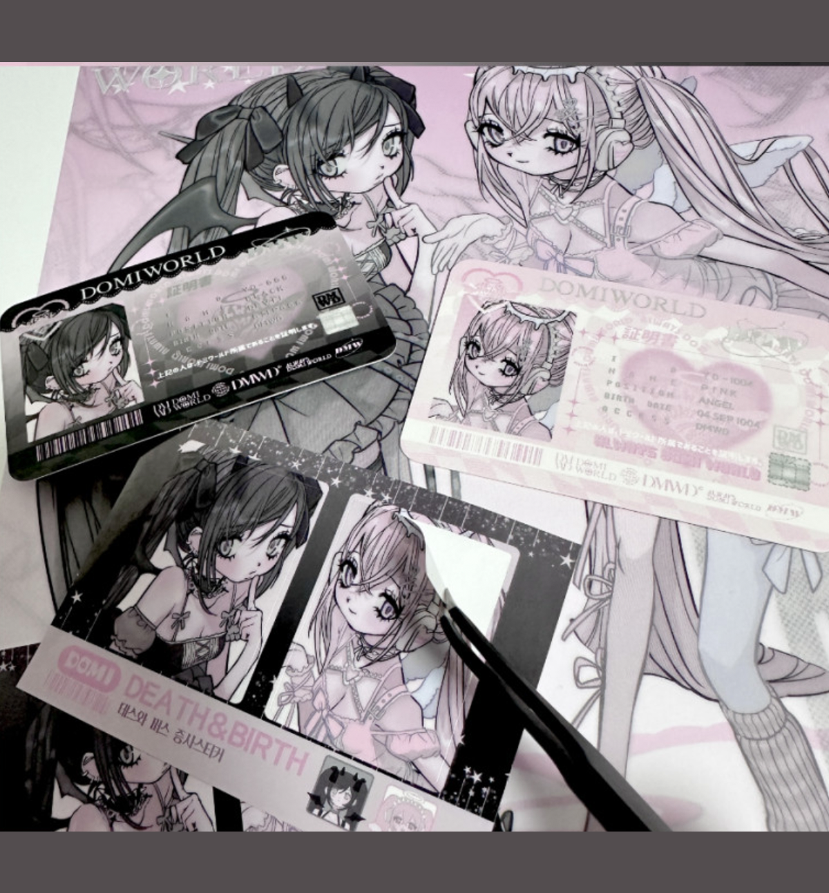 - Quantity: 1 Domi World Death & Birth Photocard + Sticker Set | 2 photocards + 1 sheet of sticker.