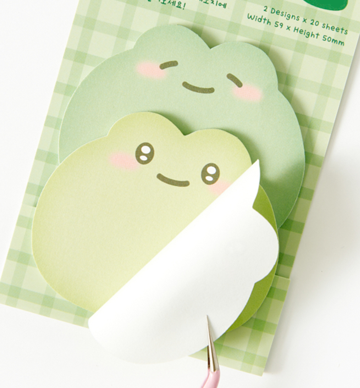 This is a sticky note with two designs in the shape of a cute froggy face. It is a handy size, so you can put it in your schedule or notebook and use it conveniently when needed! It is composed of 2 designs x 20 sticky notes, so you can use it generously.