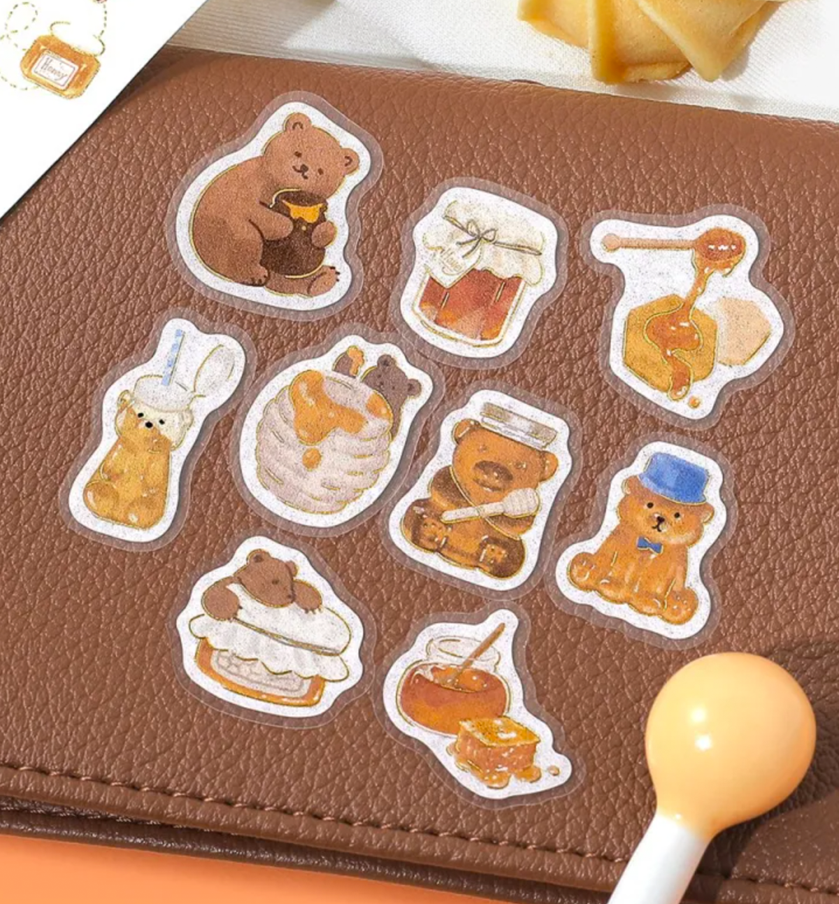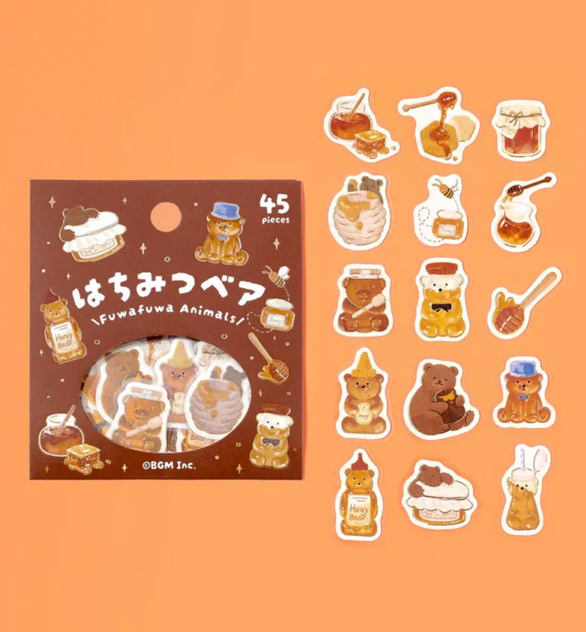 Fuwafuwa Animals Honey Bear Seal Sticker [Gold Stamping]