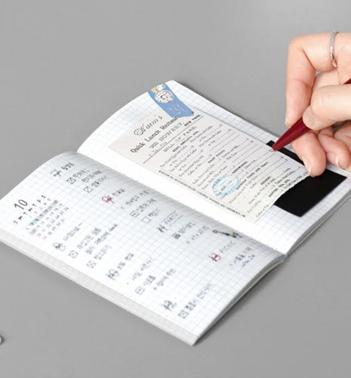 This beautiful grid pocket notebook comes in 4 different designs: Ice Cream, Yoga, Waiting and Friends. Folds flat and lined pages. Sewing binding.