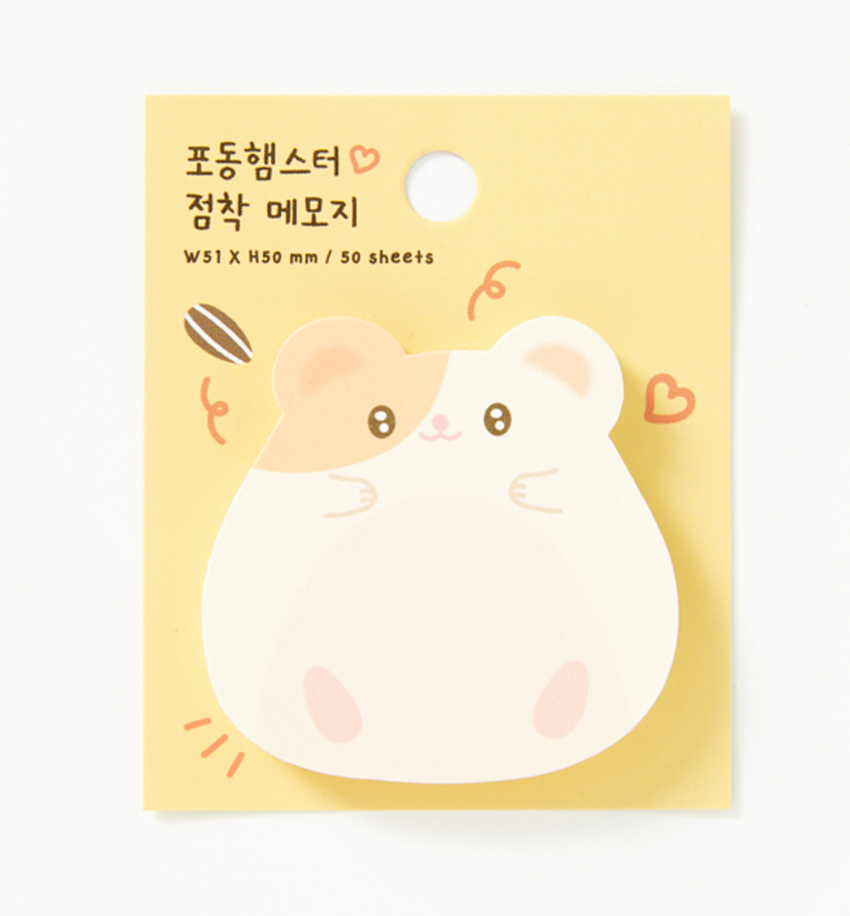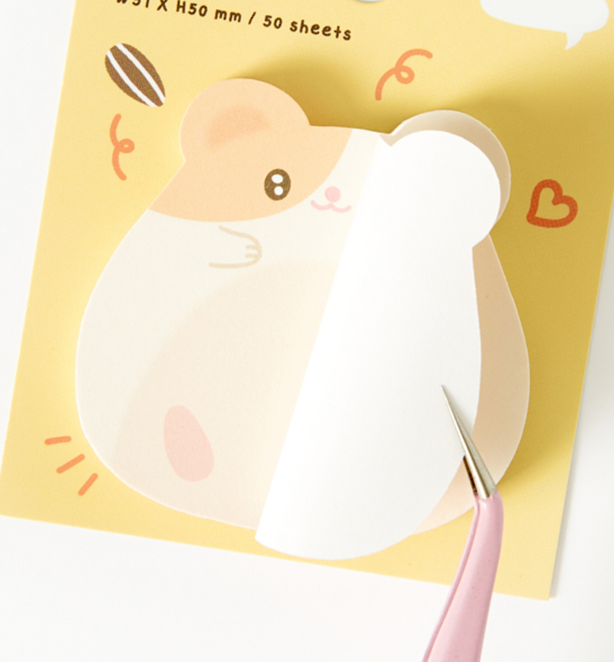 This is a cute hamster-shaped sticky note. With a compact size that is easy to store and carry and a generous 50-sheets capacity. You can easily and pleasantly take notes anywhere. You can use it in various ways, such as by sticking it on a diary, to convey a simple message to attach an easily forgotten schedule to a conspicuous place, etc.!