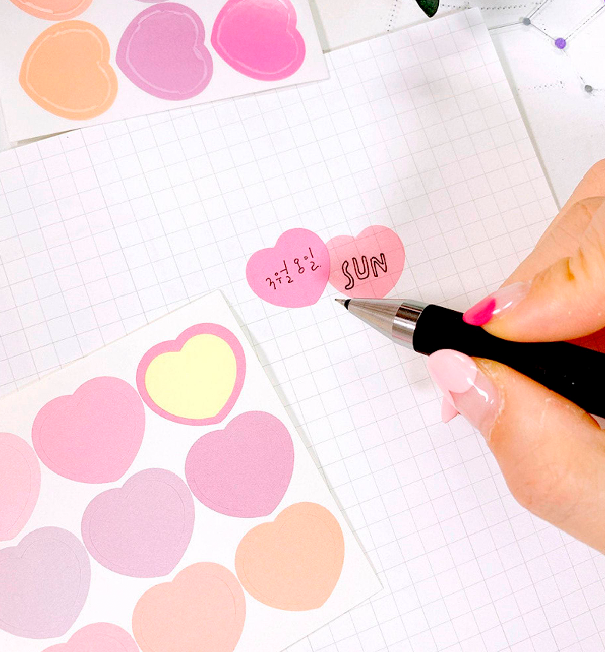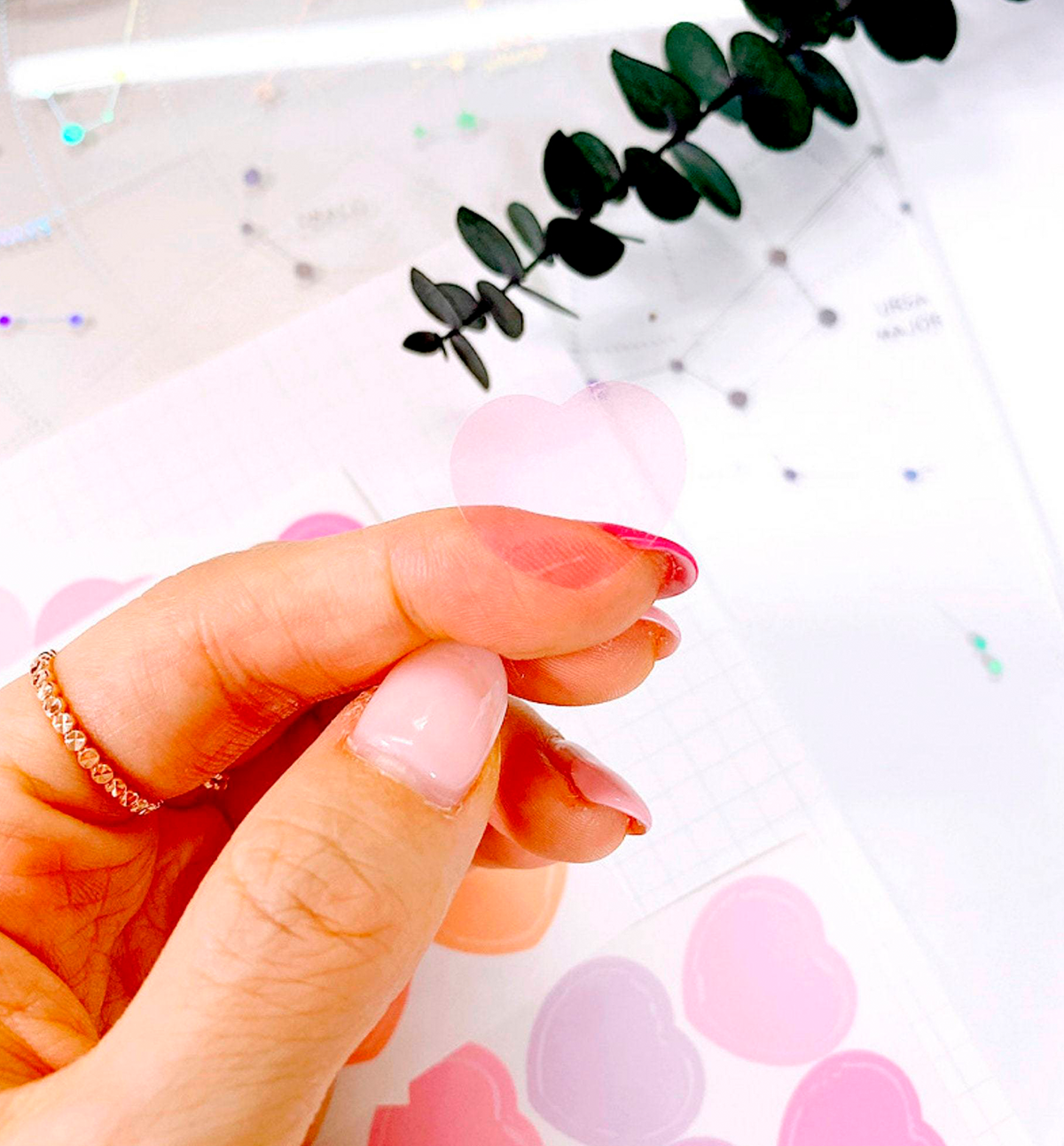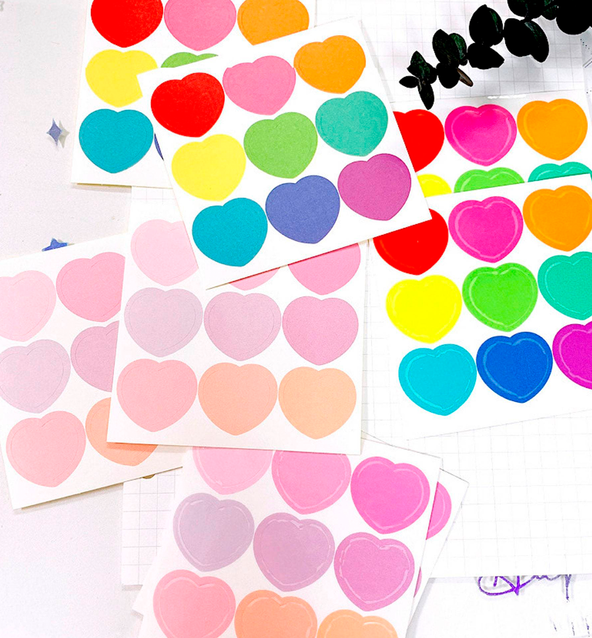 - Quantity: 4 Sheets | 36 heart stickers ( 2 transparent sticker + 2 regular sticker)