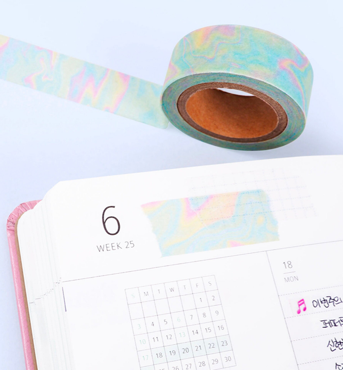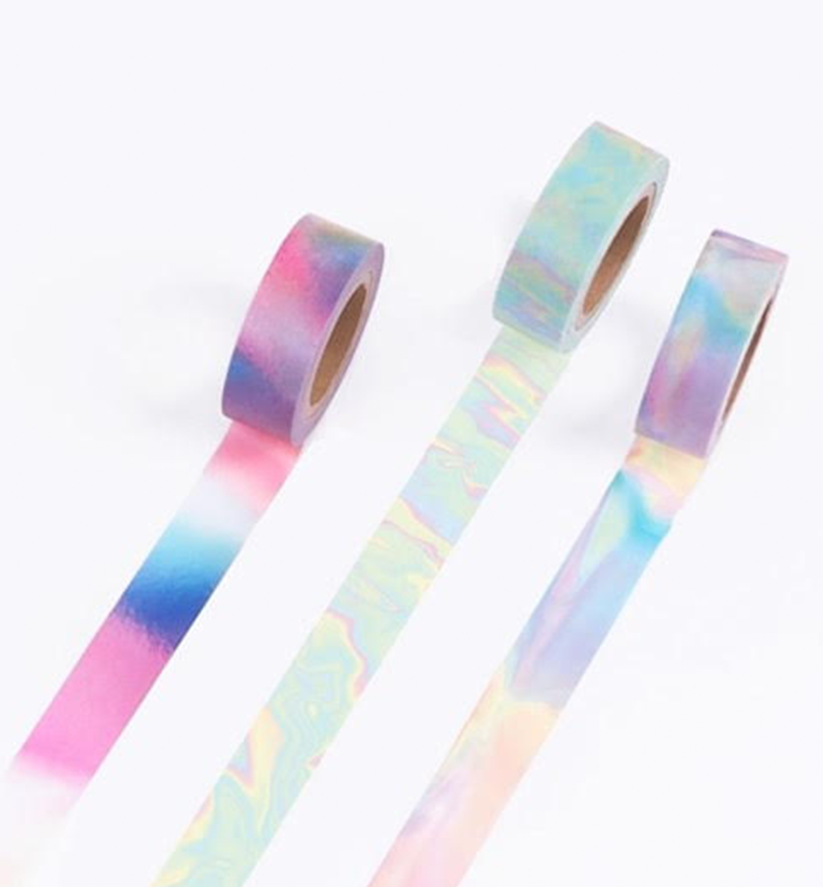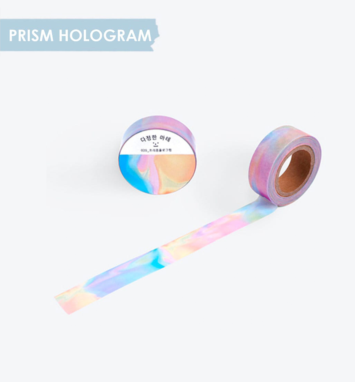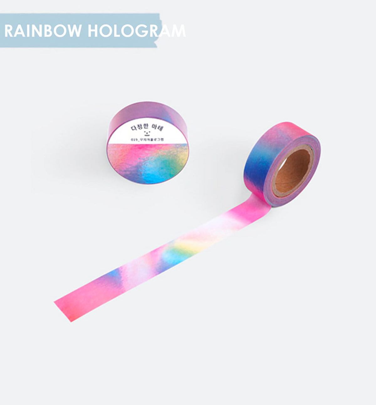 This beautiful hologram washi tape comes in 3 different hologram colors: Mint Hologram, Rainbow Hologram and Prism Hologram.