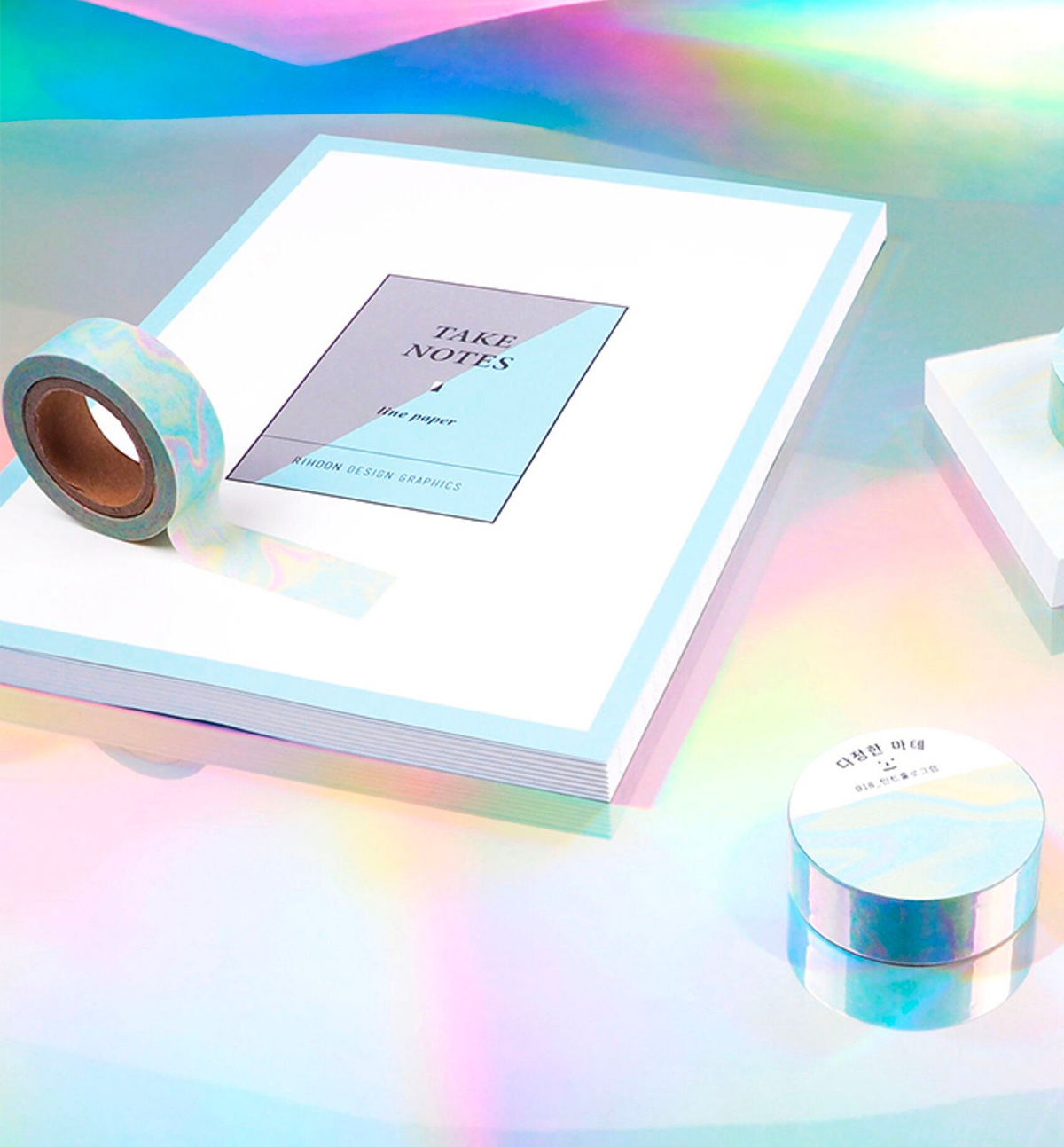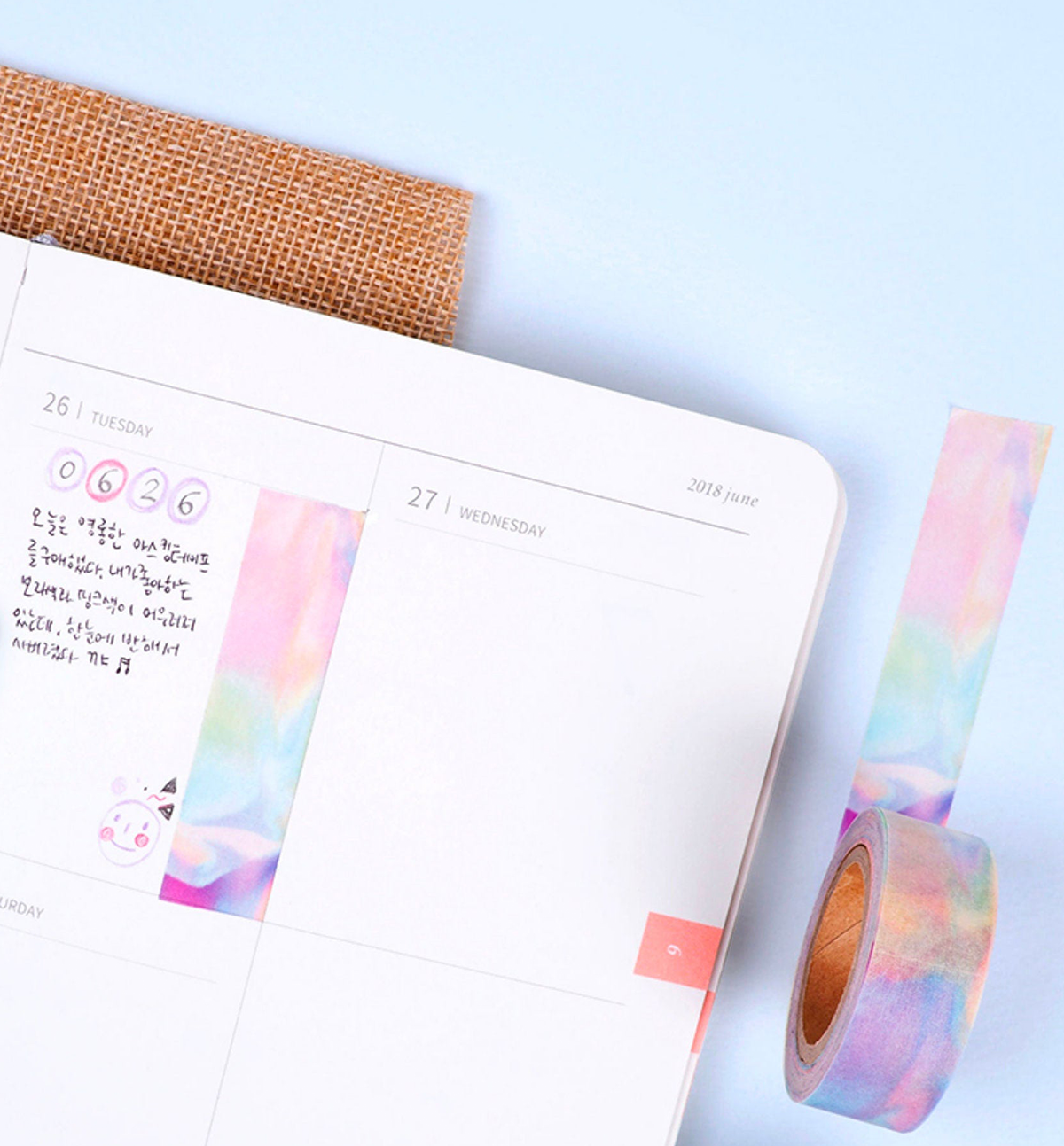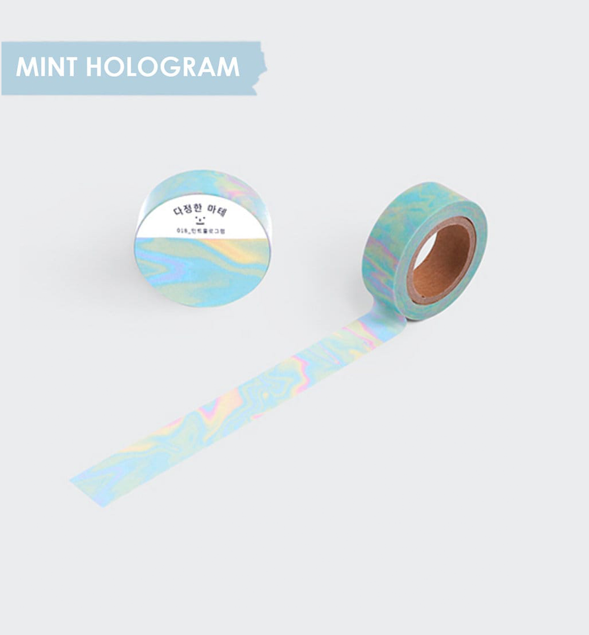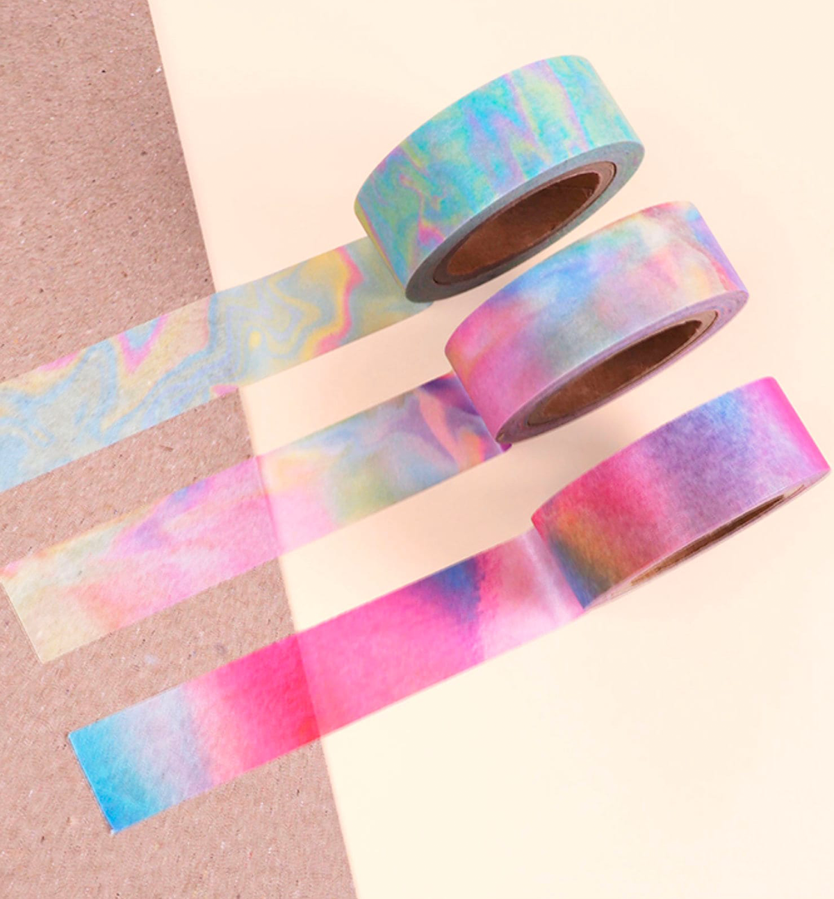 This beautiful hologram washi tape comes in 3 different hologram colors: Mint Hologram, Rainbow Hologram and Prism Hologram.