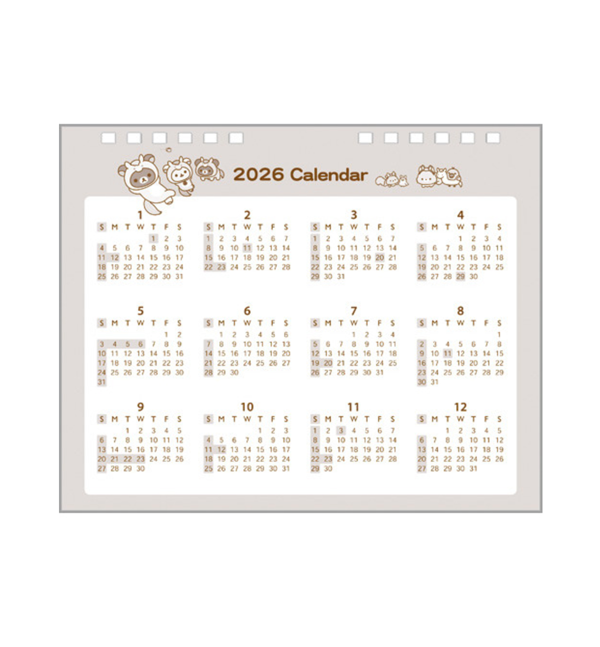 Period: January 2026 – December 2026 (Sunday start)