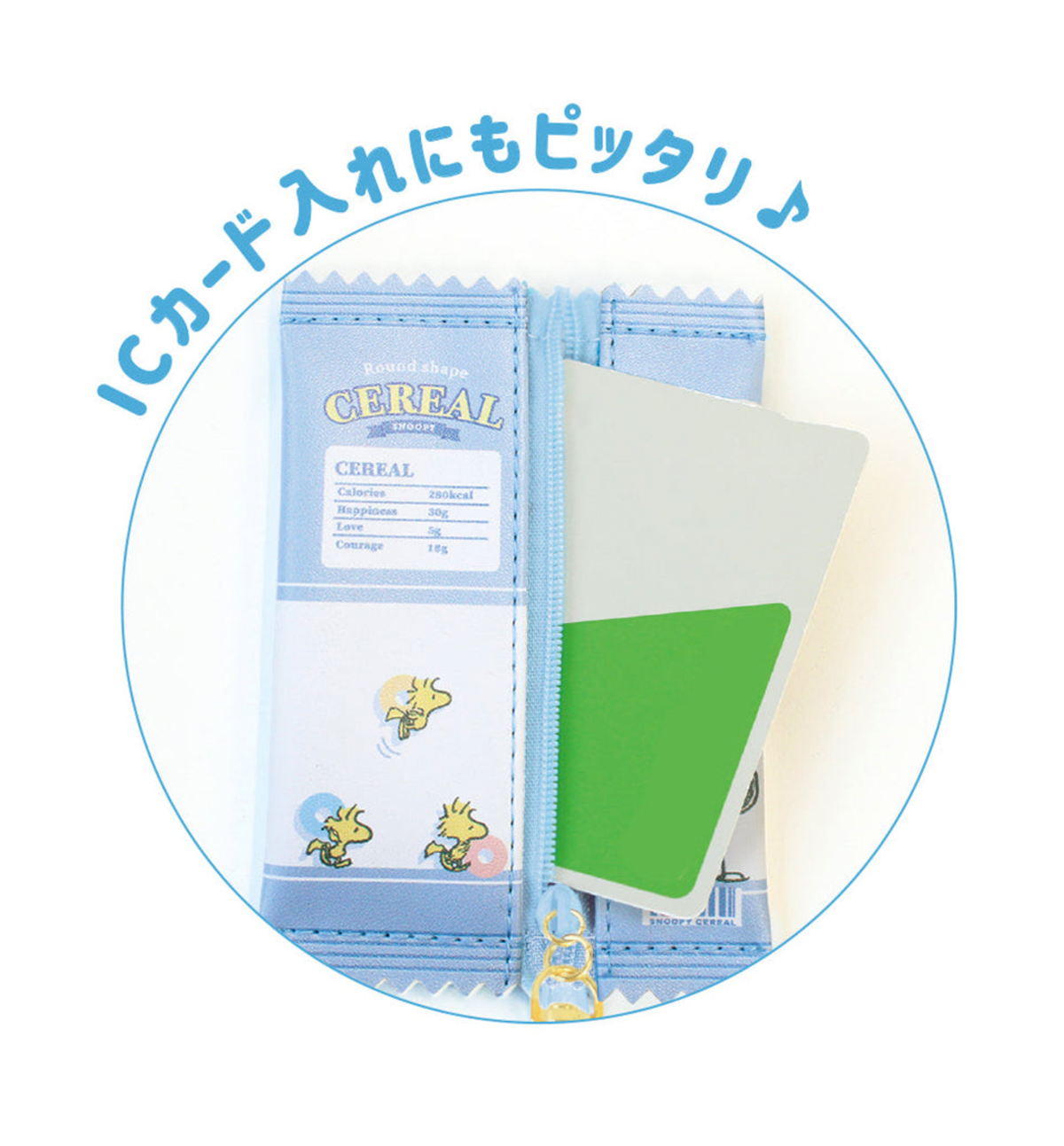 Introducing Snoopy cereal in a pouch that looks like a candy package! A pouch that can be attached to a bag like a candy package!