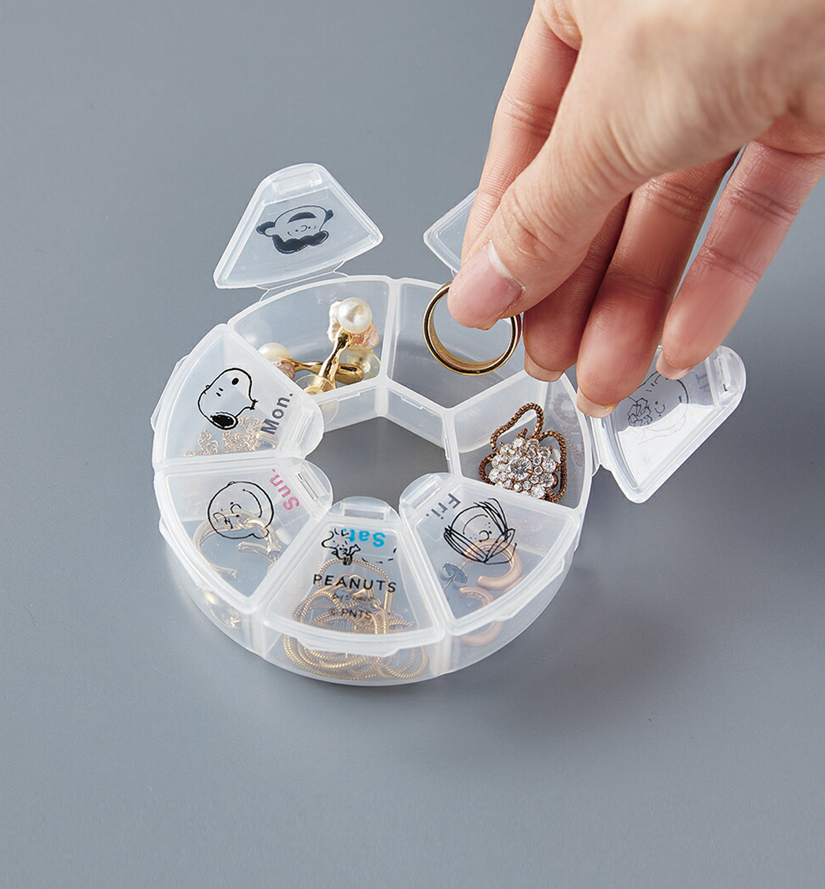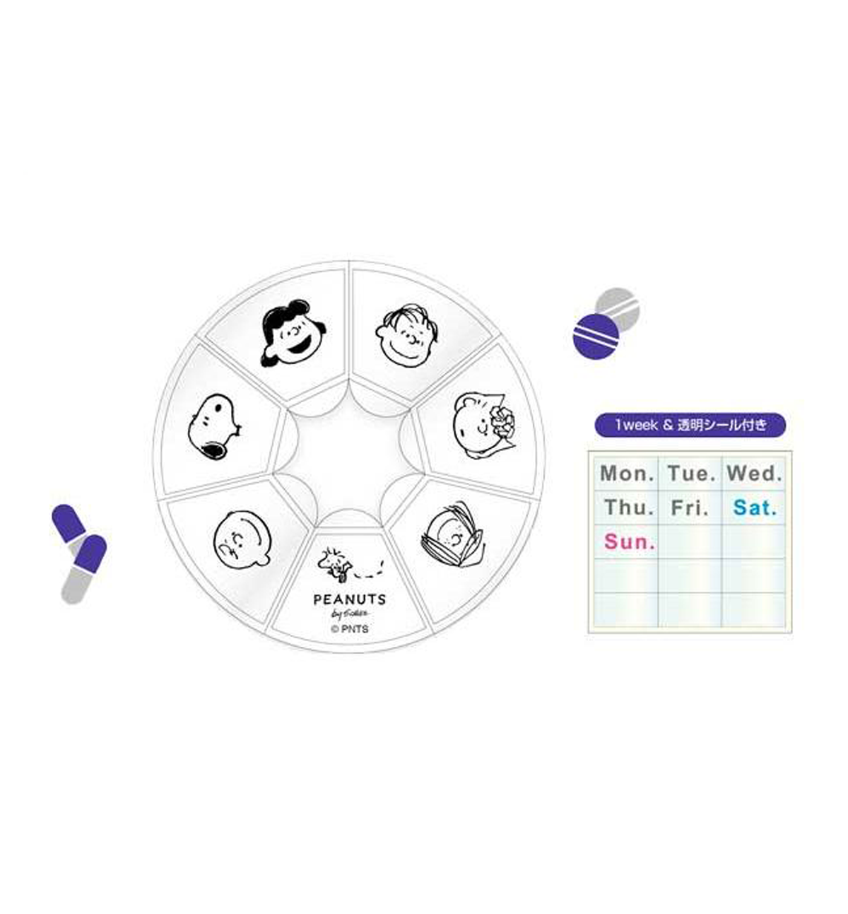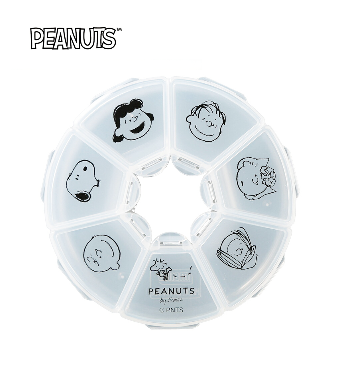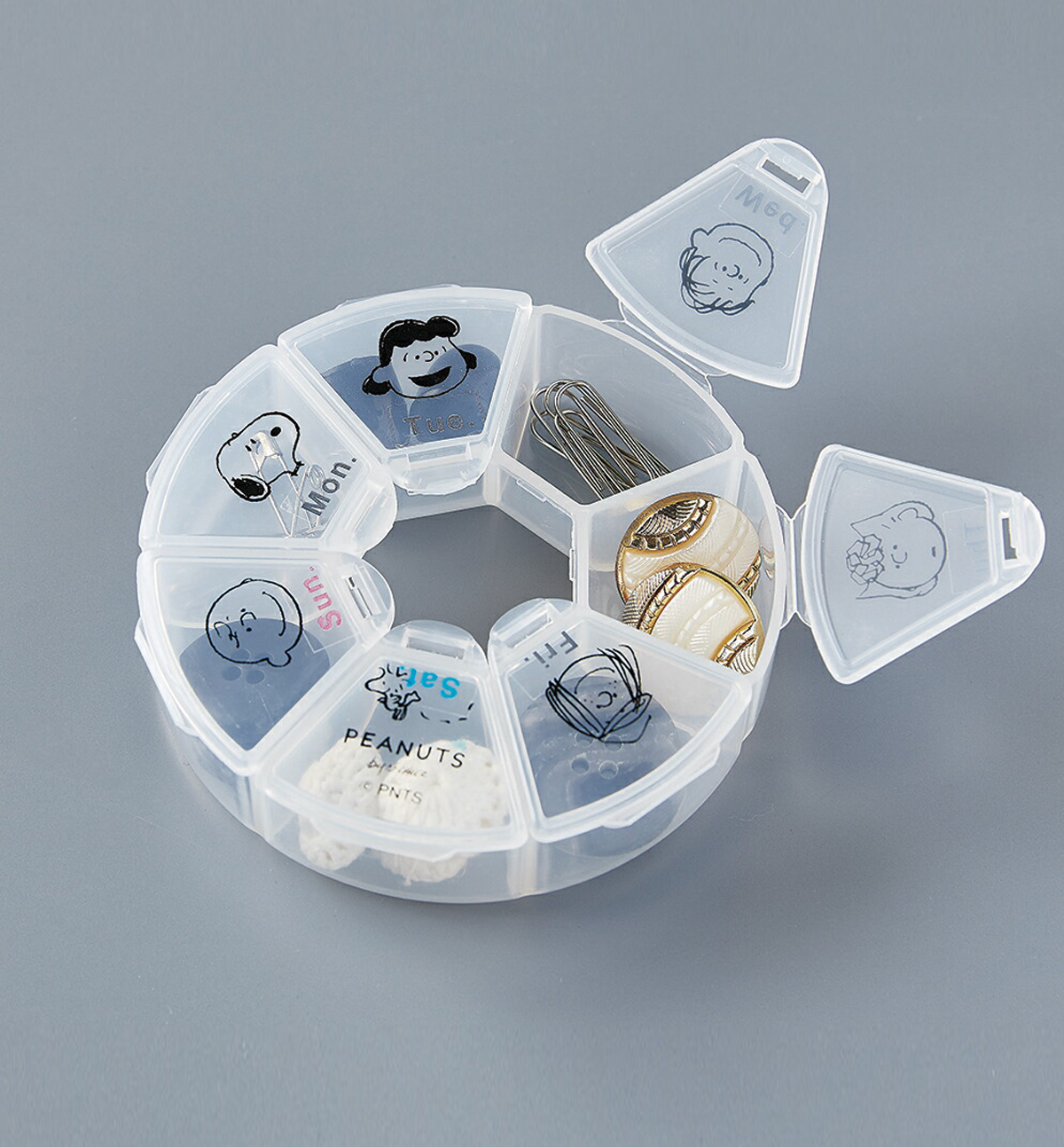 This Peanuts Snoopy Medicine Case is divided into 7 compartments. Use it to separate a week's worth of medicine and supplements. Can be used for multiple purposes, such as storing accessories and small items when you go out.