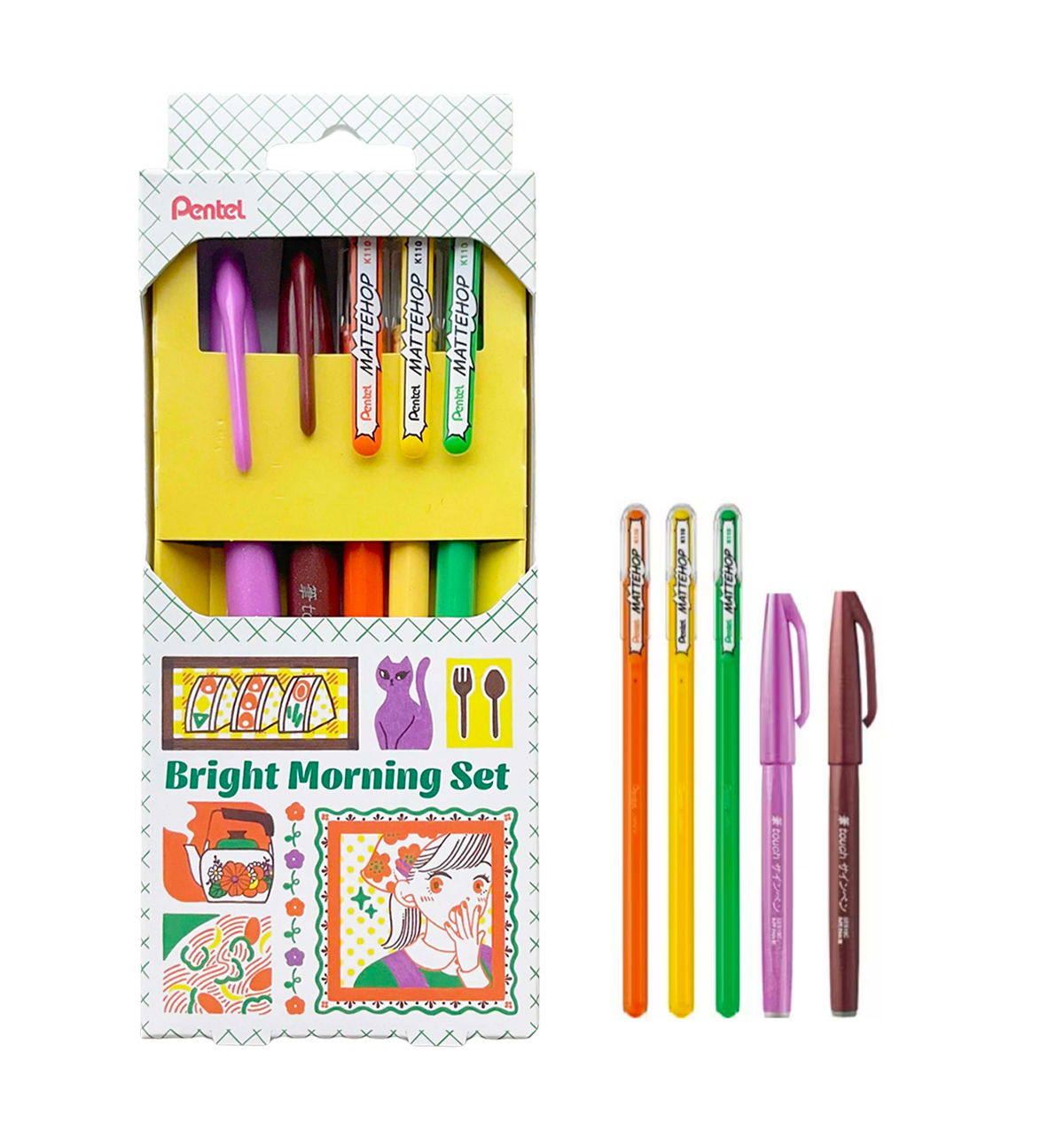 - Quantity: 1 [Japan] Pentel Mattehop and Brush Pen Set [Bright Morning] | [5 Colors Set]
