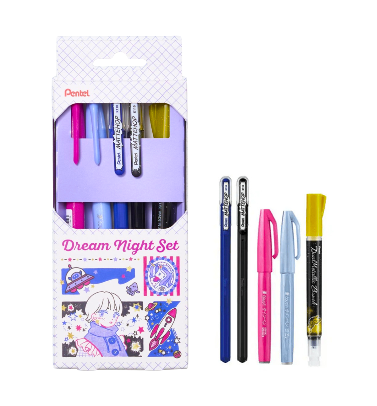 - Quantity: 1 [Japan] Pentel Mattehop and Brush Pen Set [Dream Night] | [5 Colors Set]