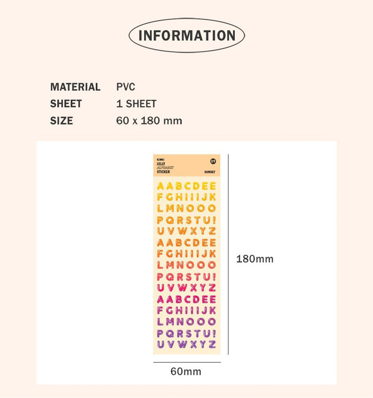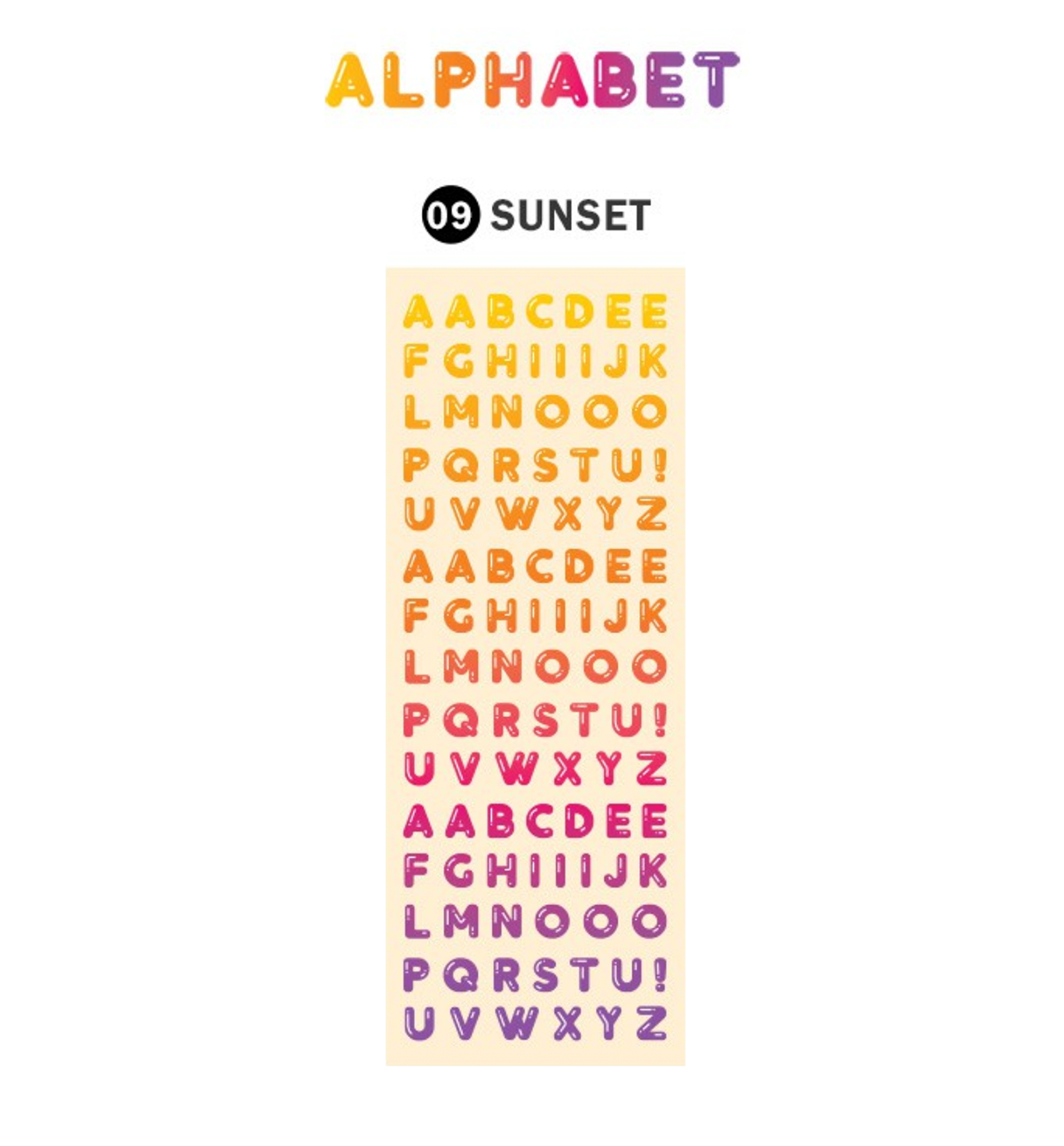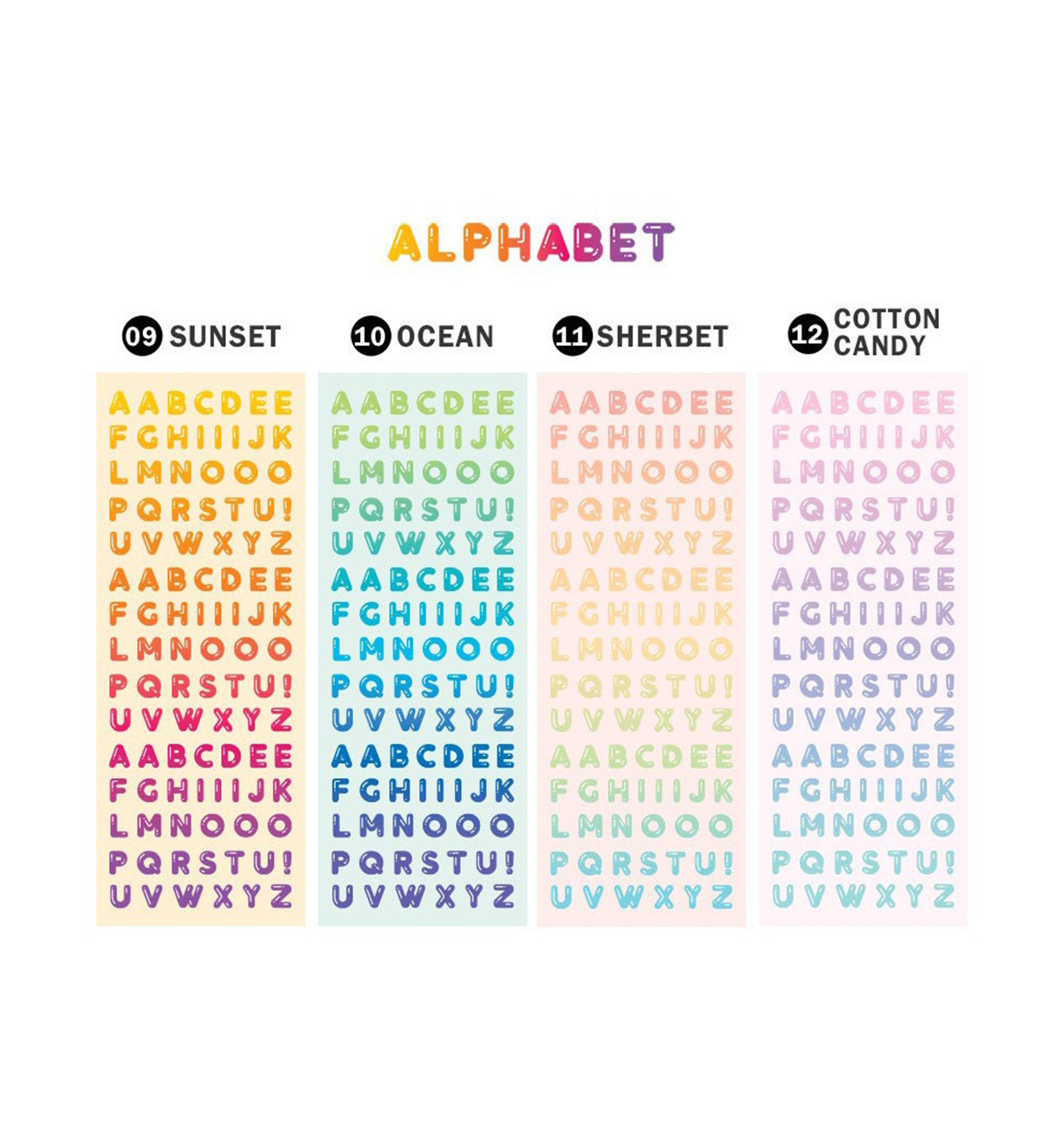 - Alphabet: 09 Sunset, 10 Ocean, 11 Sherbet, 12 Cotton Candy [Please, see pictures for reference]