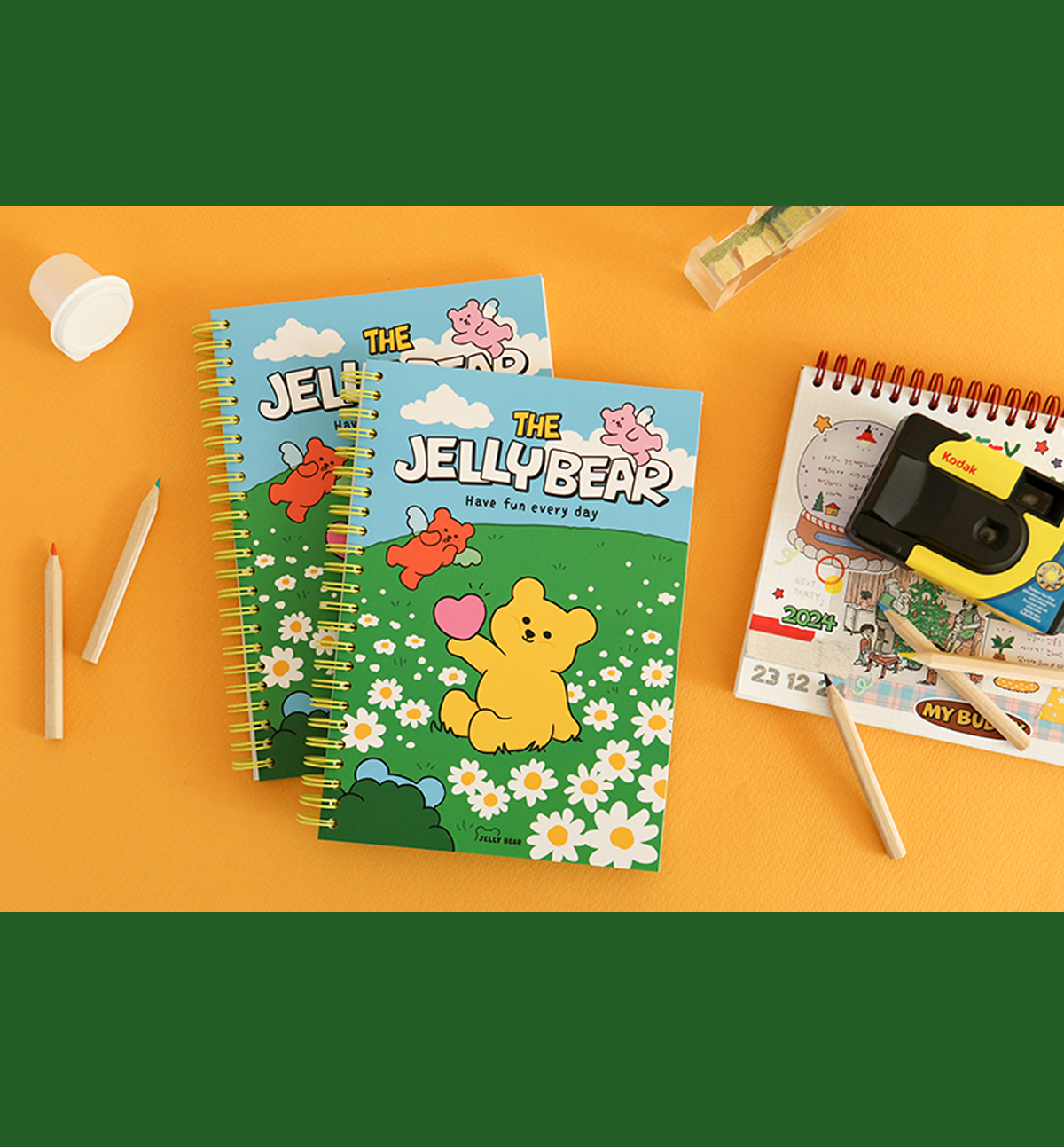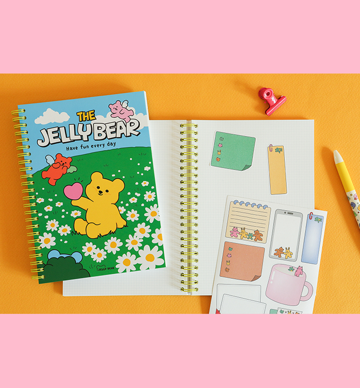 - Quantity: 1 Jelly Bear Grid Twinring Note [Jelly Flower]