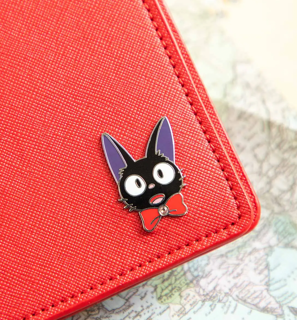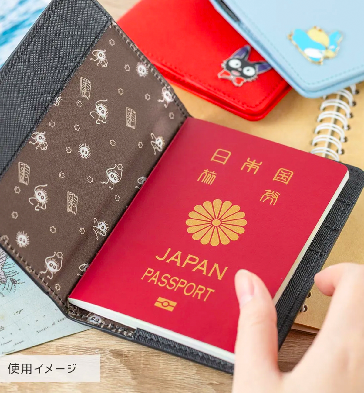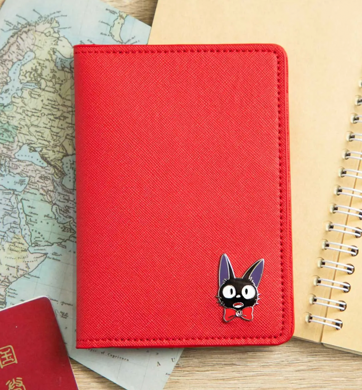 Jiji's passport case has been renewed!. This is a cute passport case with Witch's Delivery Service design. The bright red cover with outstanding presence comes with a cute Jiji charm.
